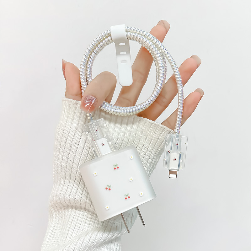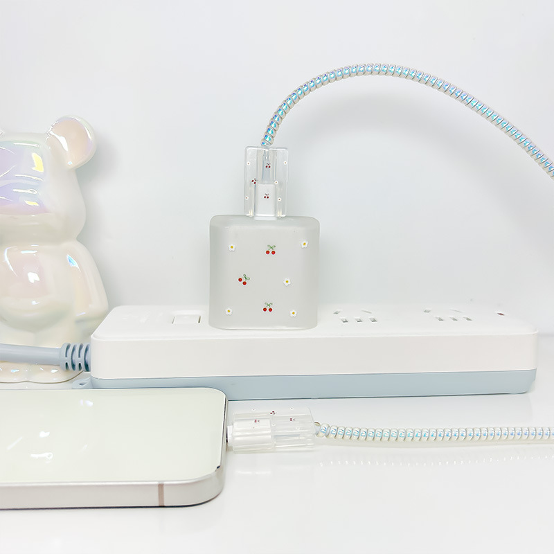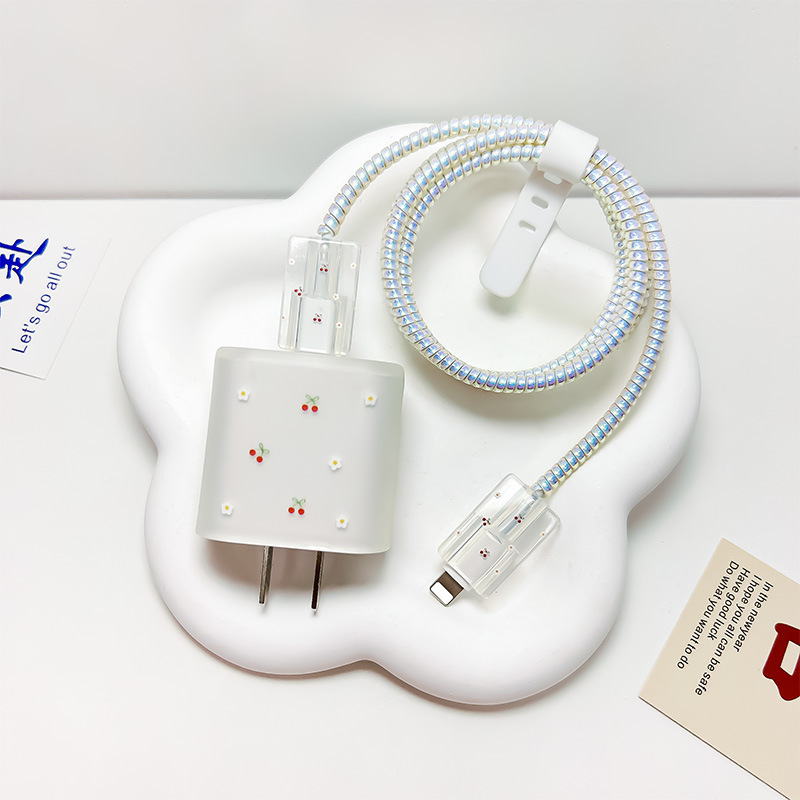 磨砂款适用于苹果20w/18w充头套数据线保护软套15/16咬线器樱桃花