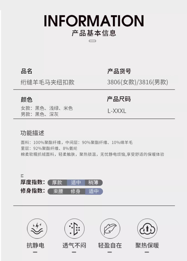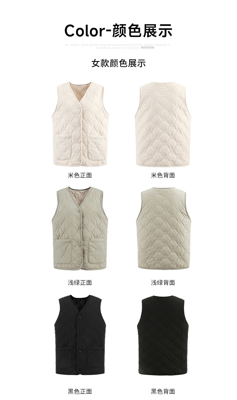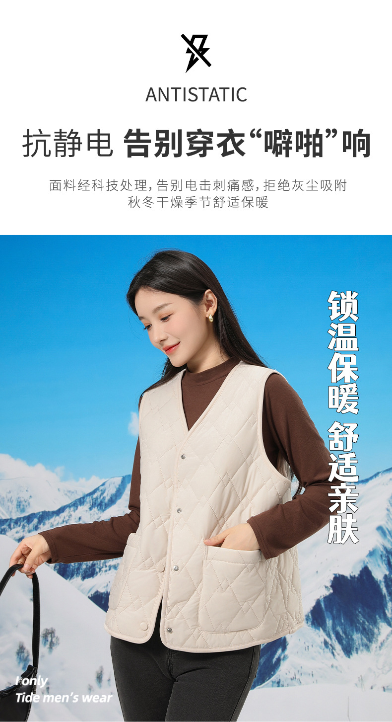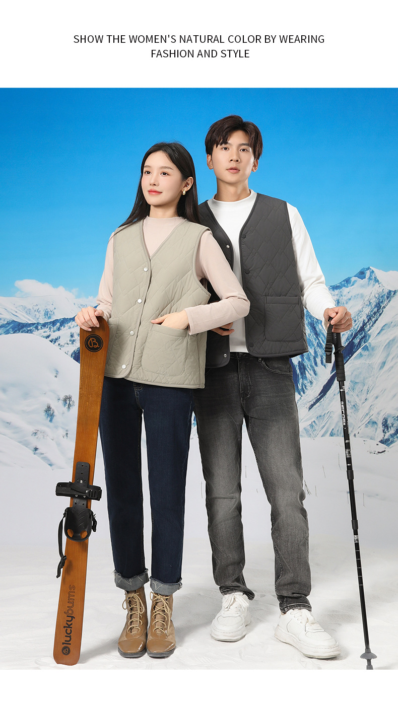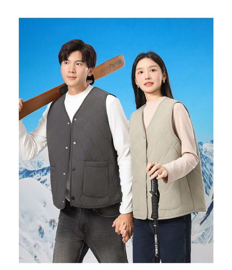 雪中飞情侣款棉衣马甲秋冬季男女保暖背心纯色坎肩开衫内外穿外套
