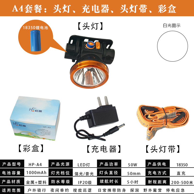 户外钓鱼led夜钓灯充电头灯矿灯照明强光头戴式锂电池电筒长续航