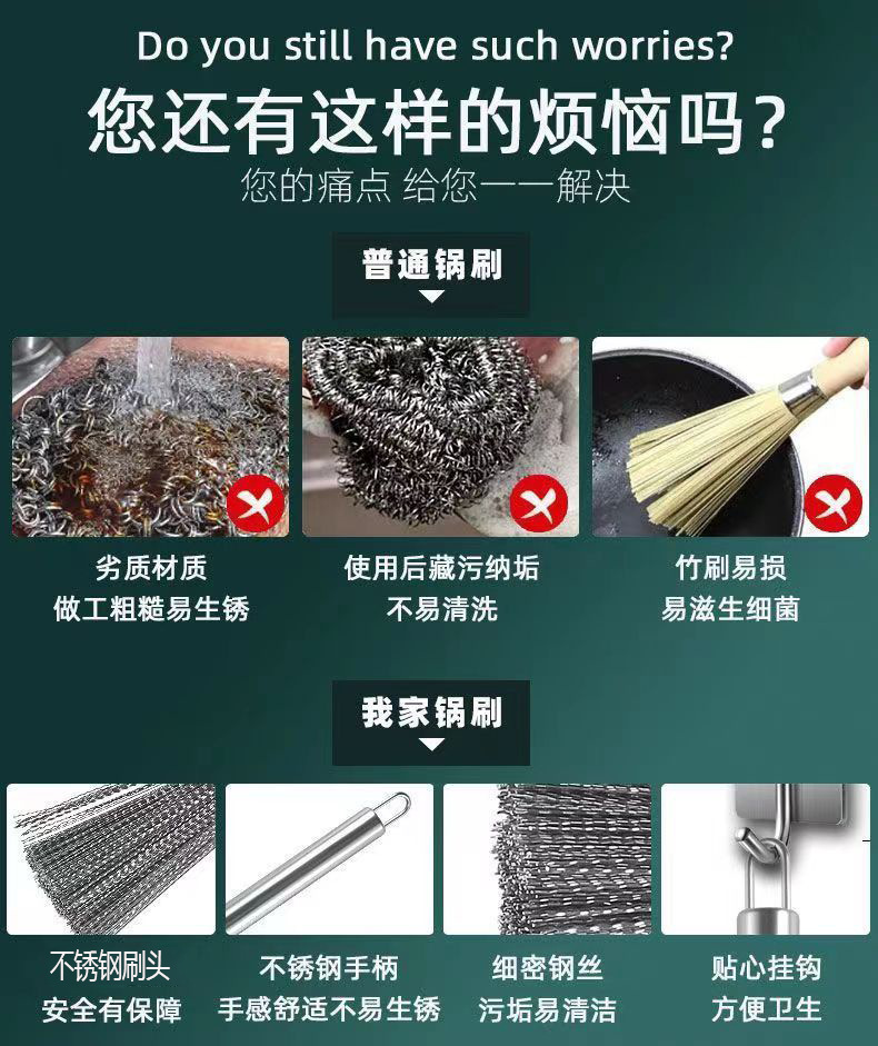 家用锅刷不锈钢去污洗锅刷不粘油长柄刷食堂清洁刷厨具洗锅神器