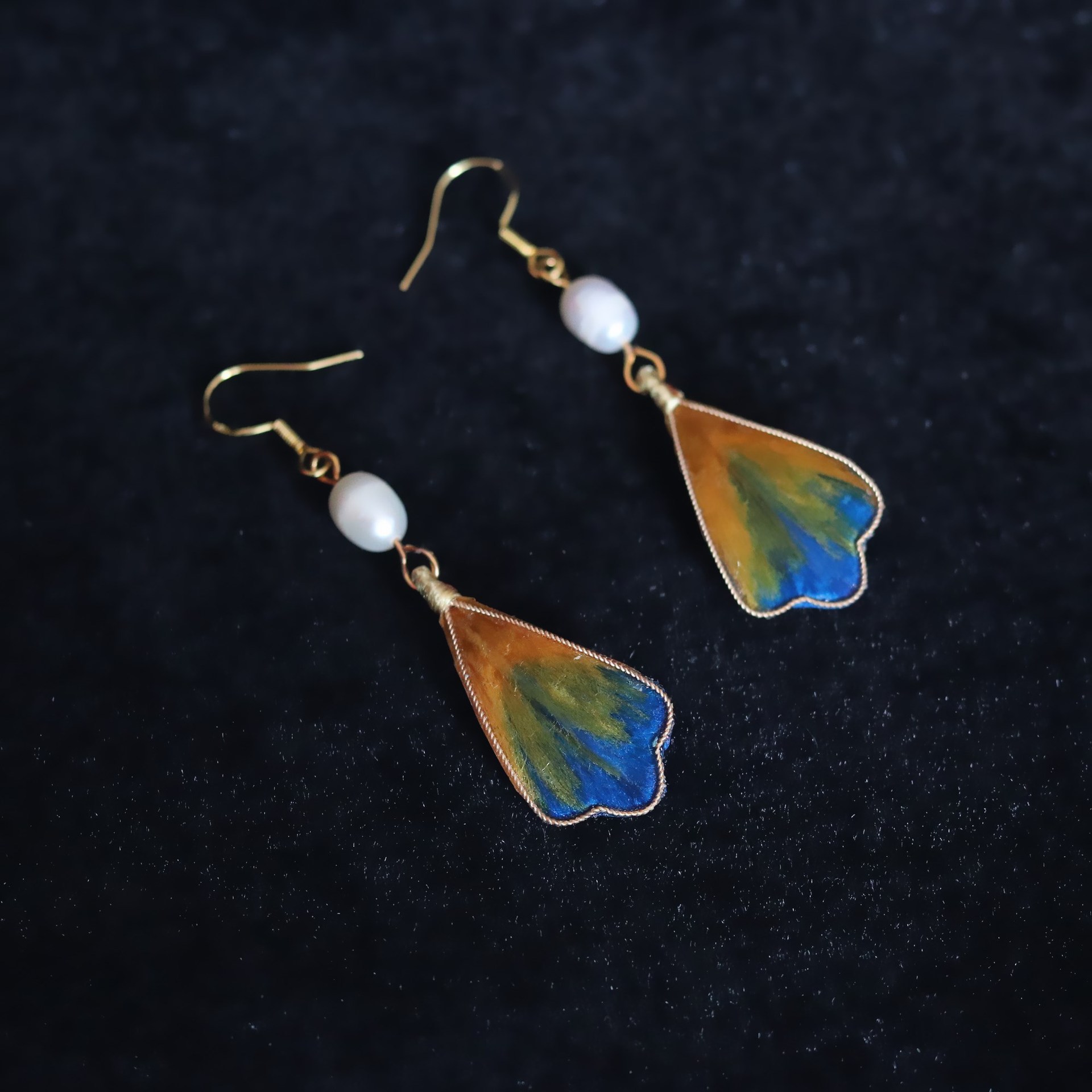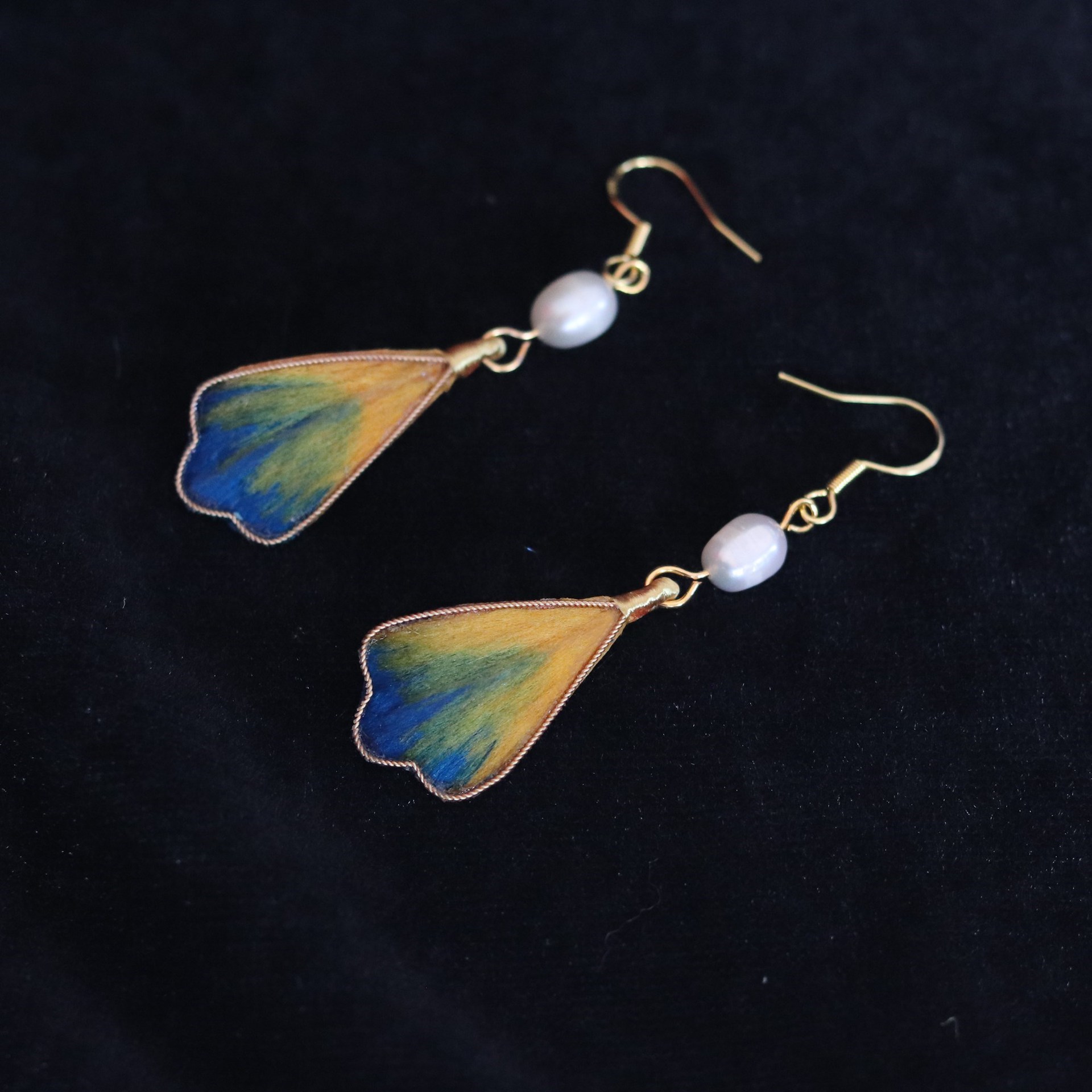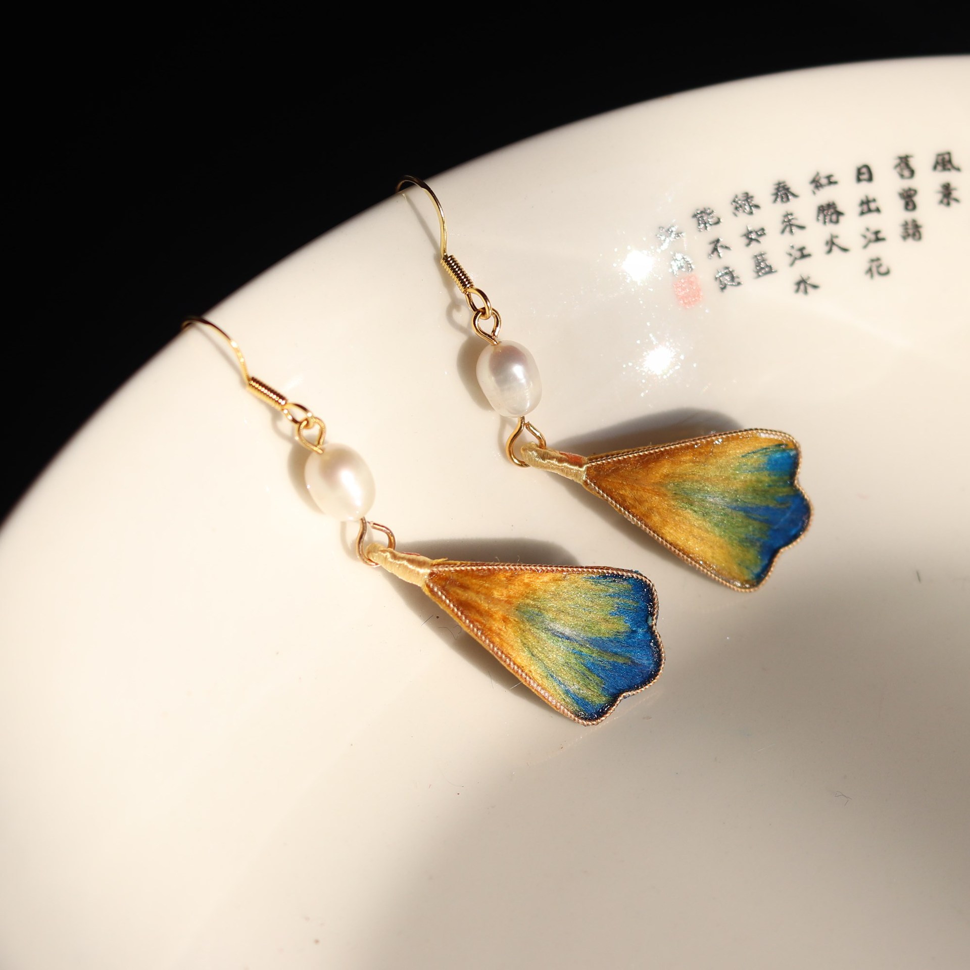 绒花珍珠掐丝耳环中式古典国风汉服旗袍耳坠耳饰