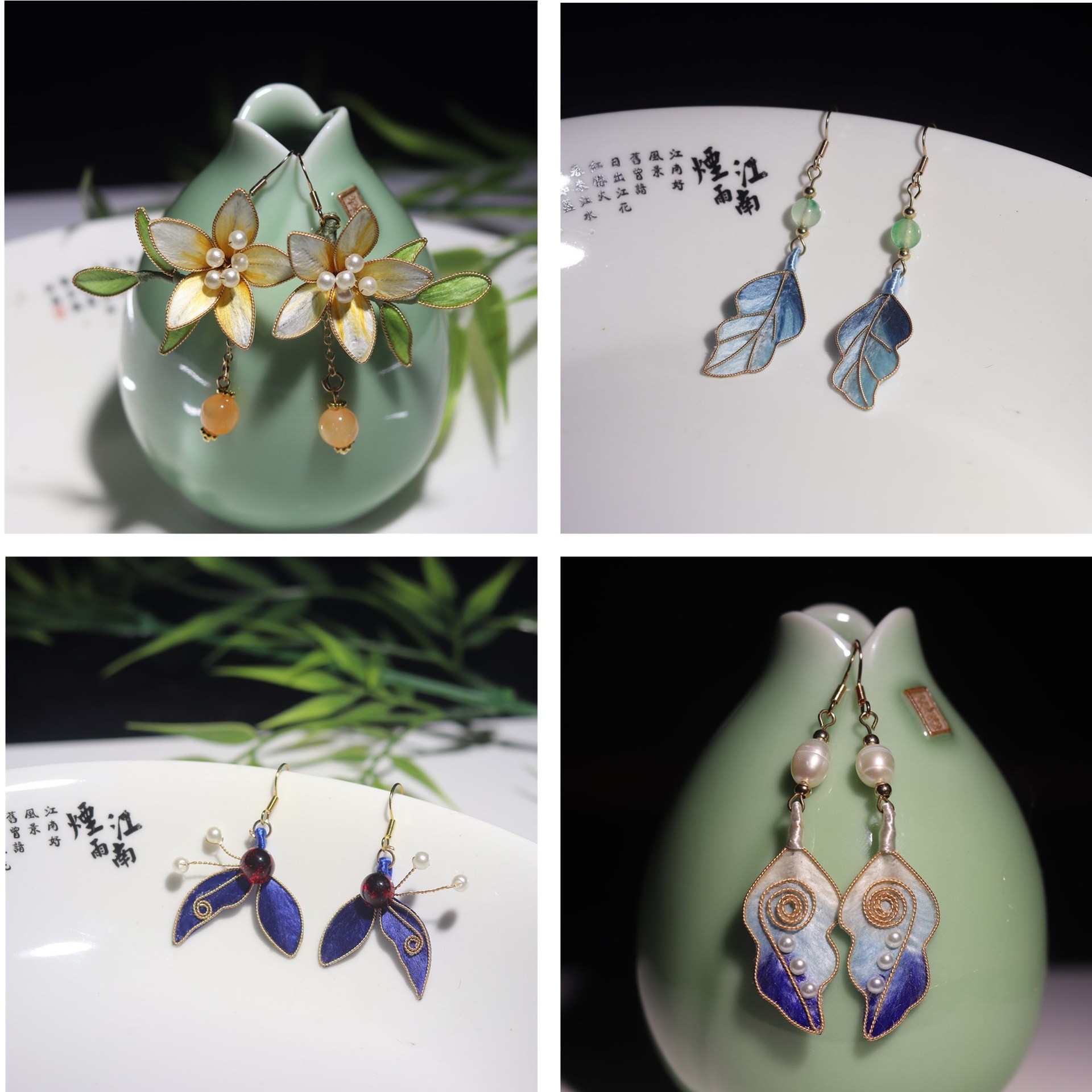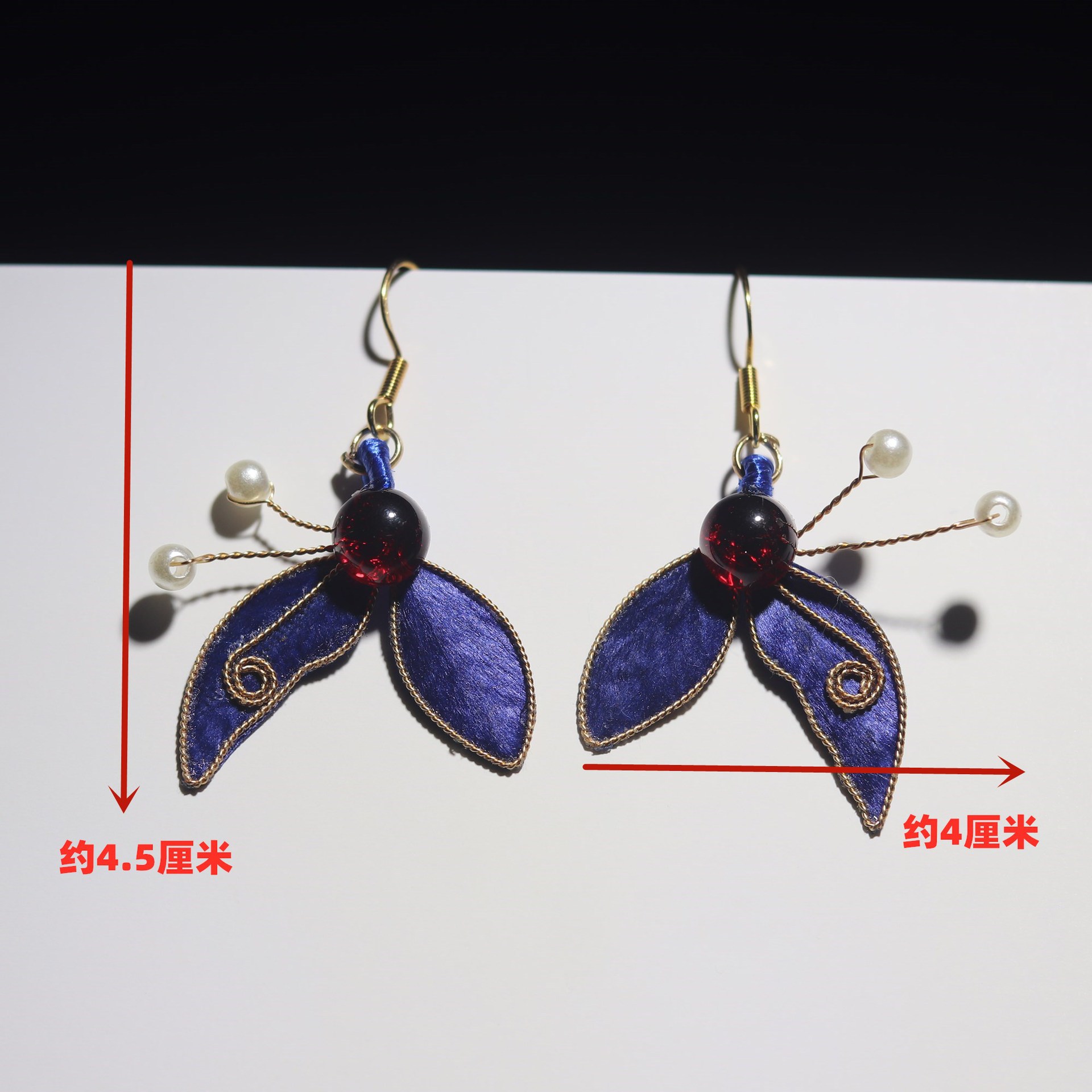 非遗掐丝绒花蚕丝仿点翠耳环复古气质中式古典风耳饰品
