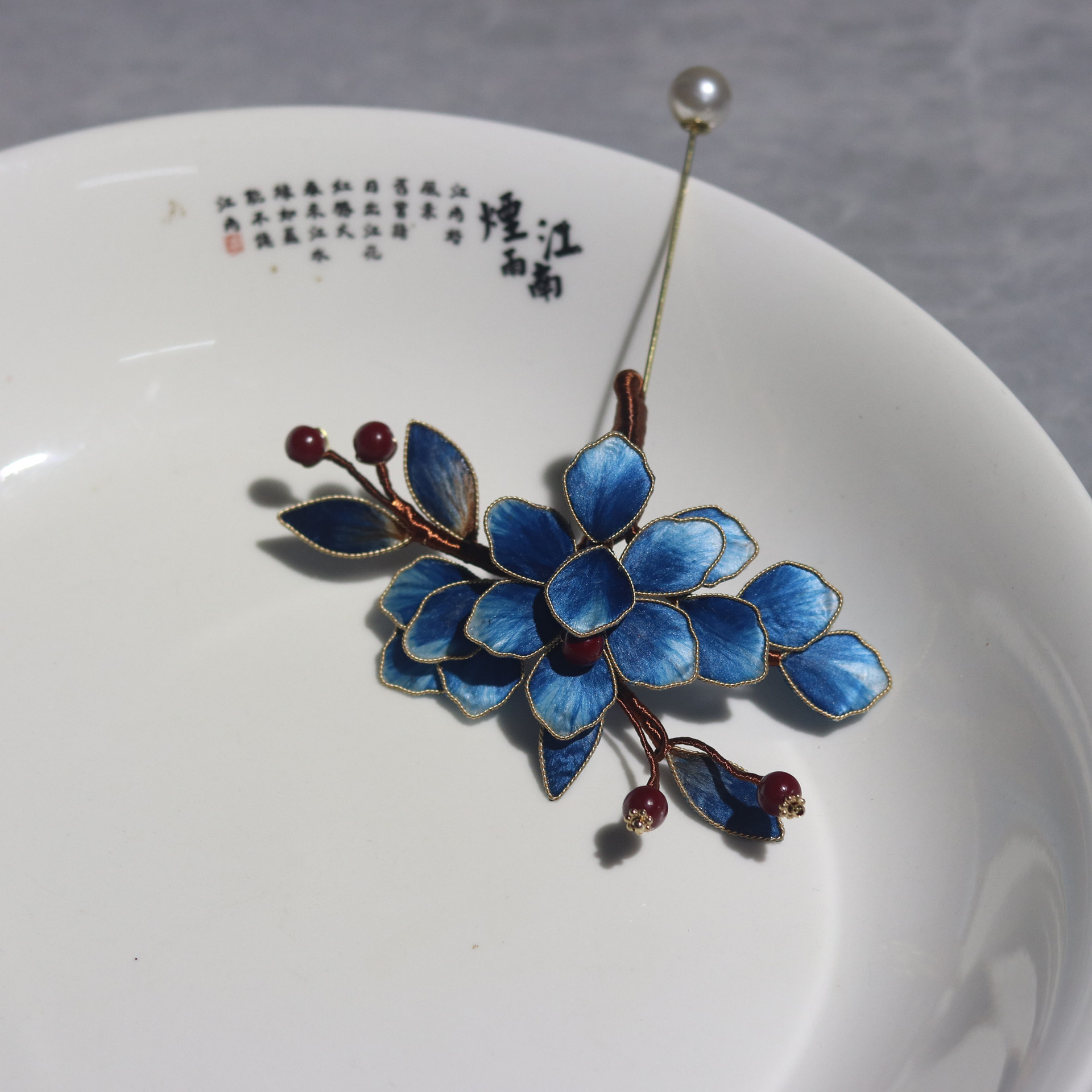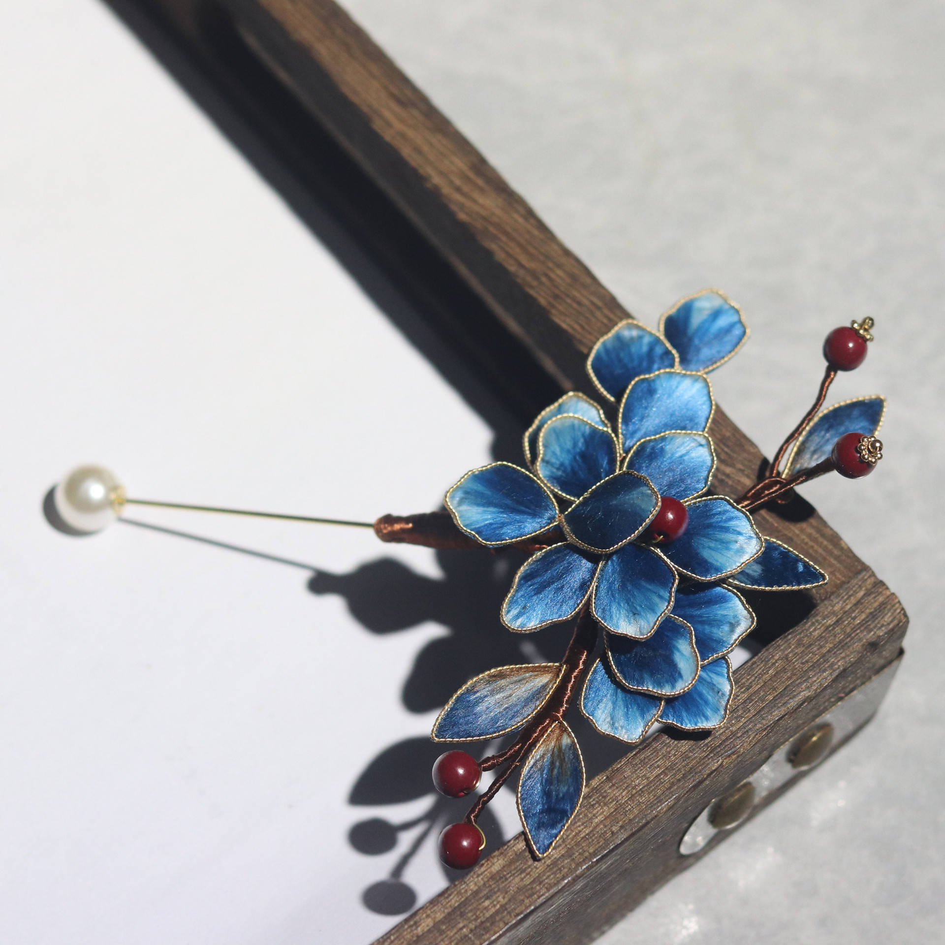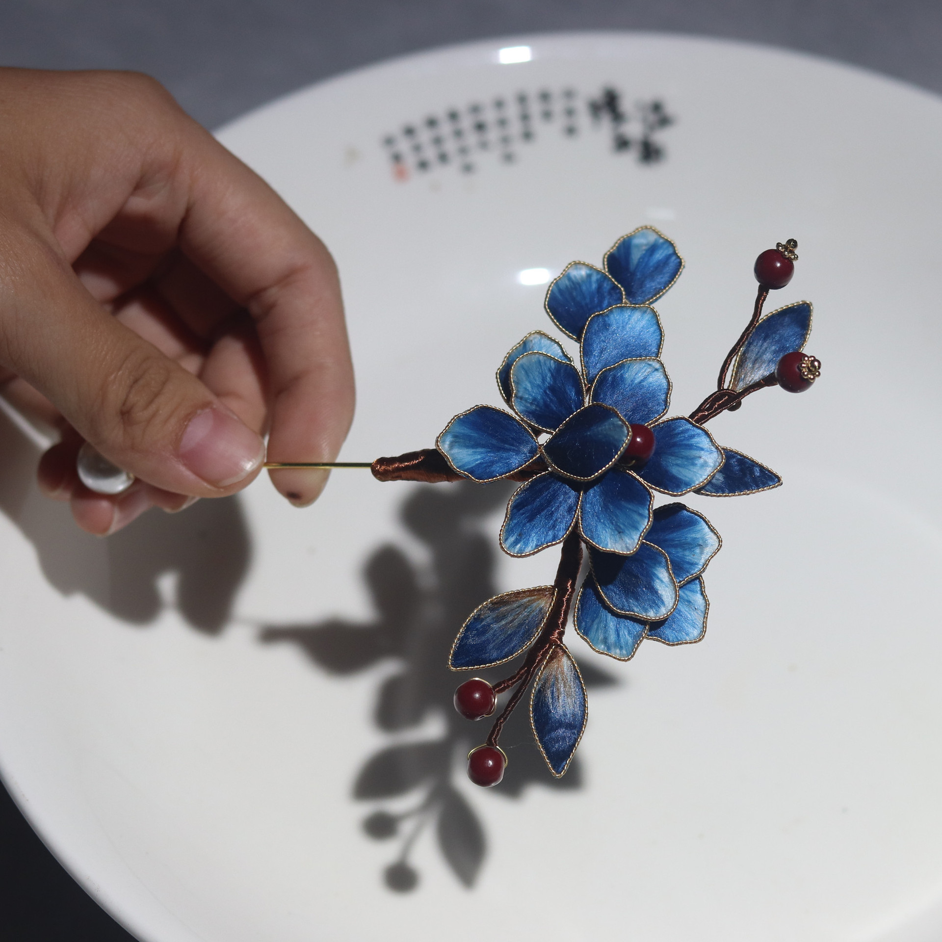 掐丝牡丹蚕丝非遗绒花胸针发钗发簪汉服发饰古风饰品