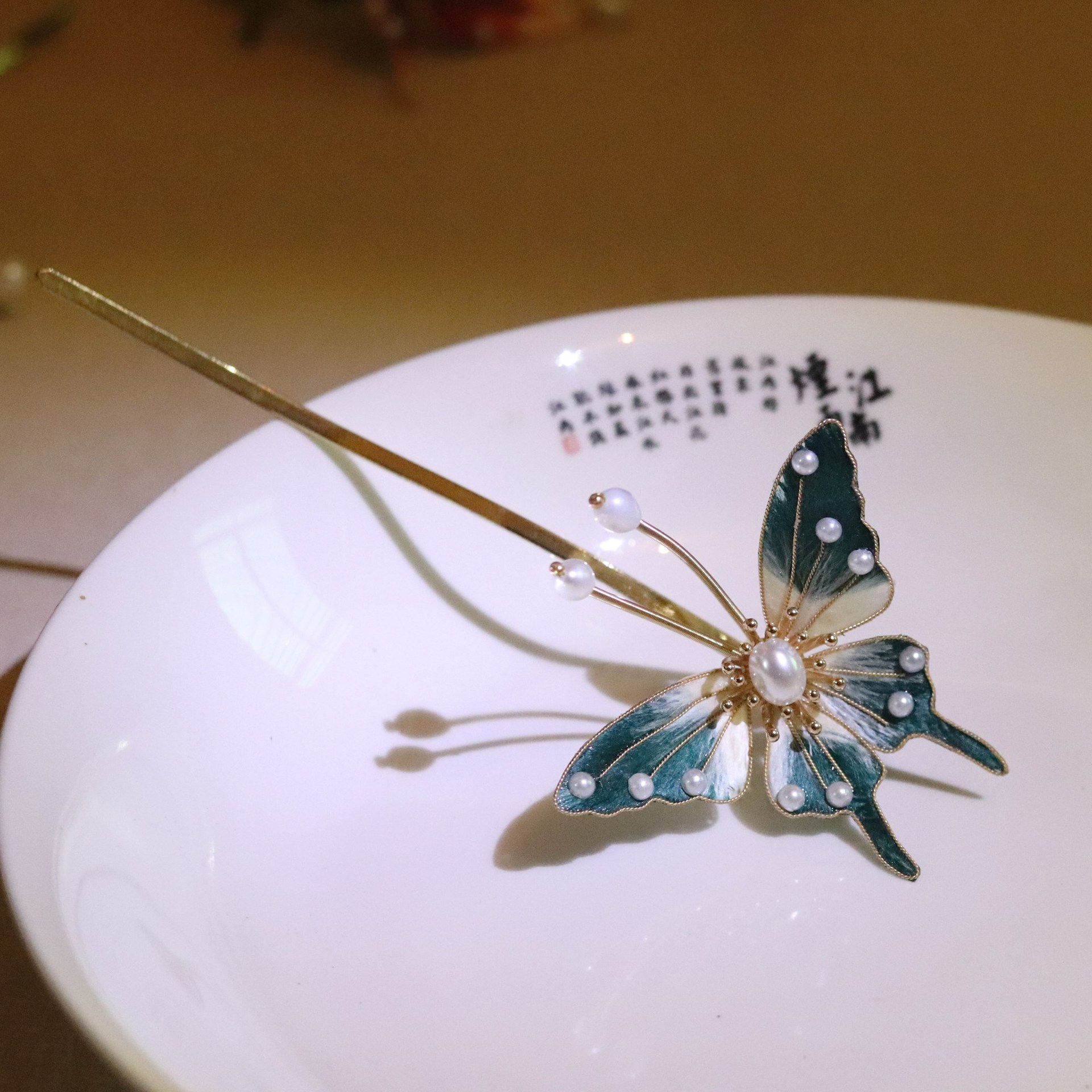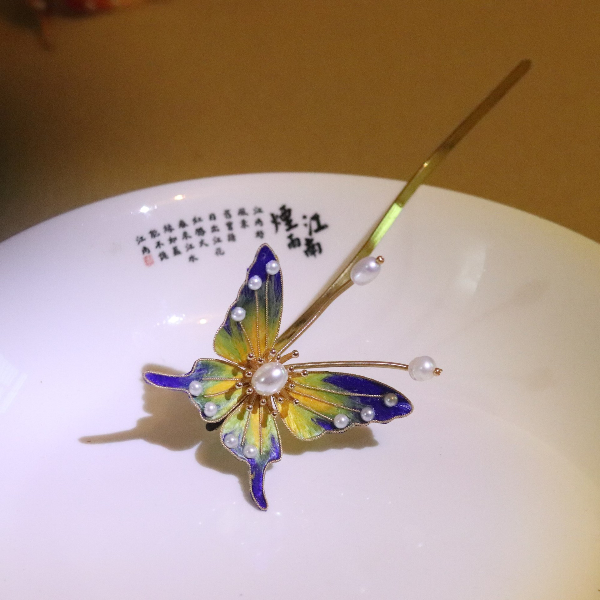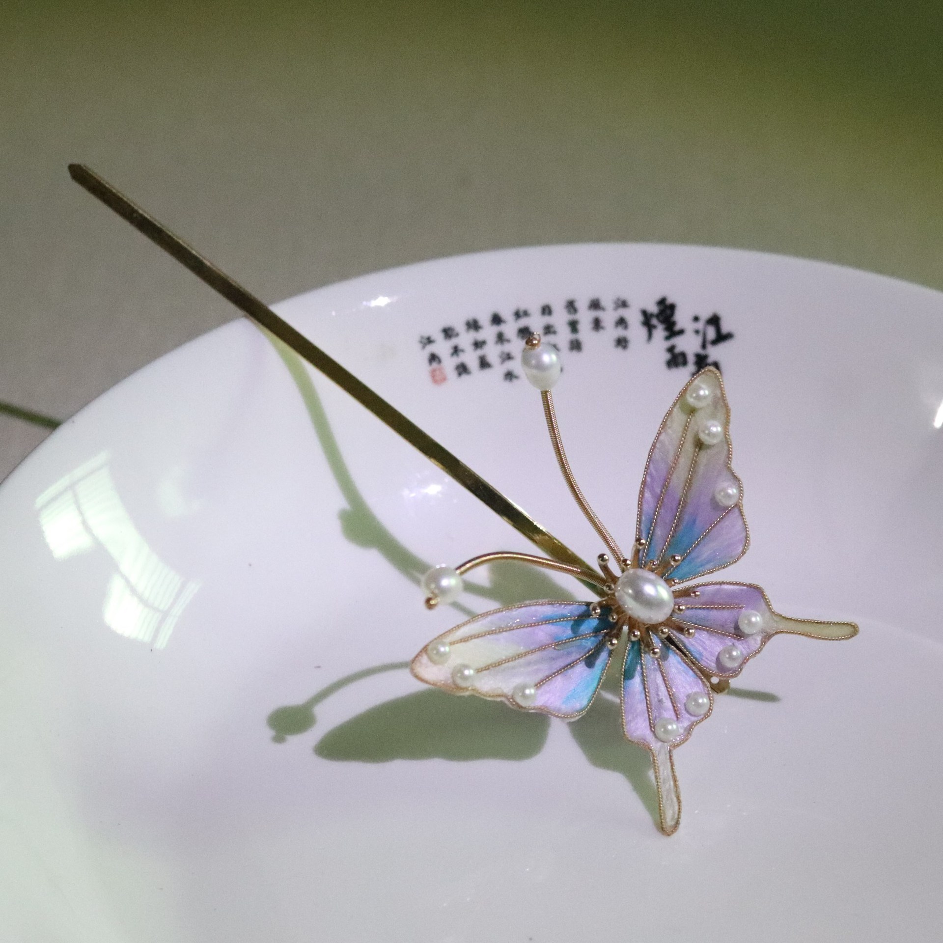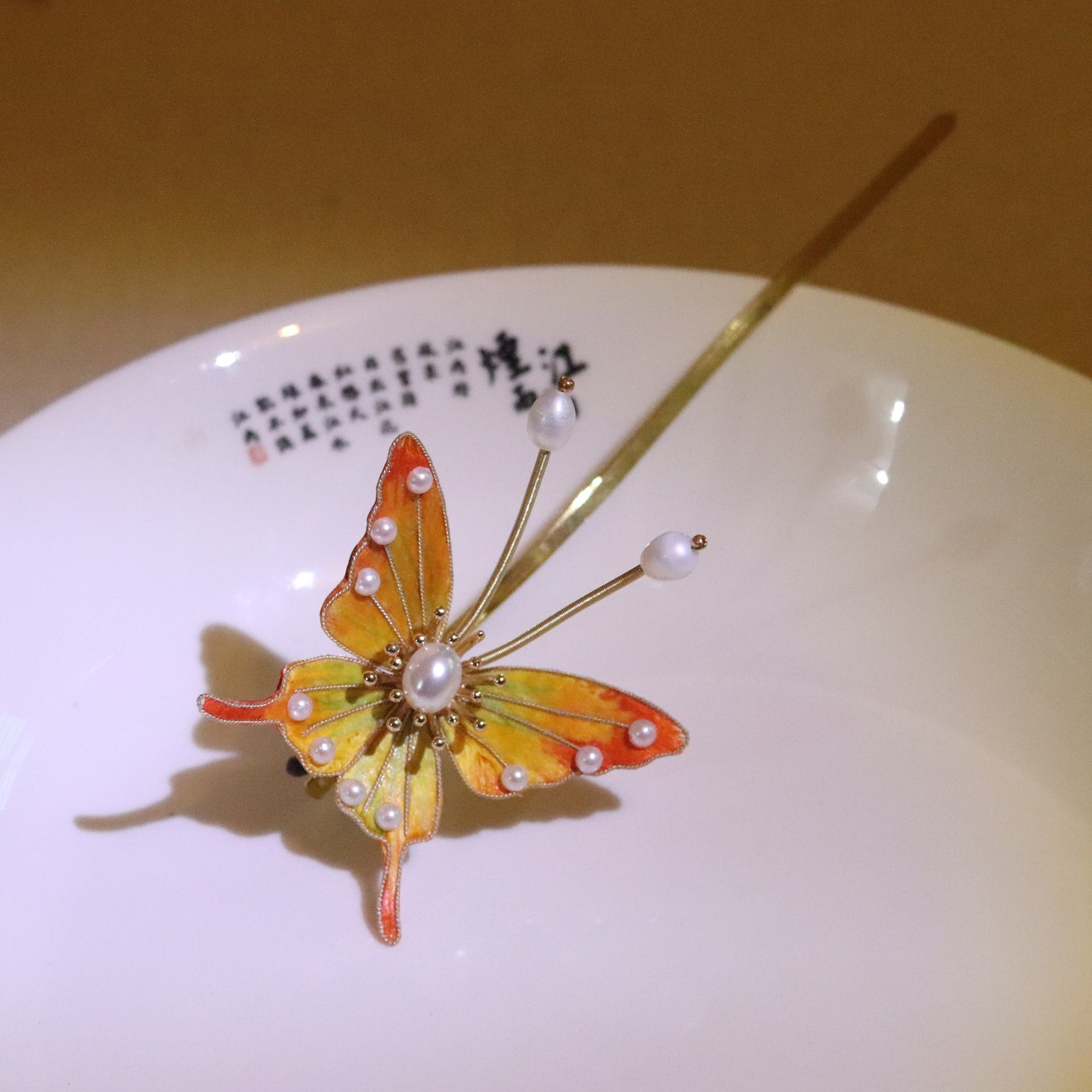 绒花掐丝蝴蝶蚕丝流苏发钗古风汉服配饰步摇简约头饰发簪饰品