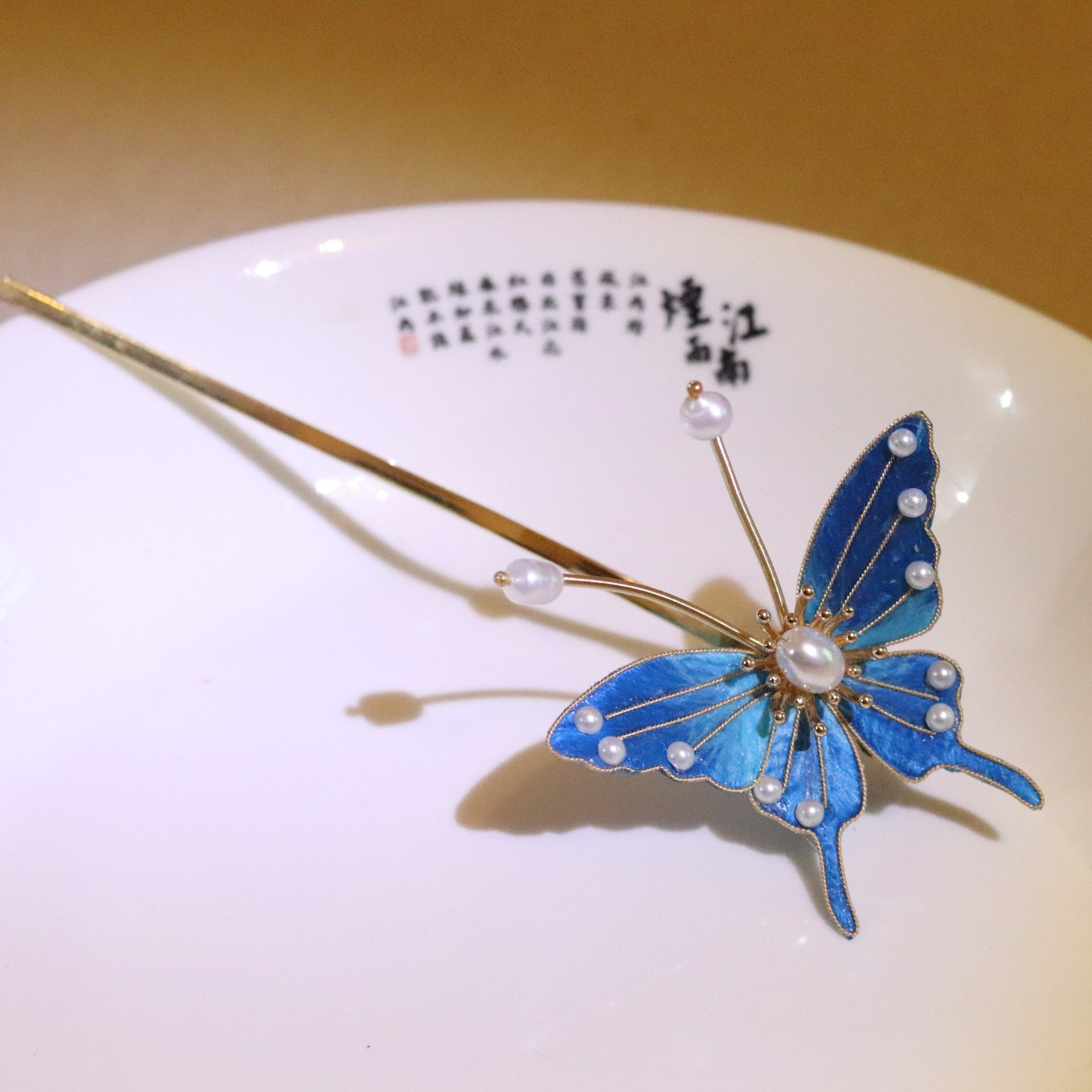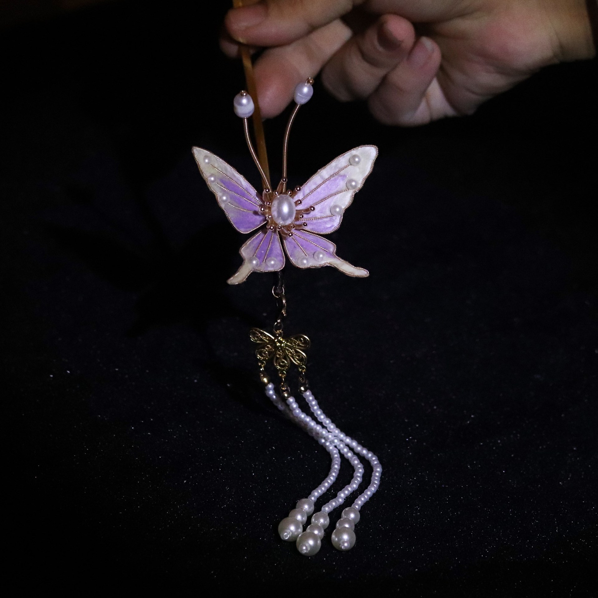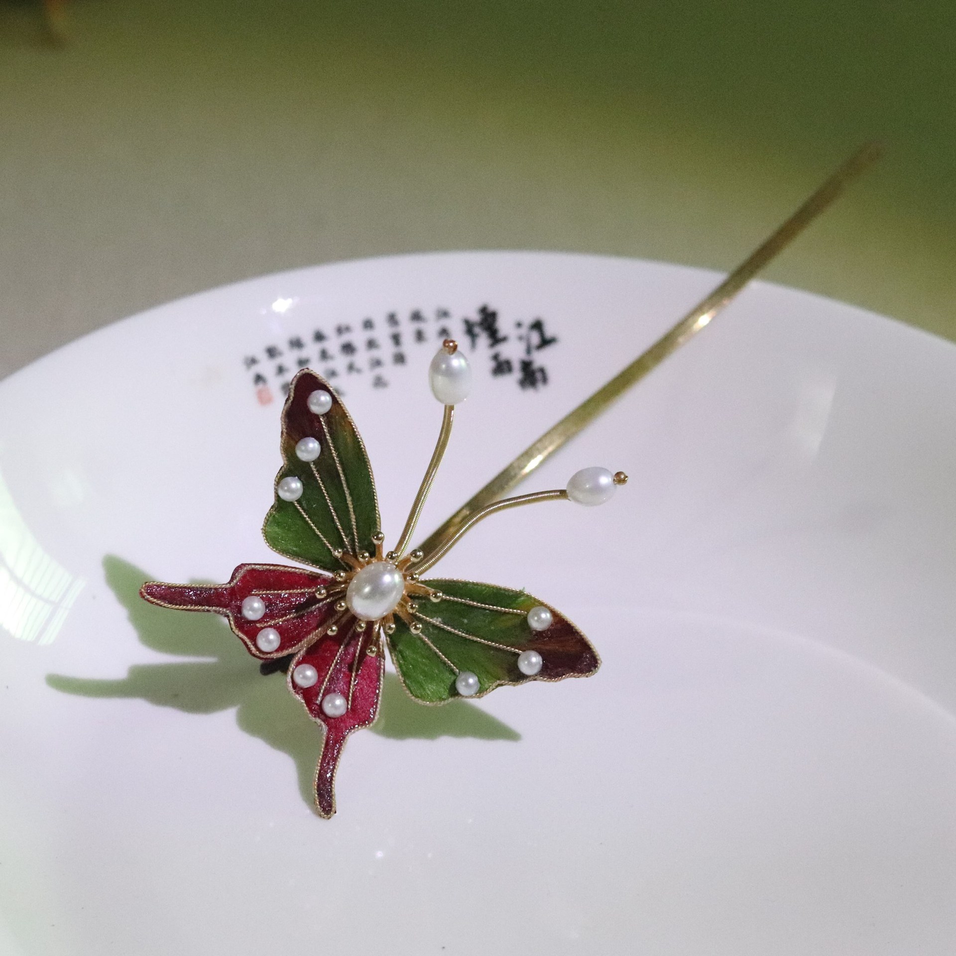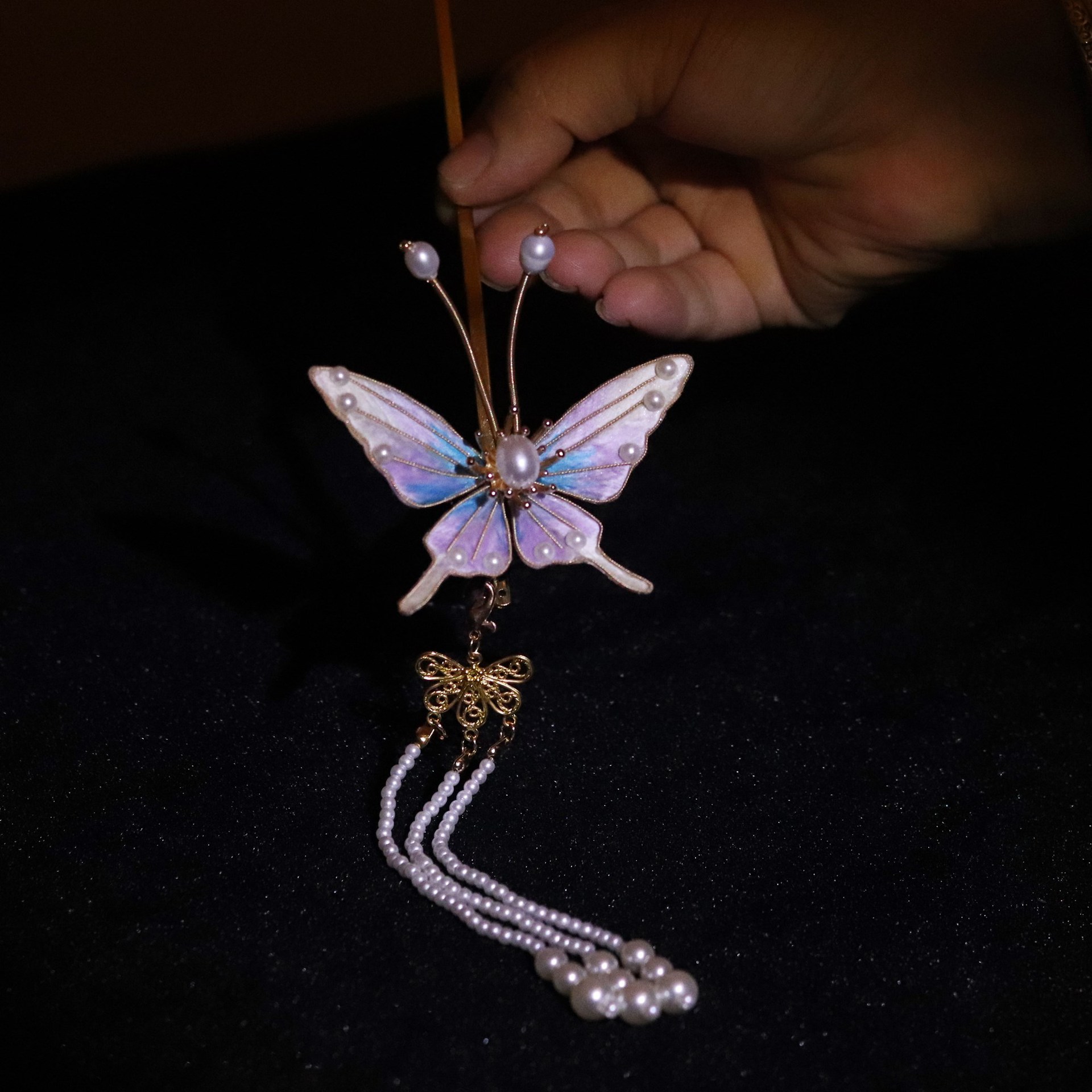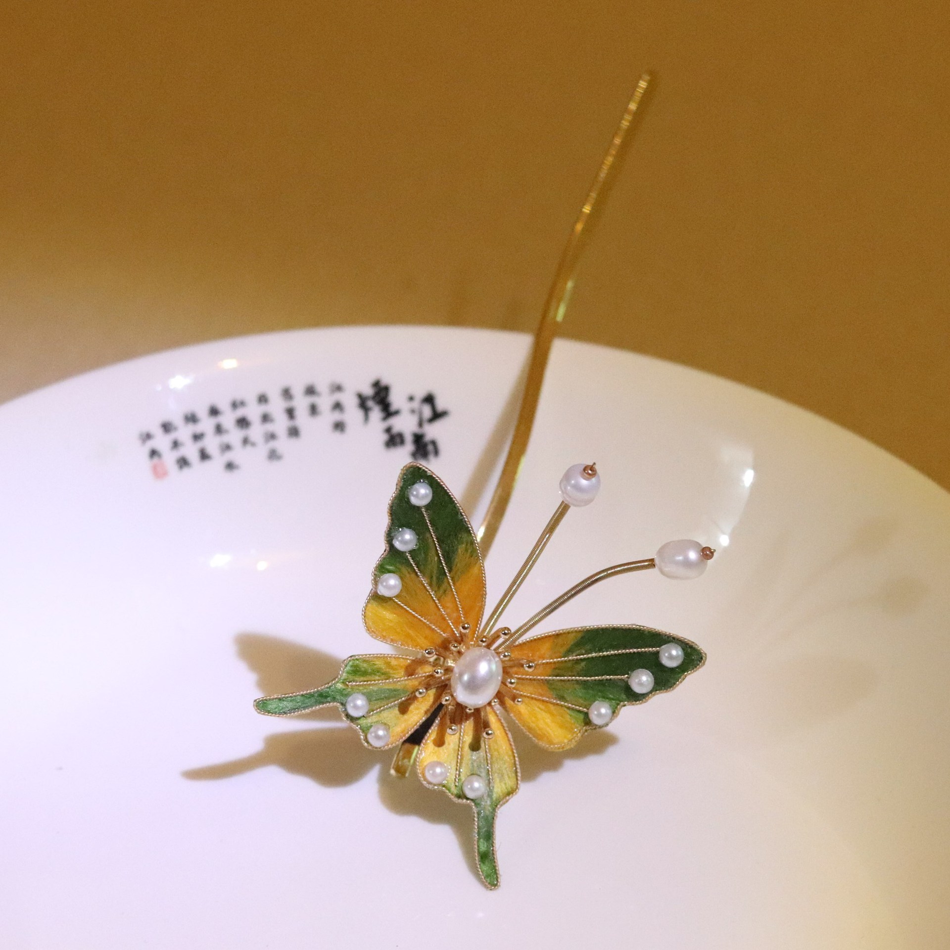 绒花掐丝蝴蝶蚕丝流苏发钗古风汉服配饰步摇简约头饰发簪饰品