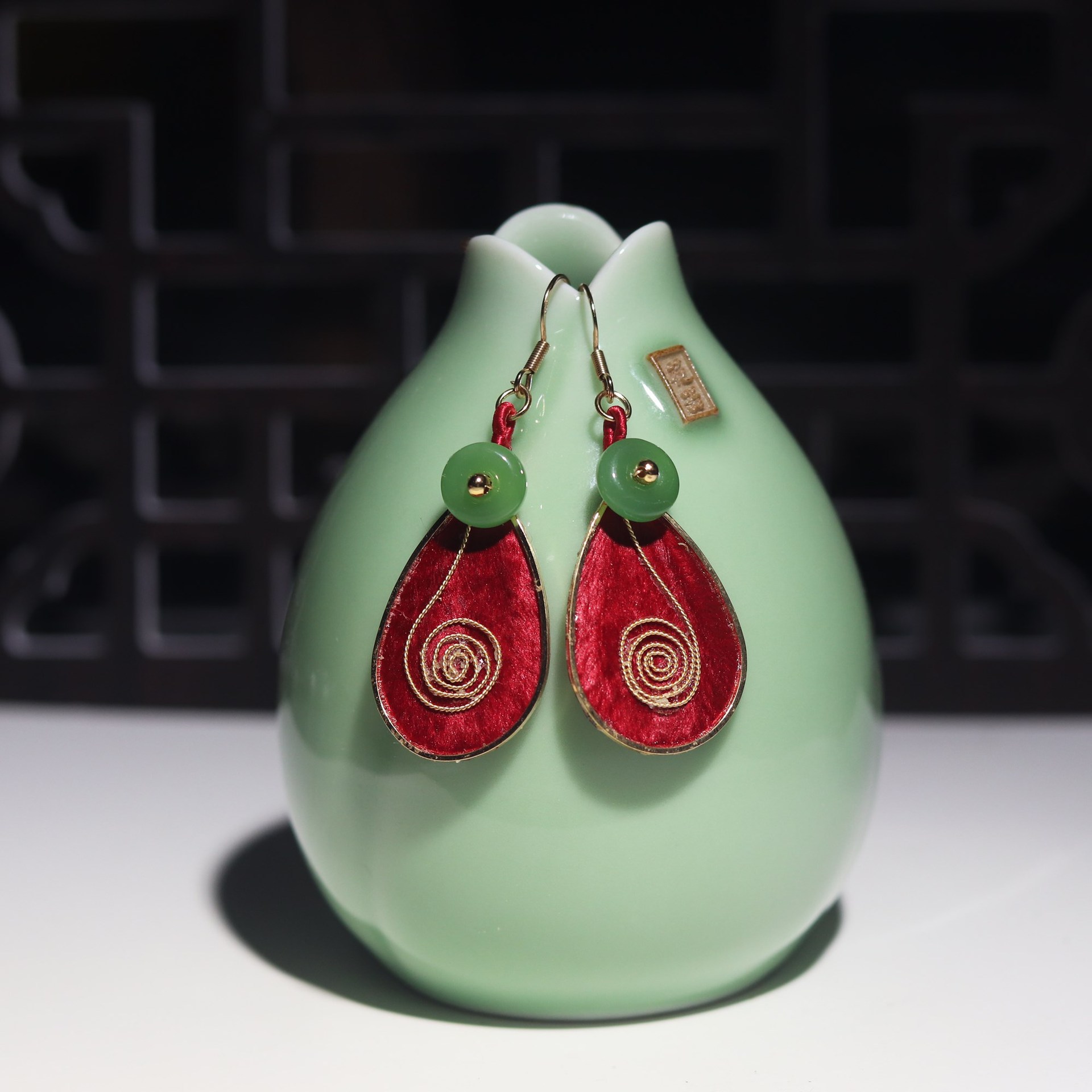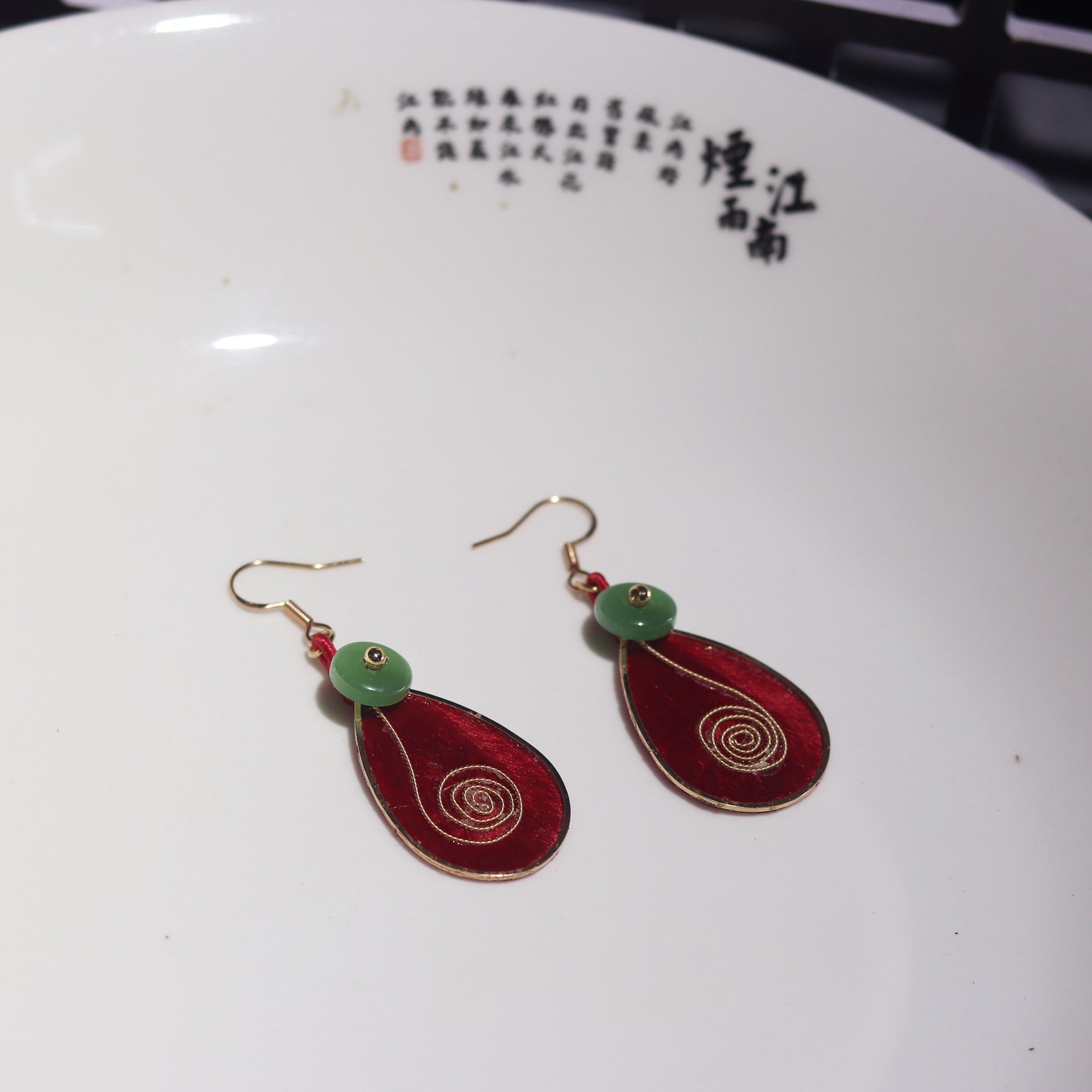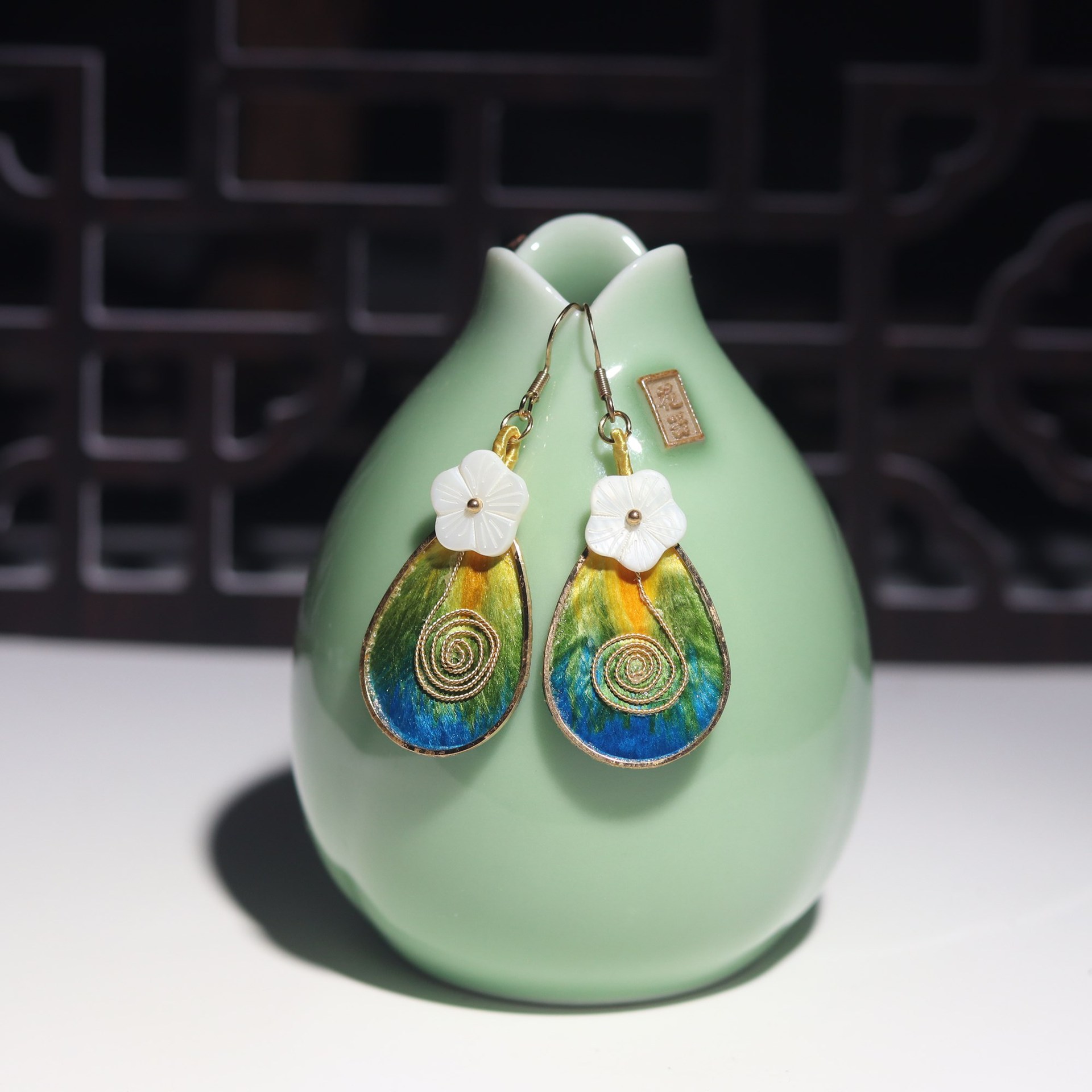 水墨非遗绒花掐丝水墨耳钩 古典国风汉服旗袍耳饰配饰