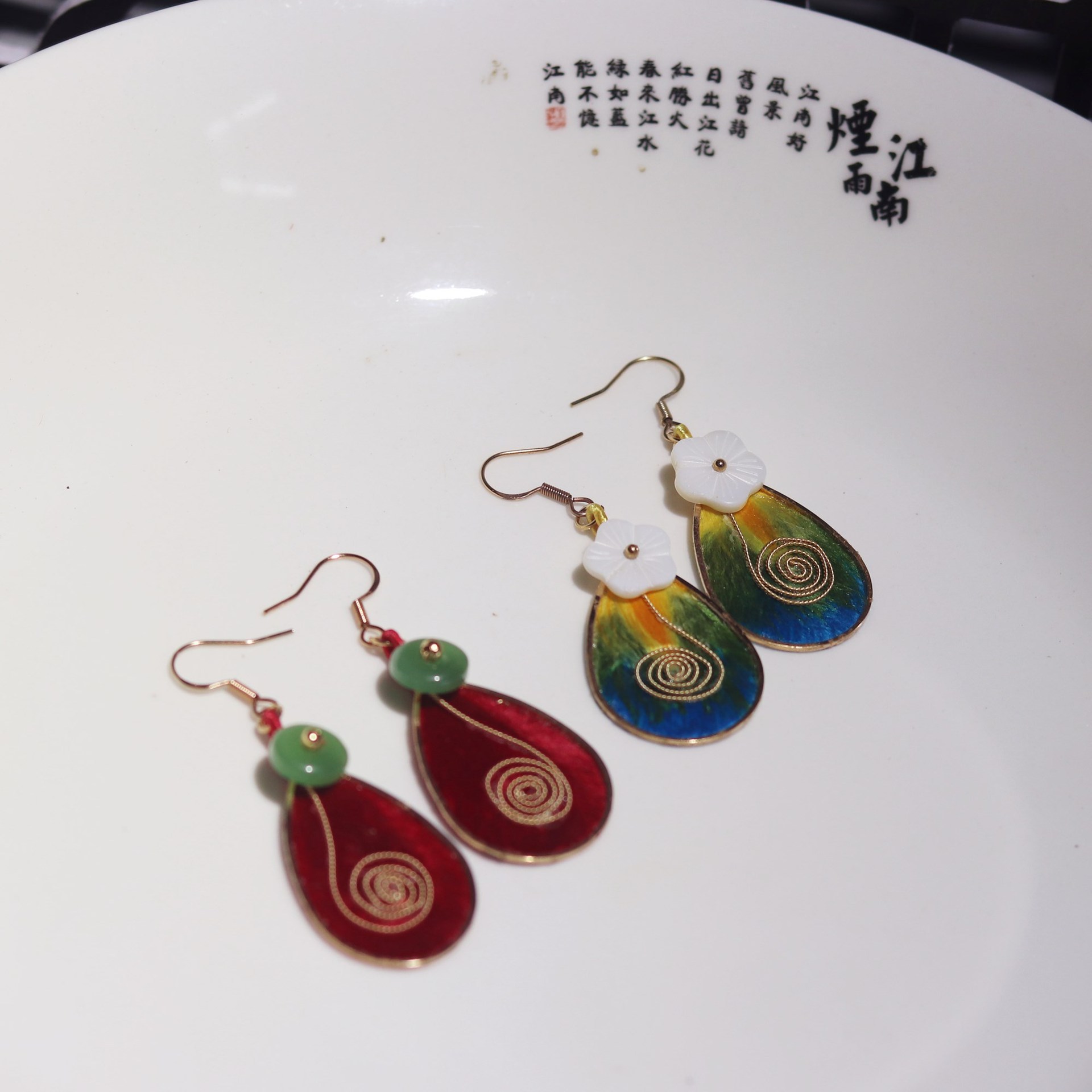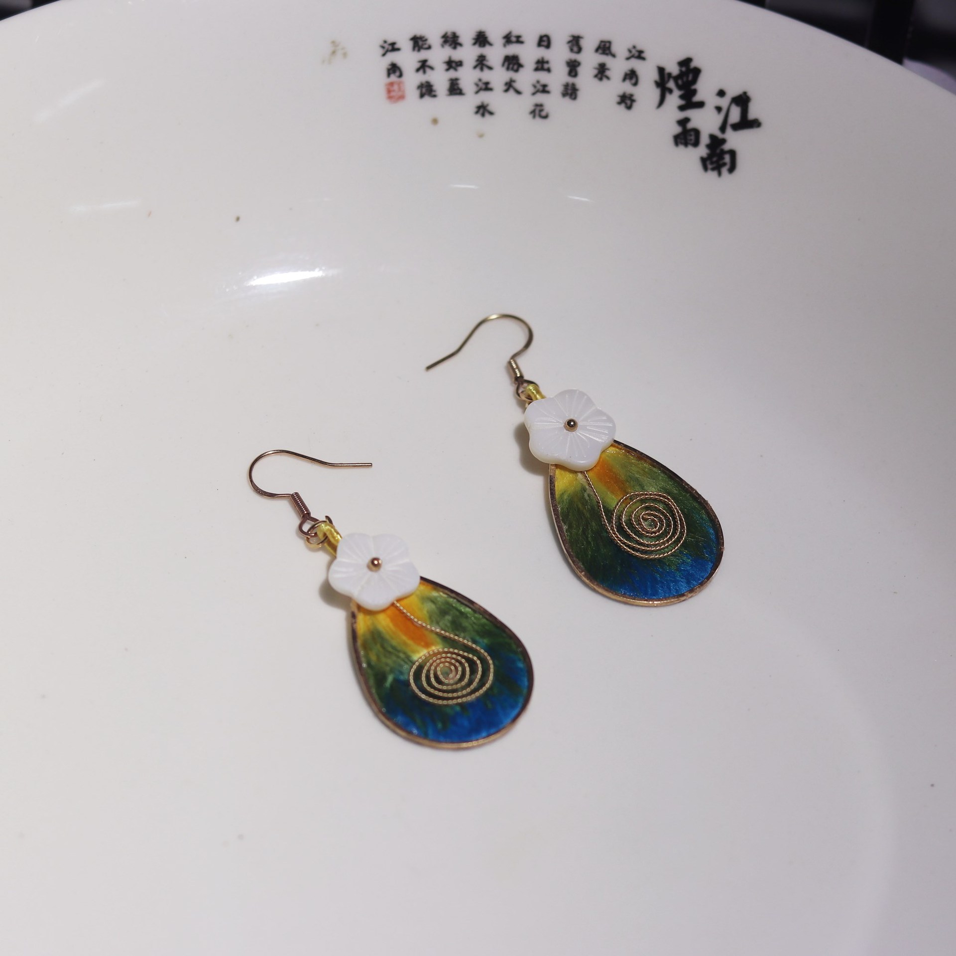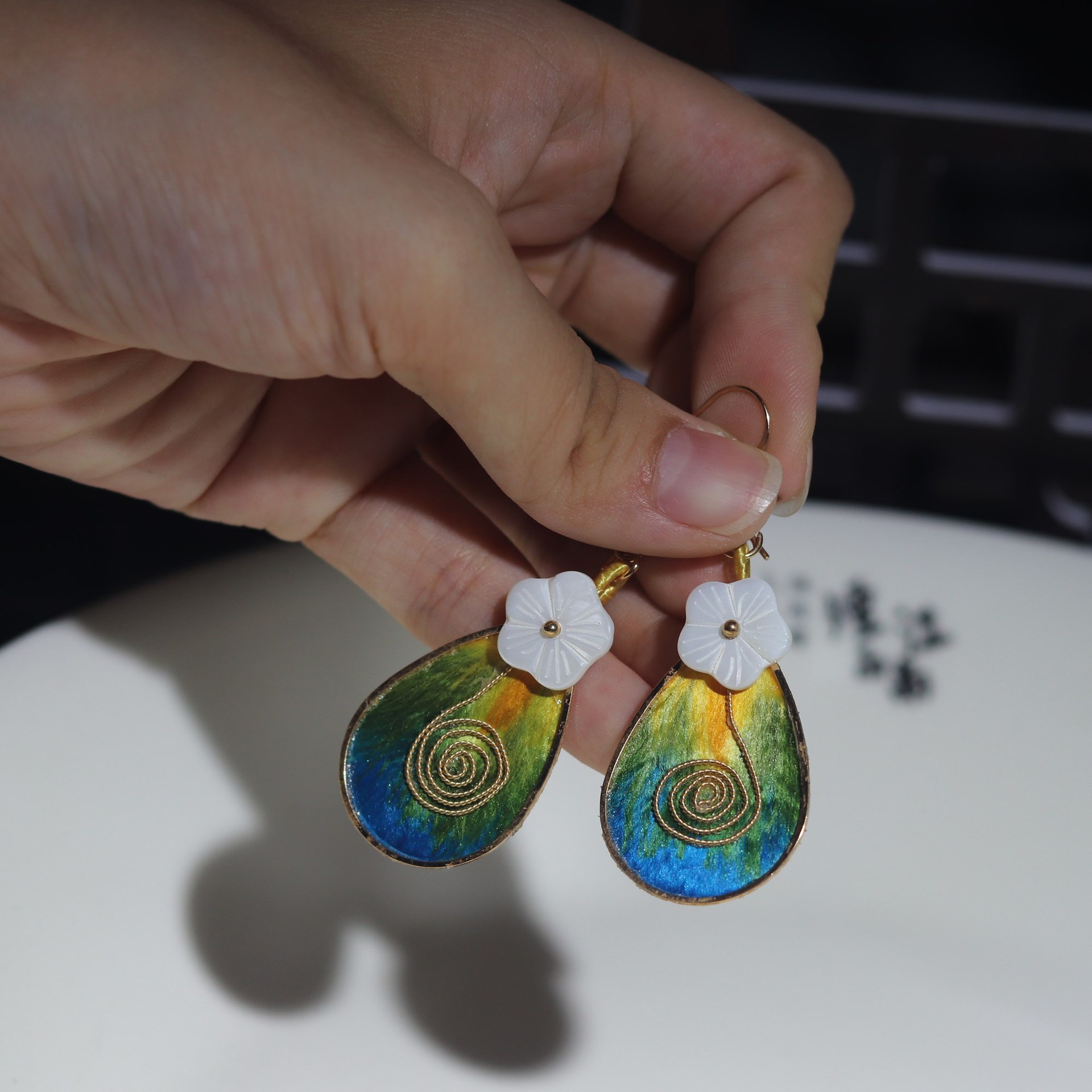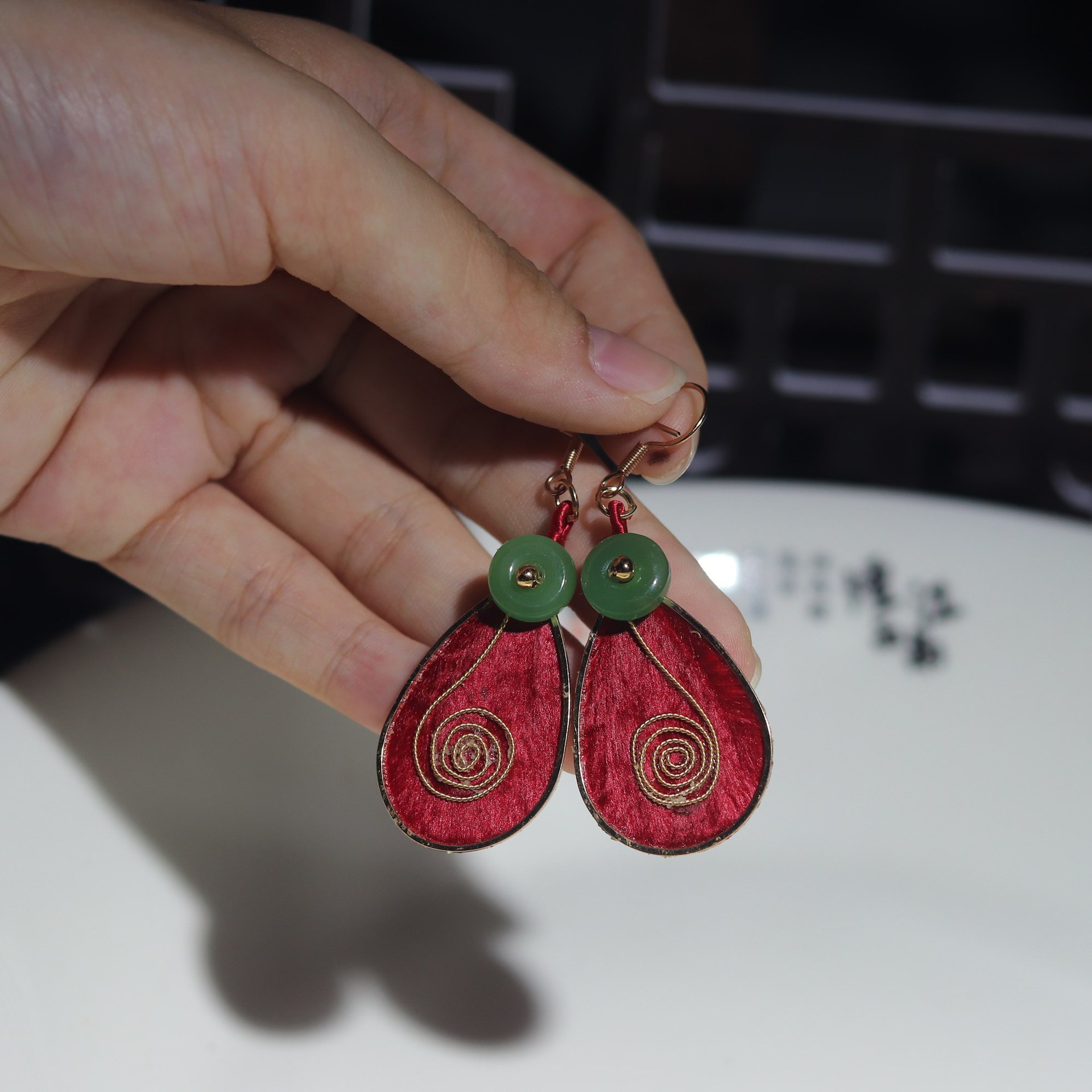 水墨非遗绒花掐丝水墨耳钩 古典国风汉服旗袍耳饰配饰