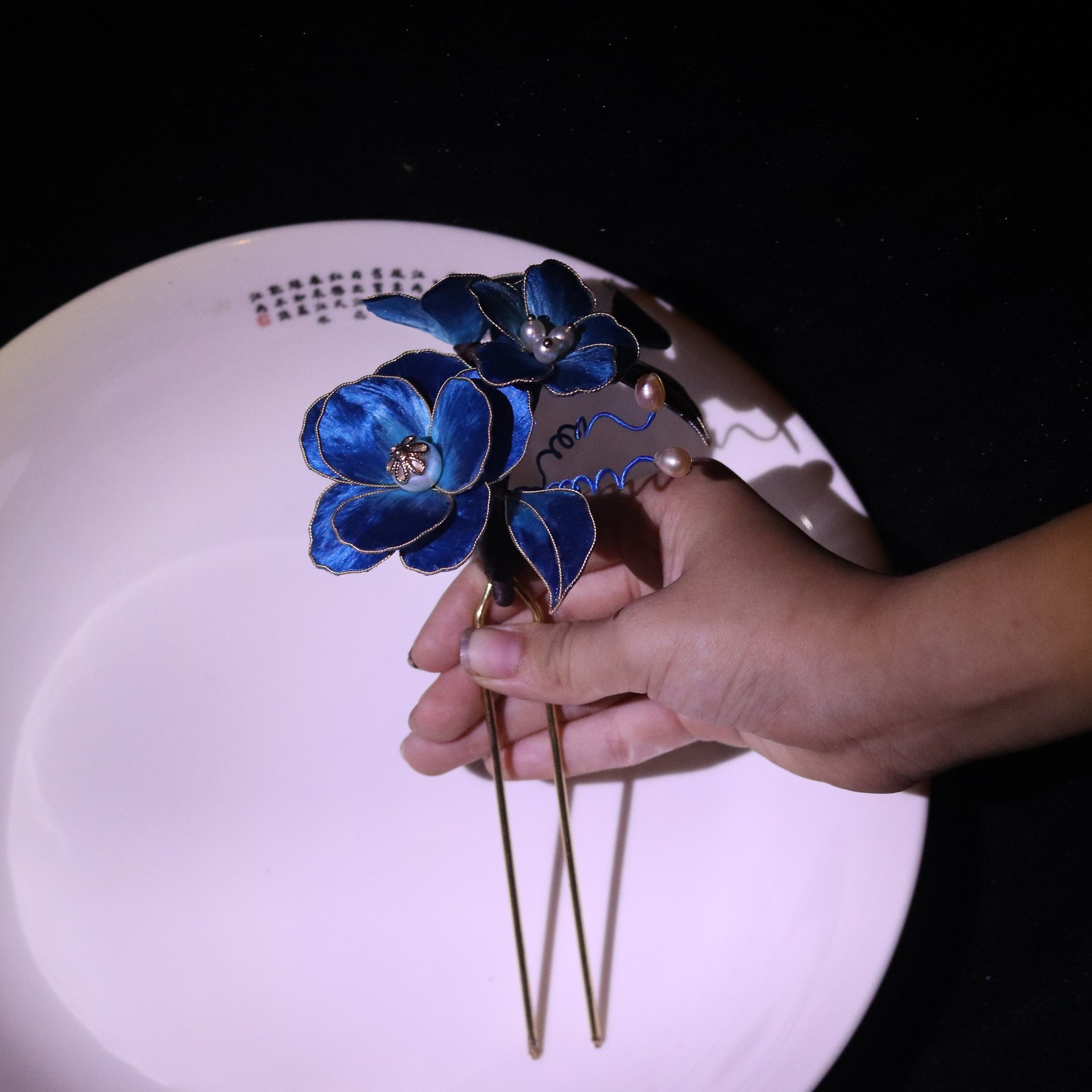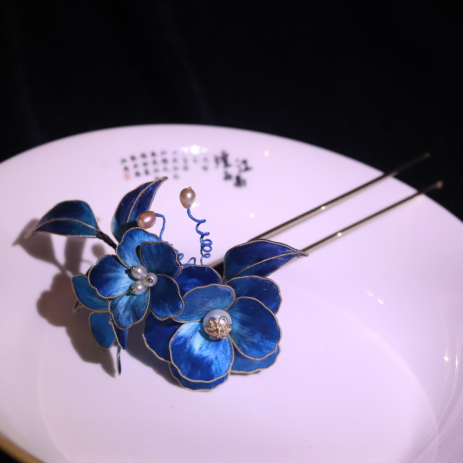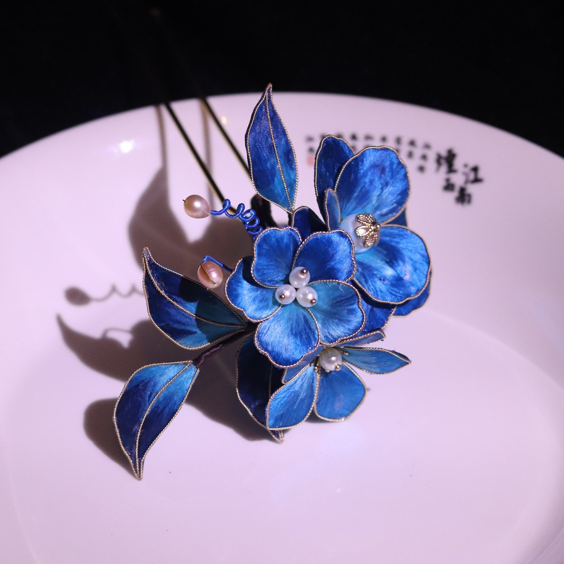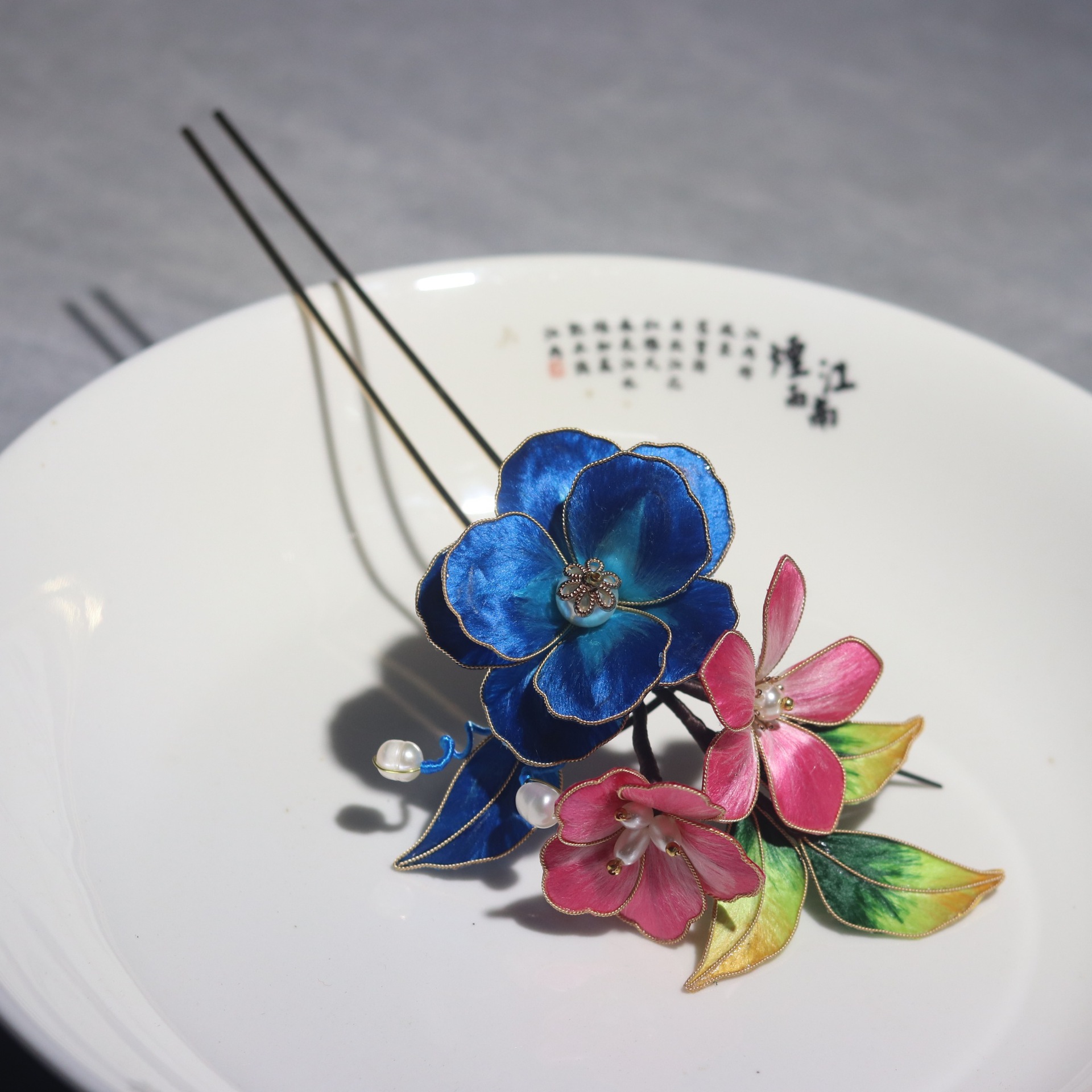 古风蚕丝渐变掐丝绒花发簪汉服简约复古宫廷中式婚庆发饰头饰