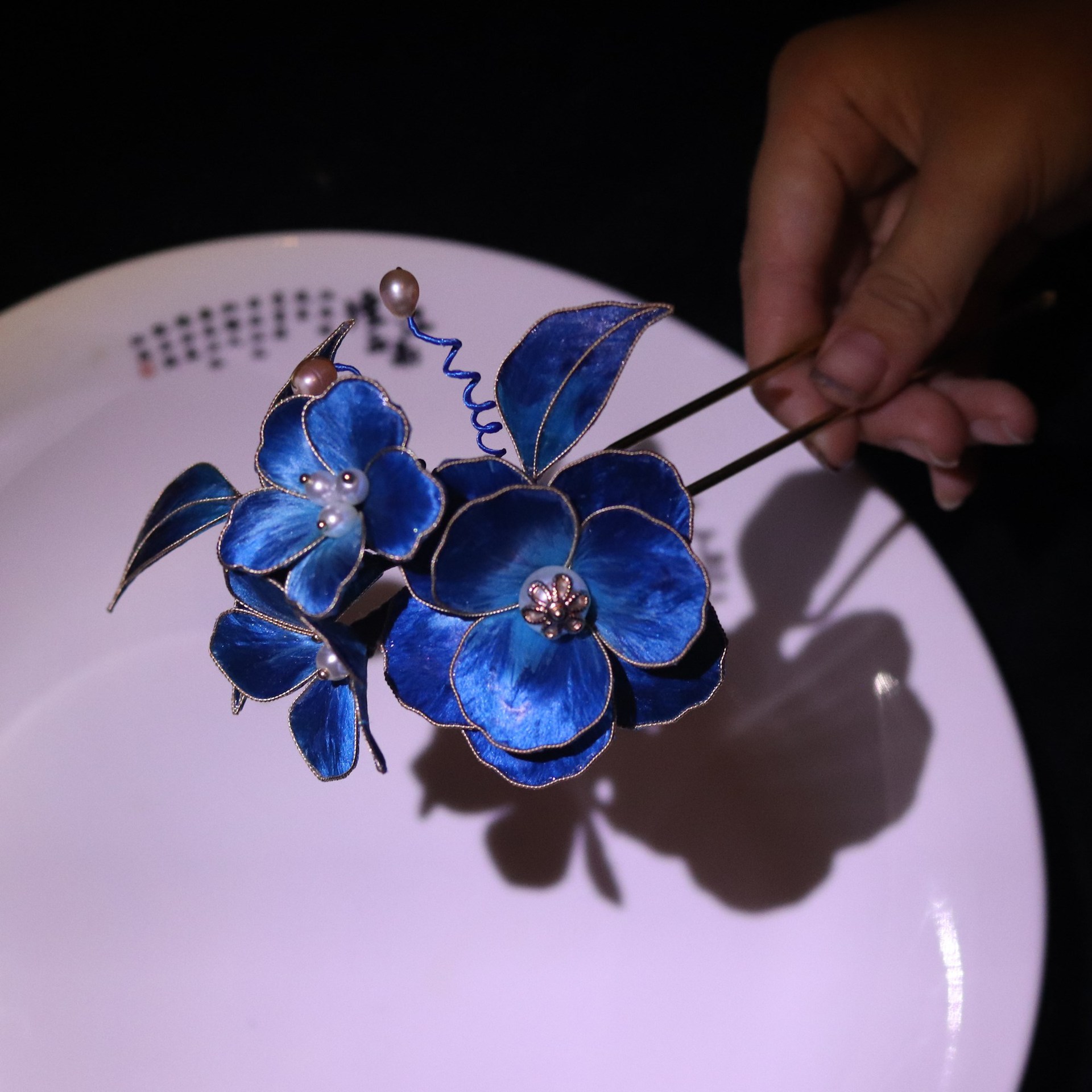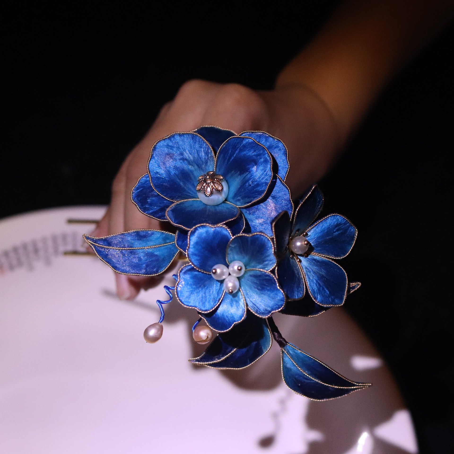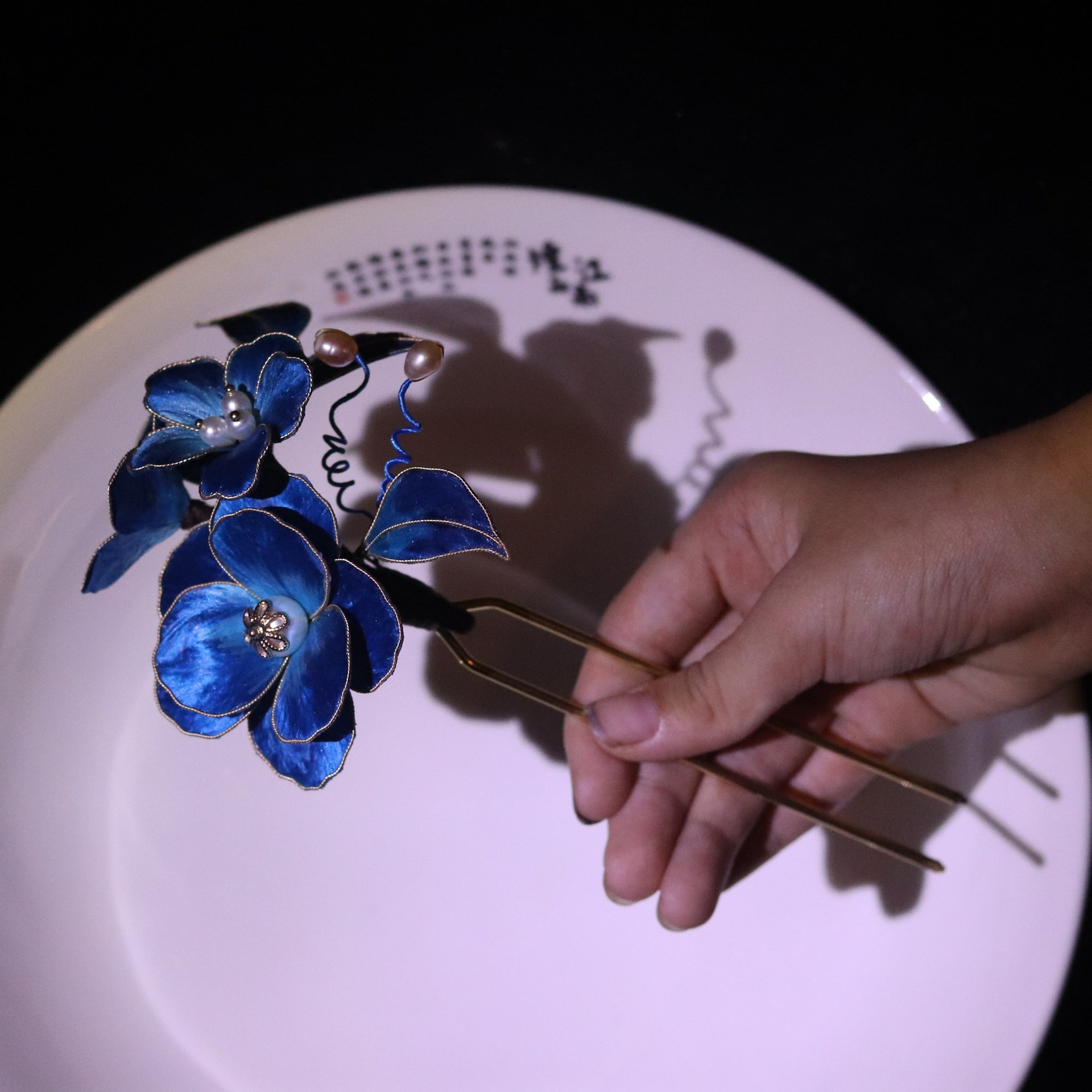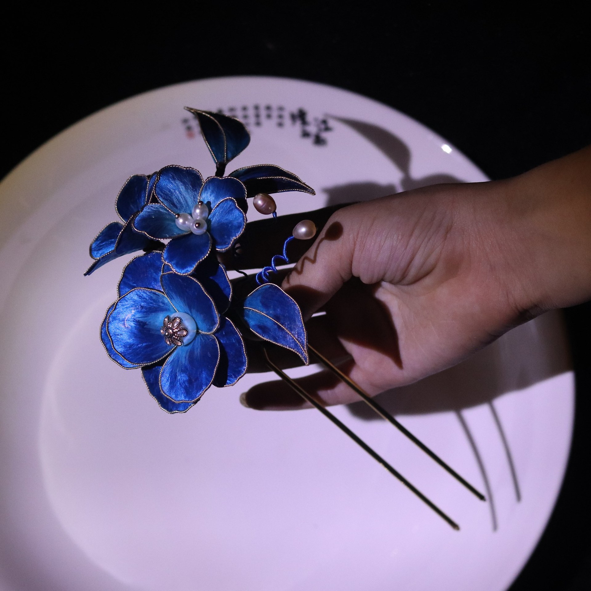 古风蚕丝渐变掐丝绒花发簪汉服简约复古宫廷中式婚庆发饰头饰