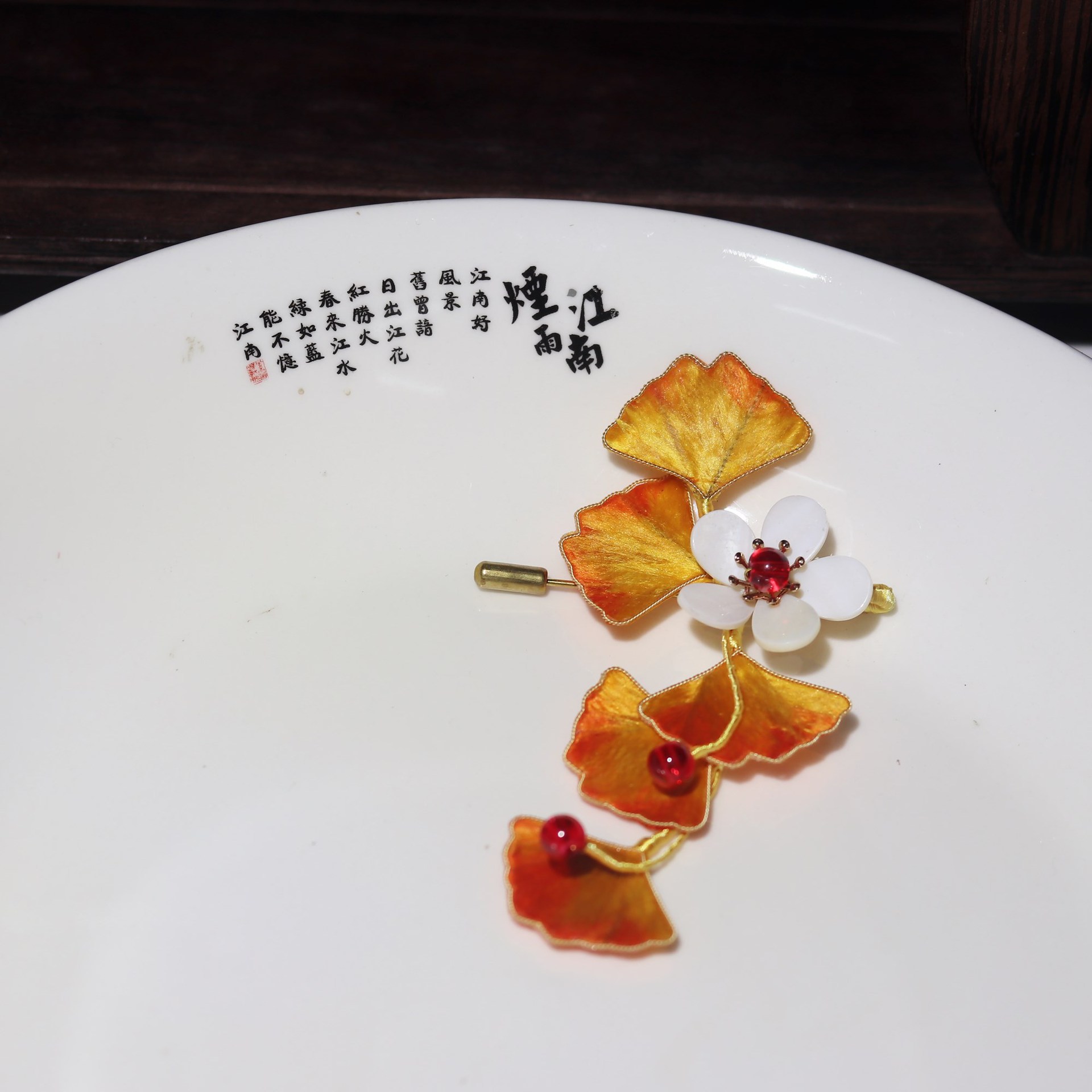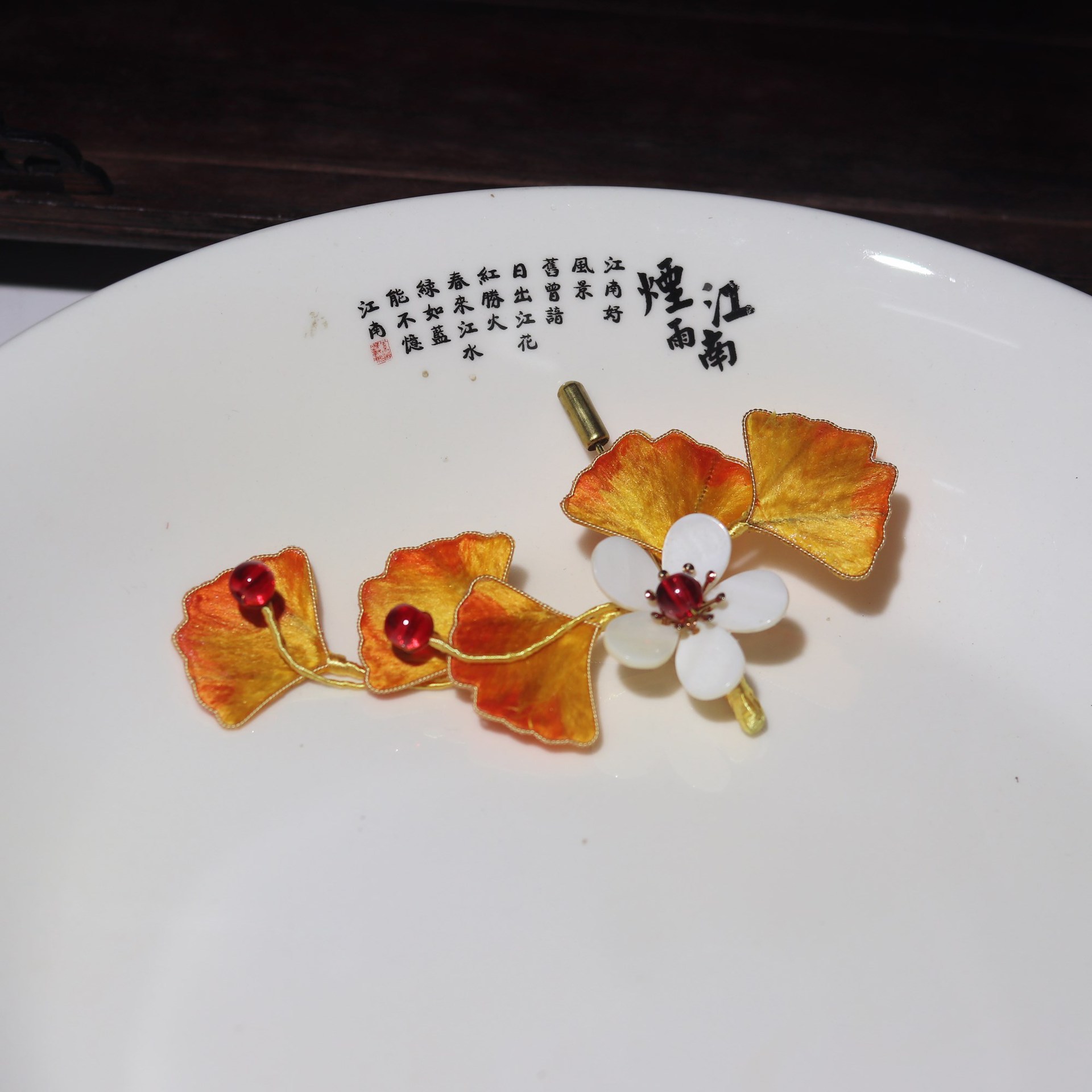 银杏掐丝绒花古风旗袍 汉服配饰绒花发钗胸针
