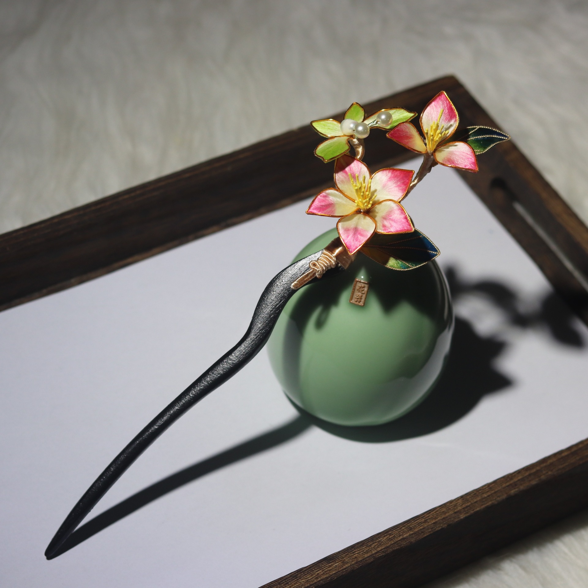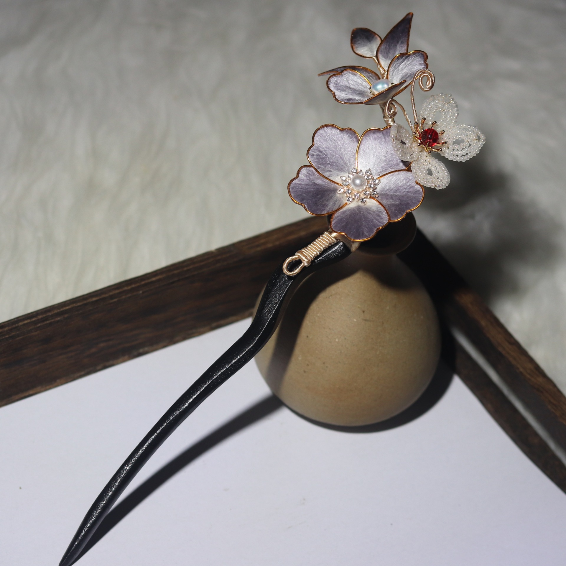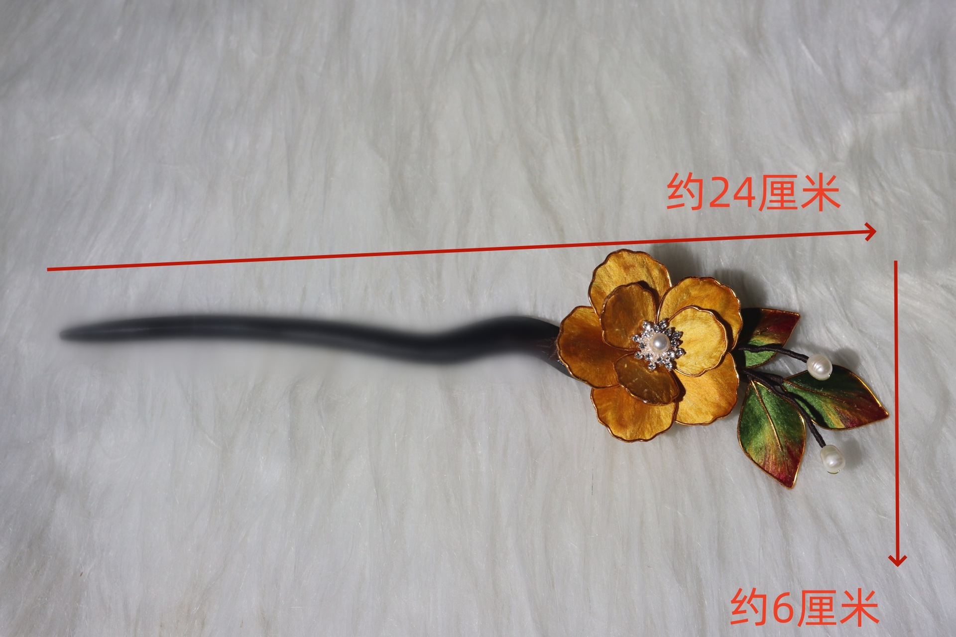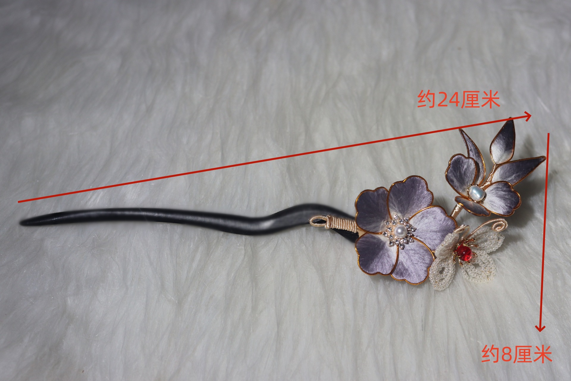 非遗掐丝绒花发钗古风汉服蚕丝发簪黑檀木发簪旗袍发饰