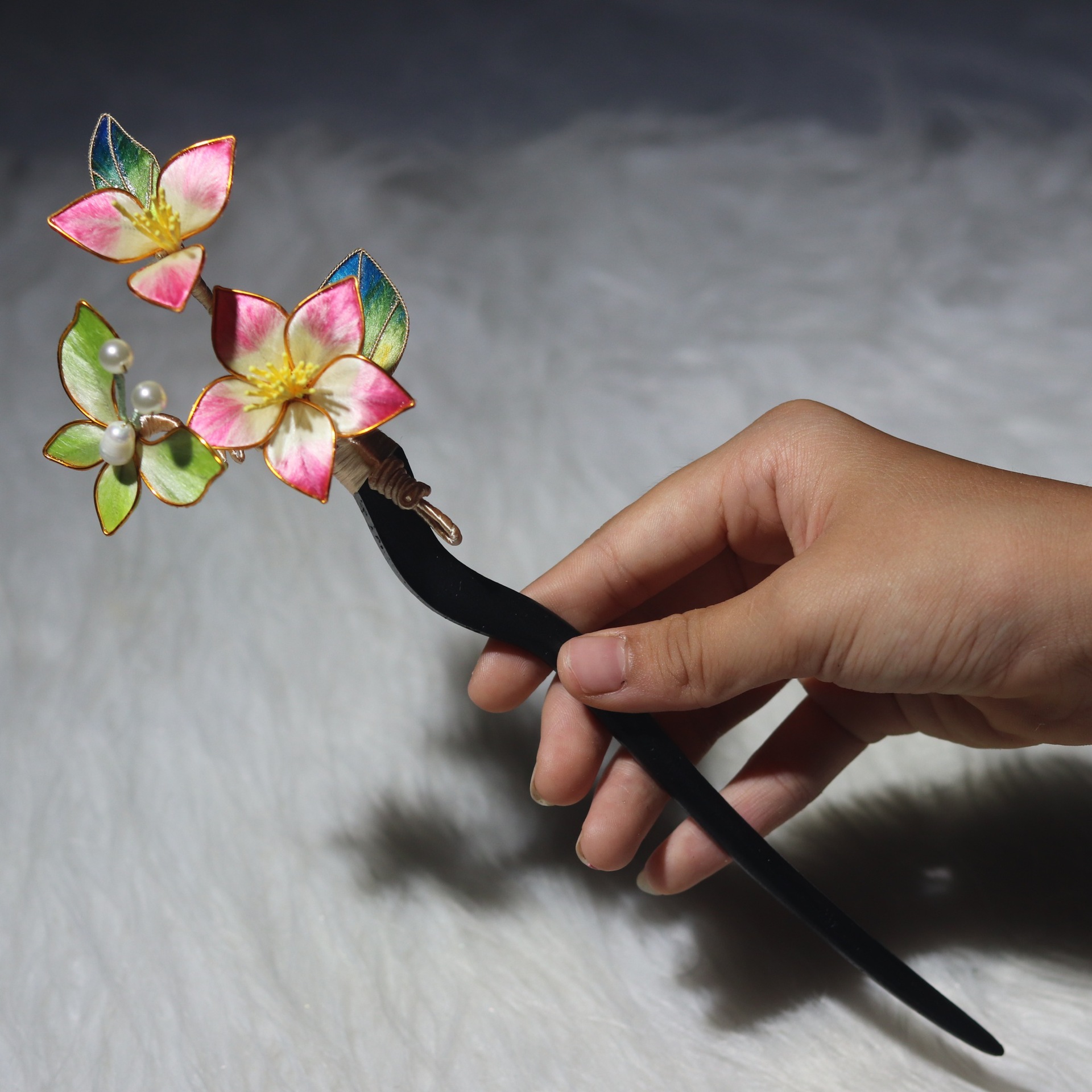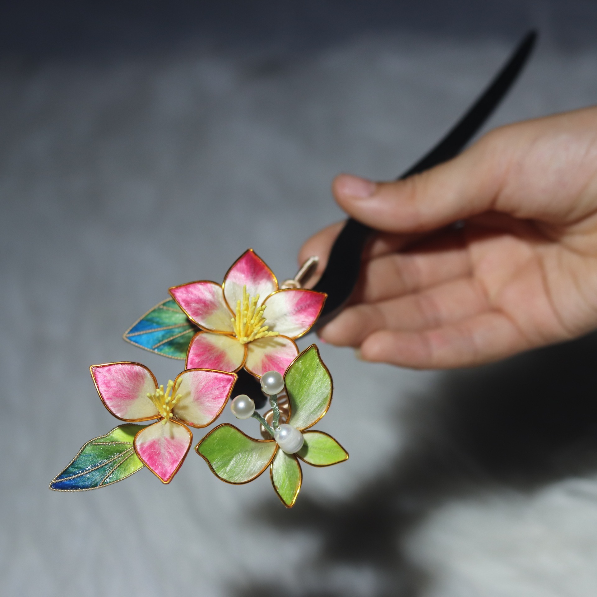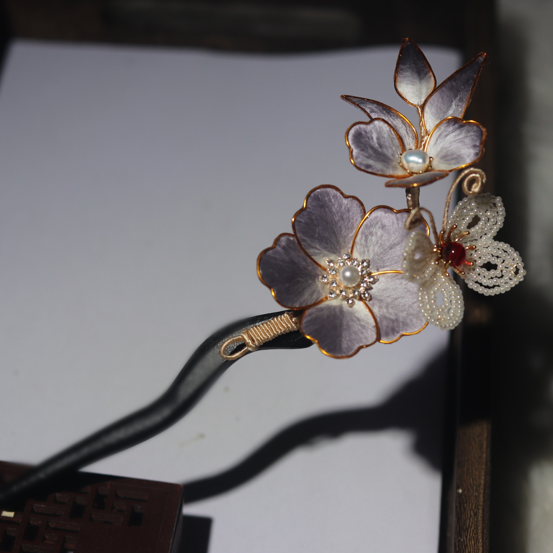 非遗掐丝绒花发钗古风汉服蚕丝发簪黑檀木发簪旗袍发饰