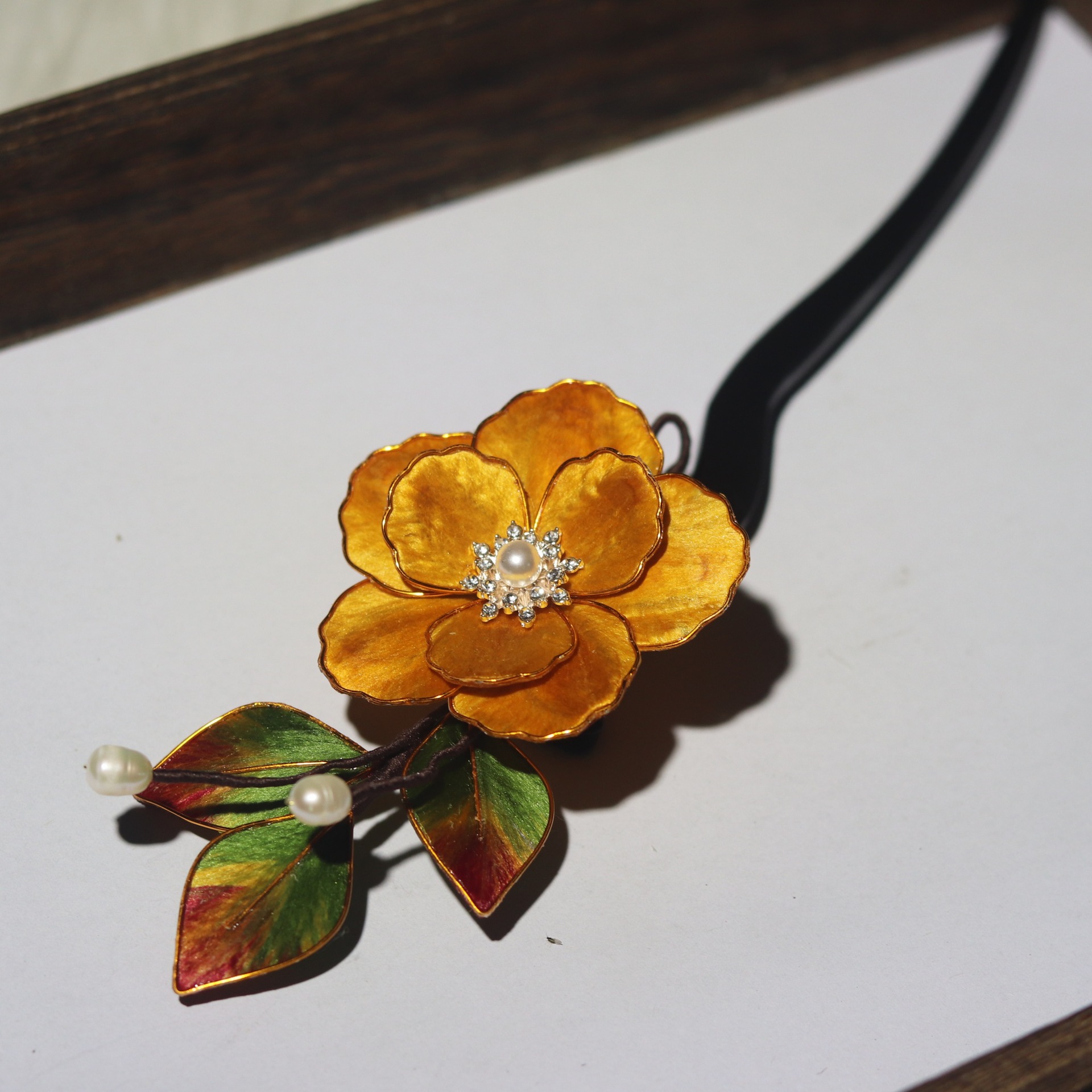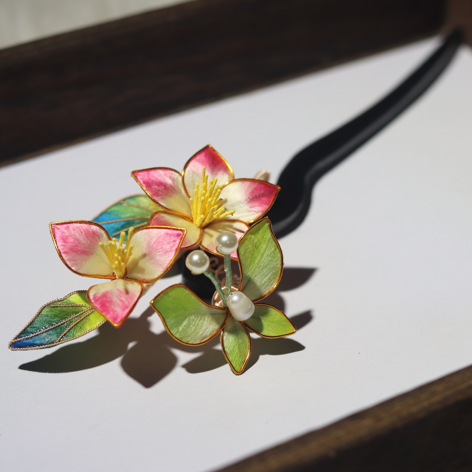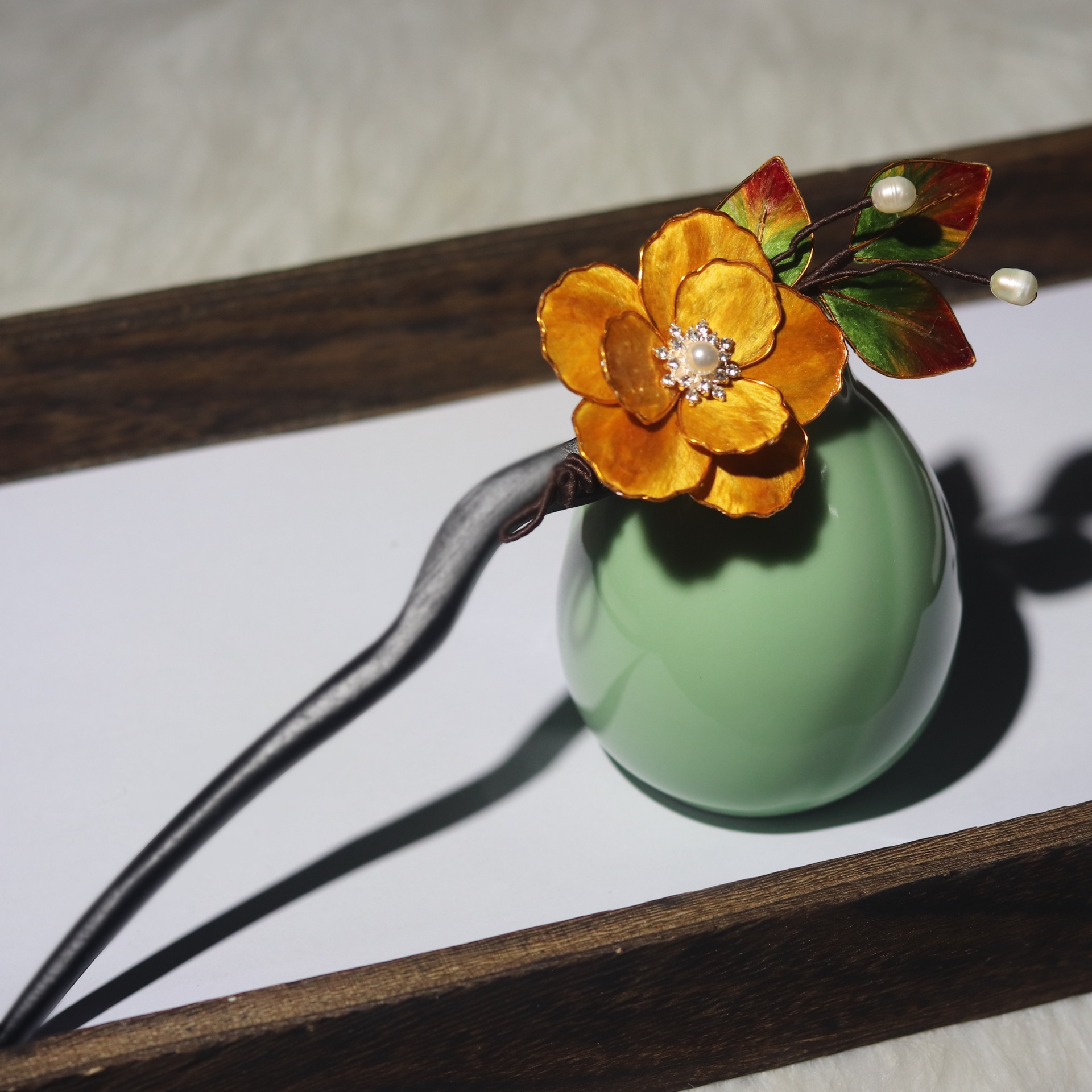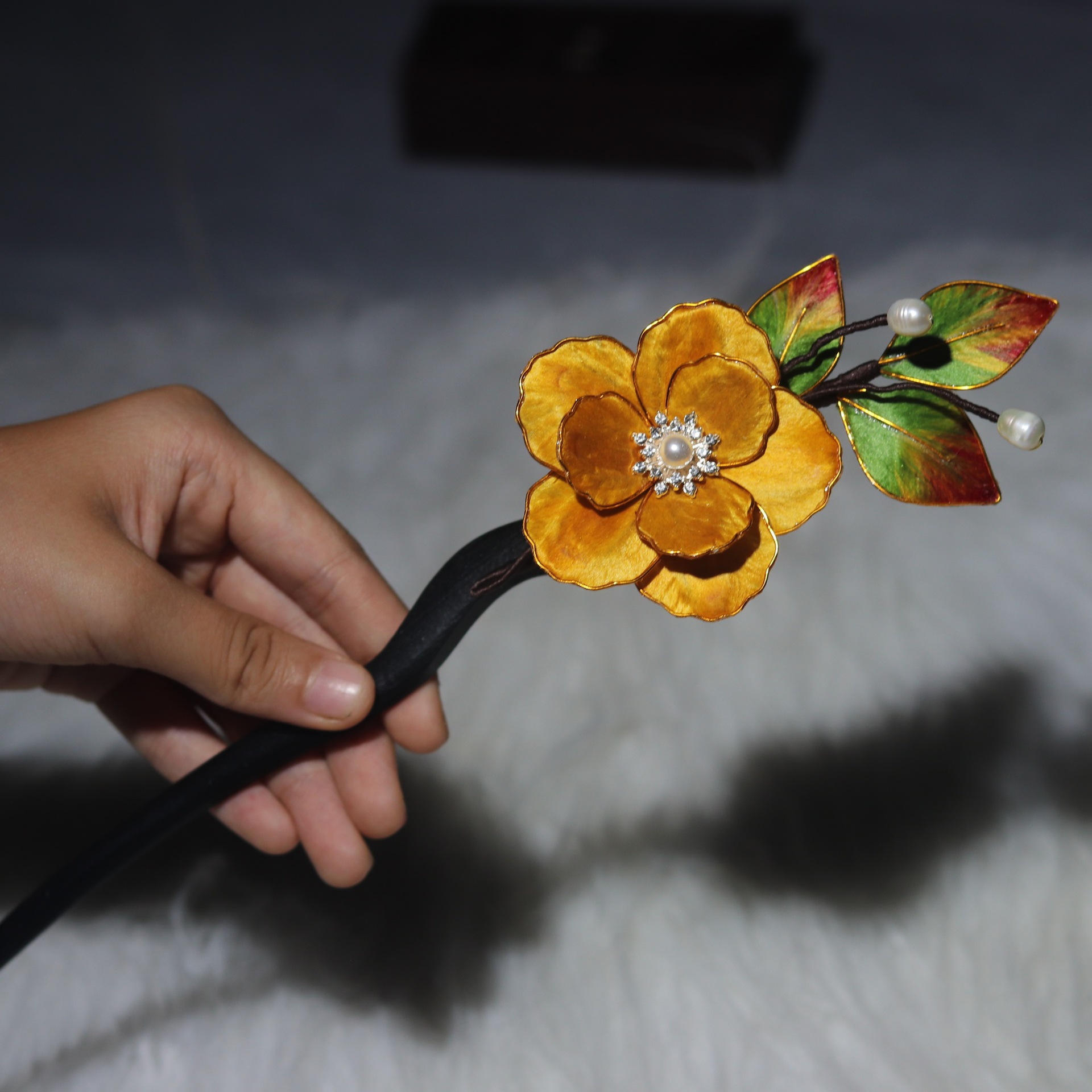 非遗掐丝绒花发钗古风汉服蚕丝发簪黑檀木发簪旗袍发饰