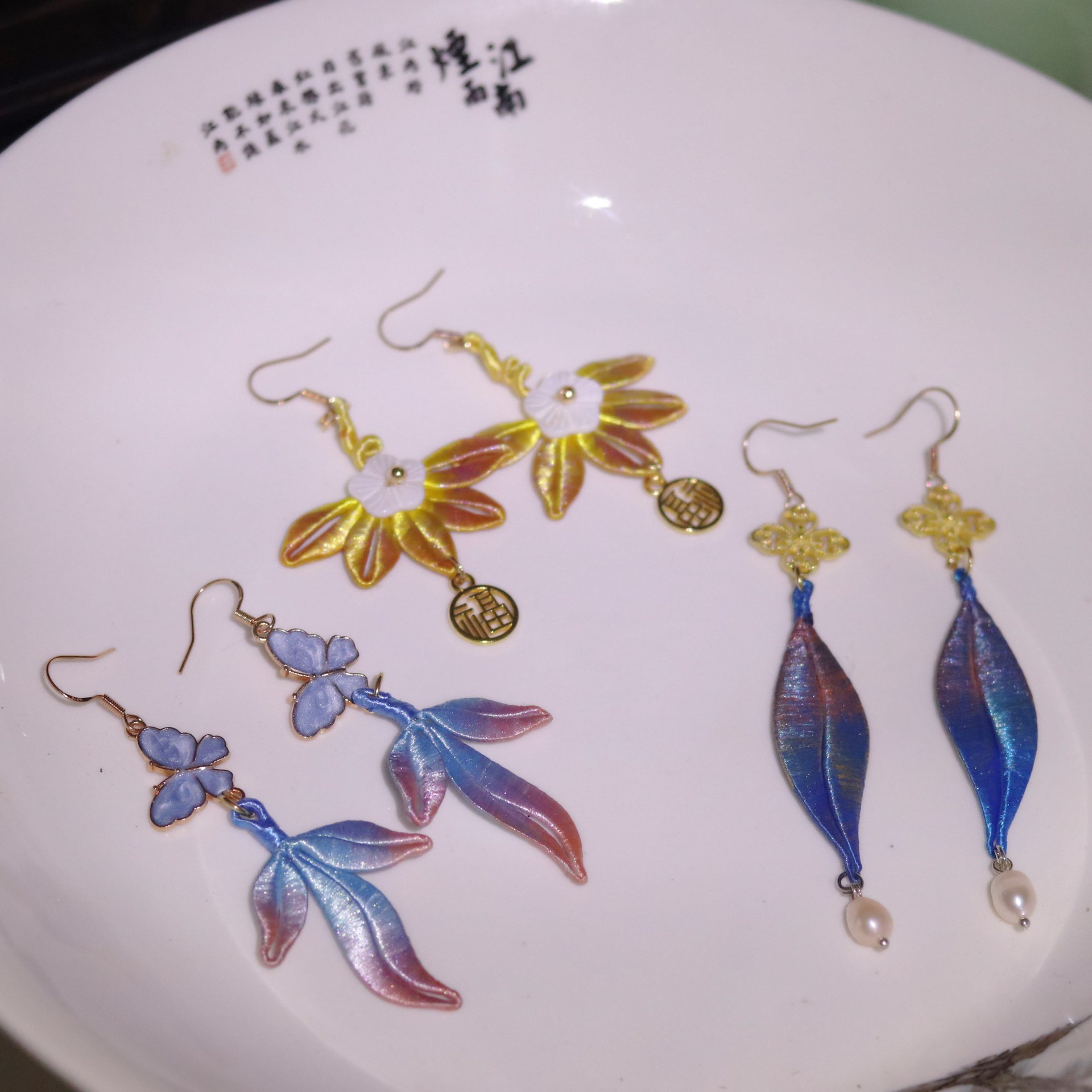 国风古风汉服耳饰古装旗袍复古风配饰耳坠手工缠花珍珠耳环耳钩