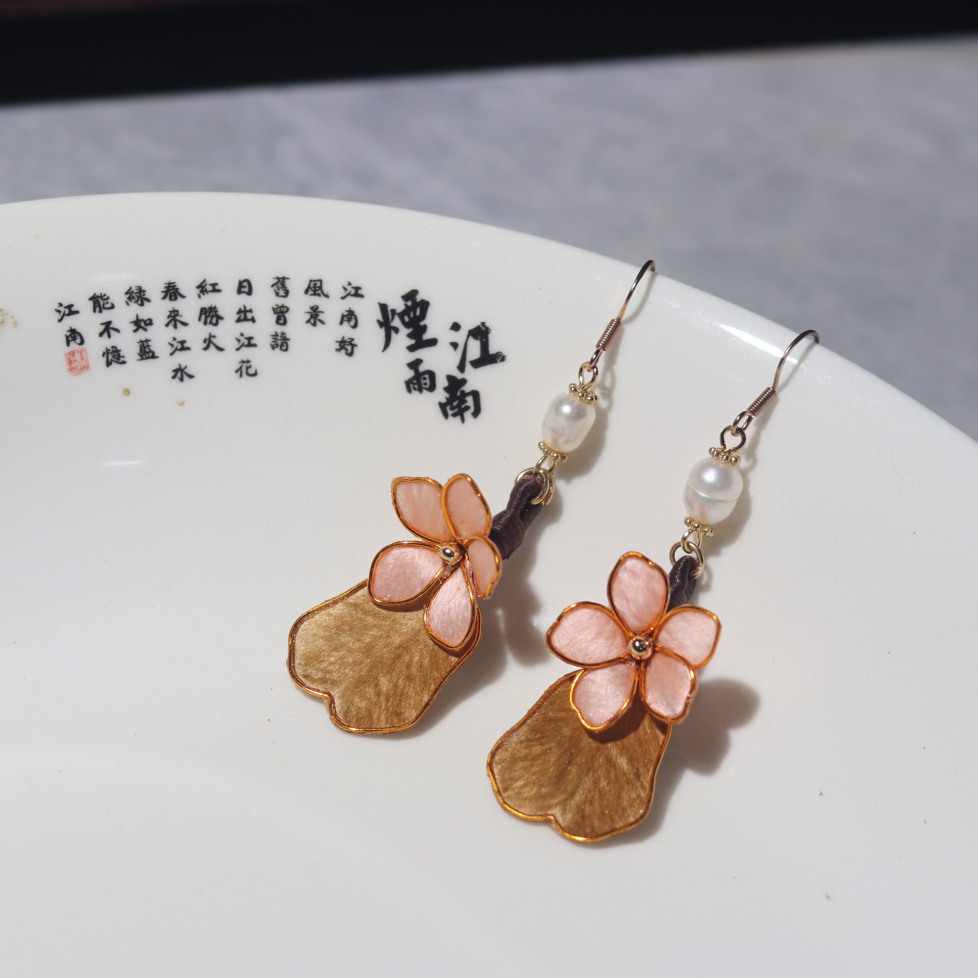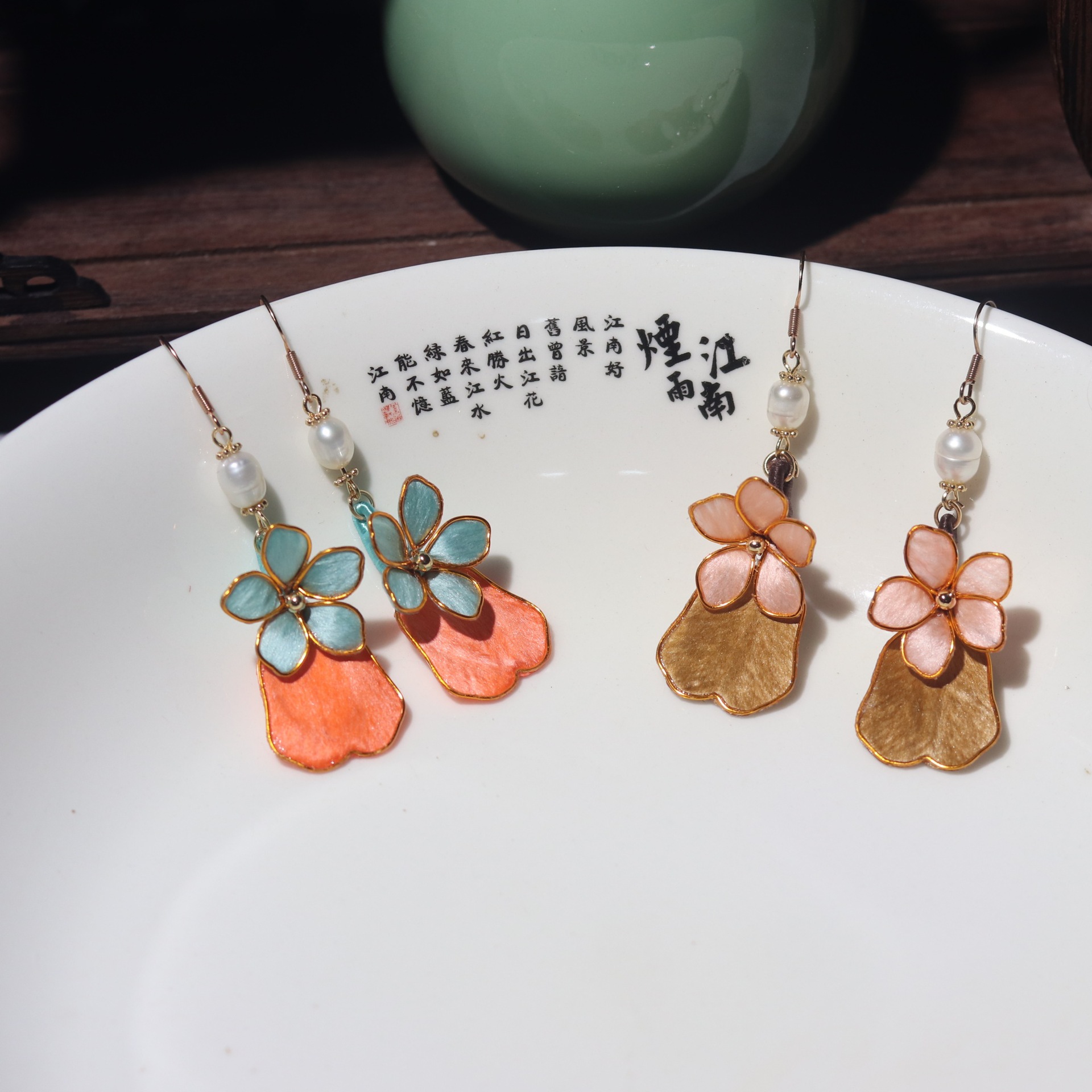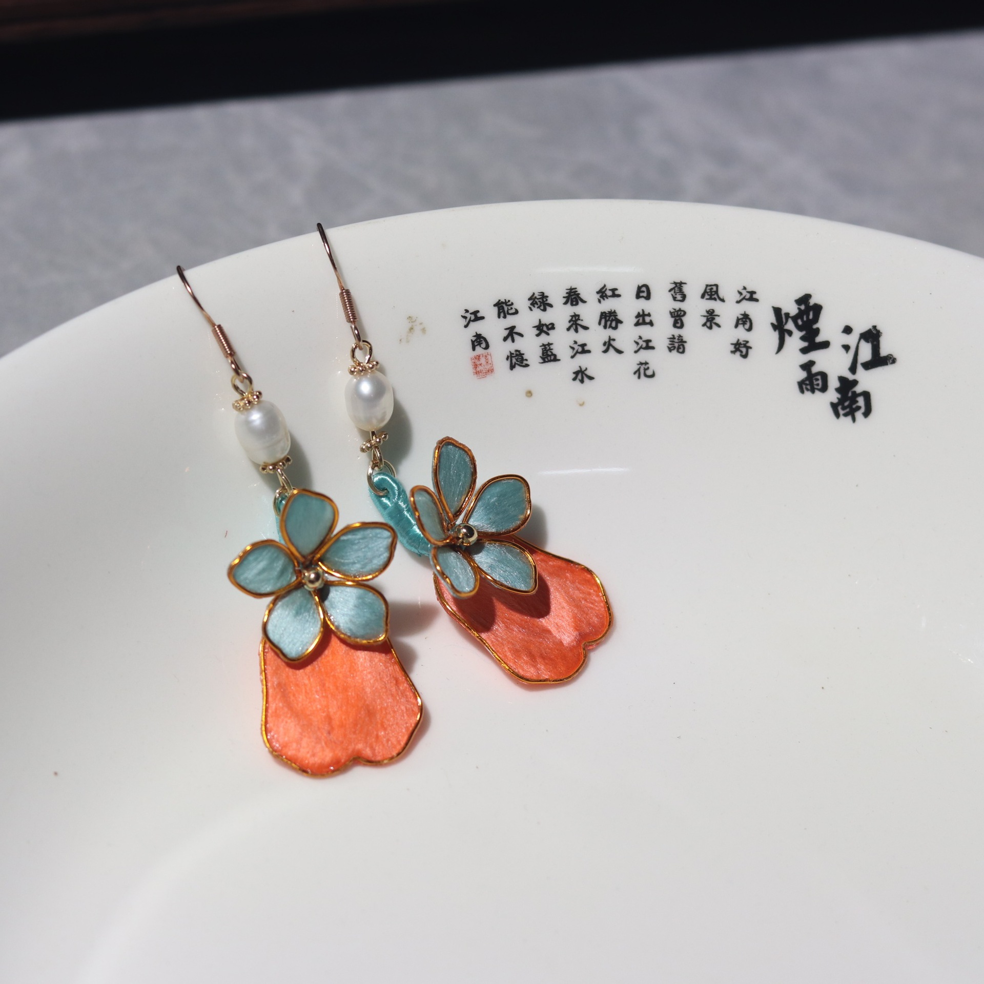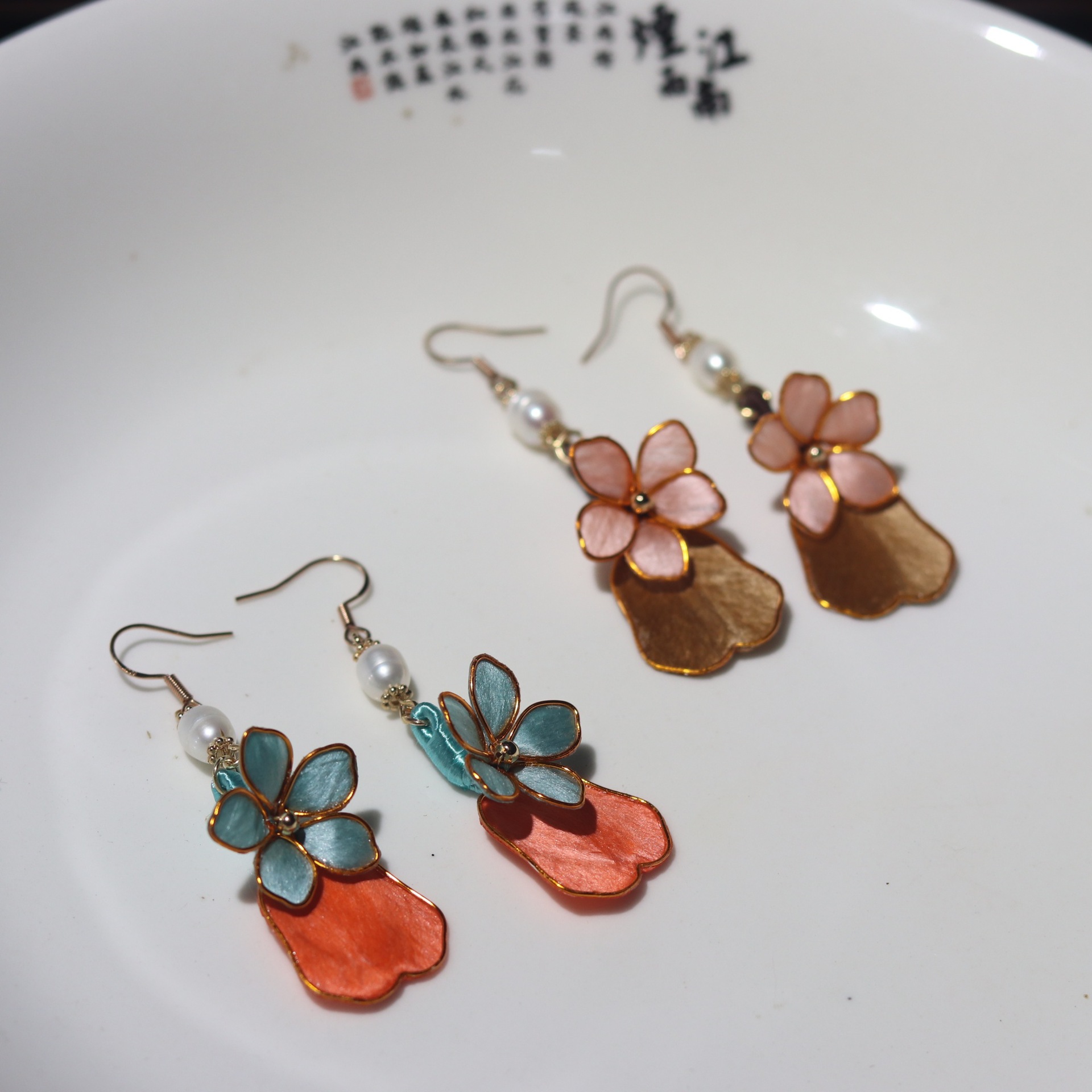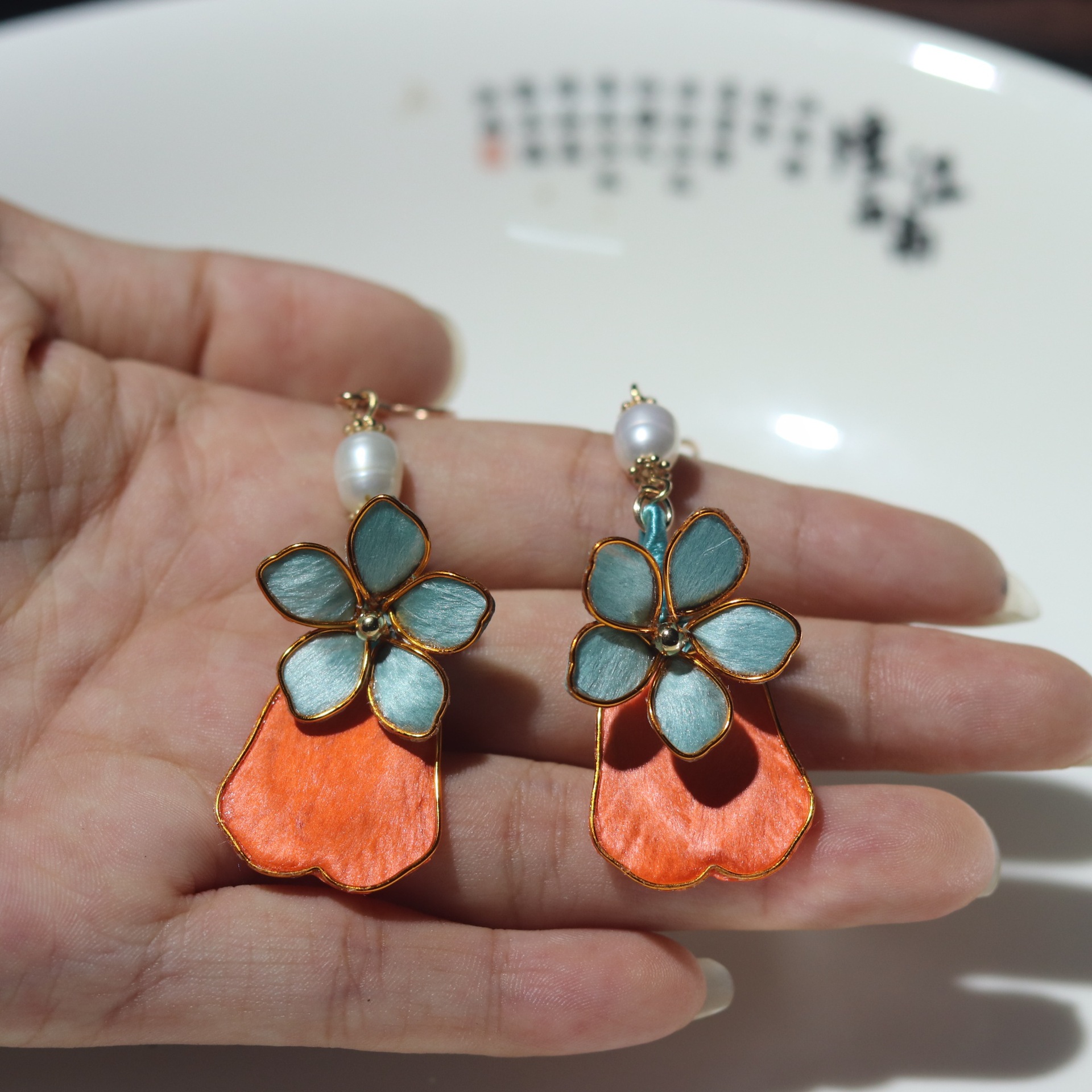 非遗掐丝绒花蚕丝仿点翠耳环复古气质感中式古典风耳饰品