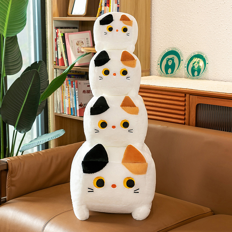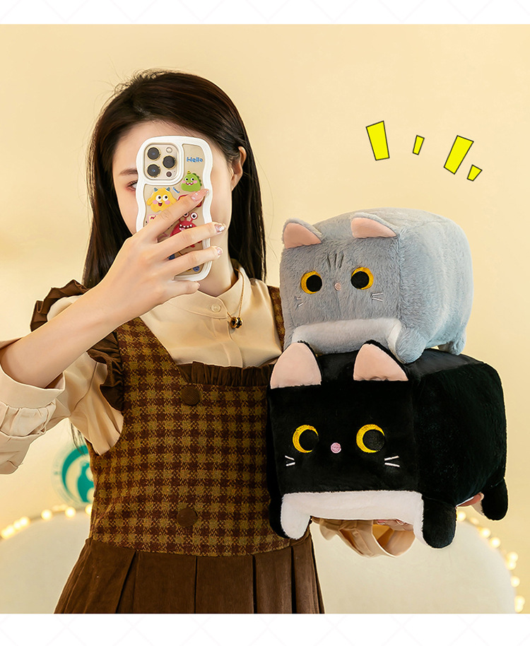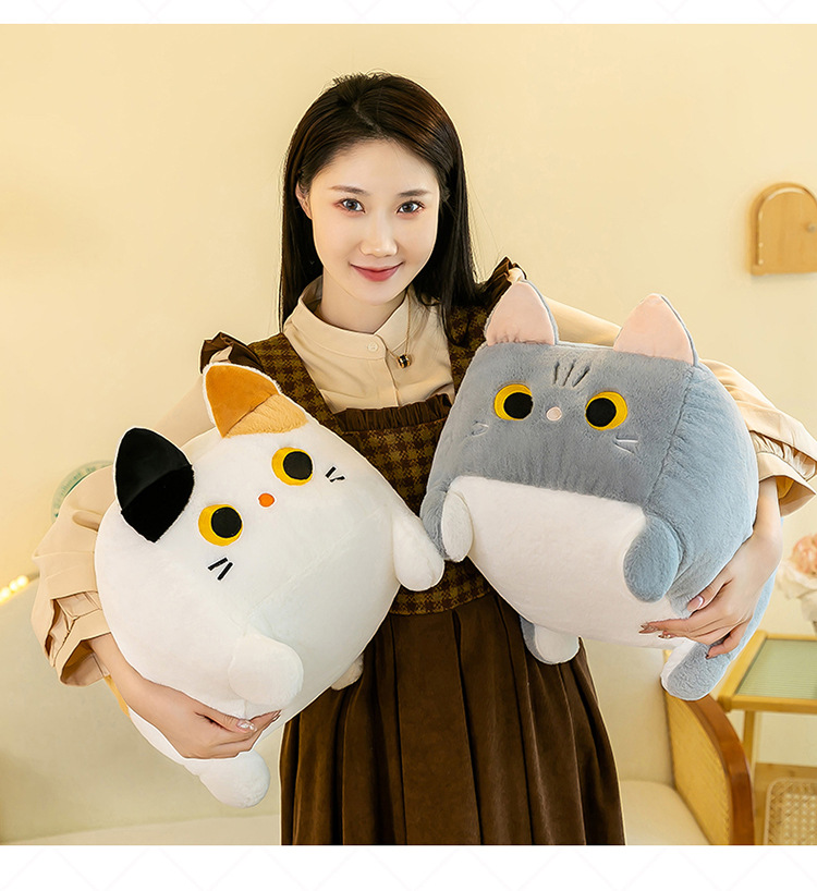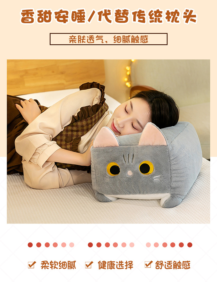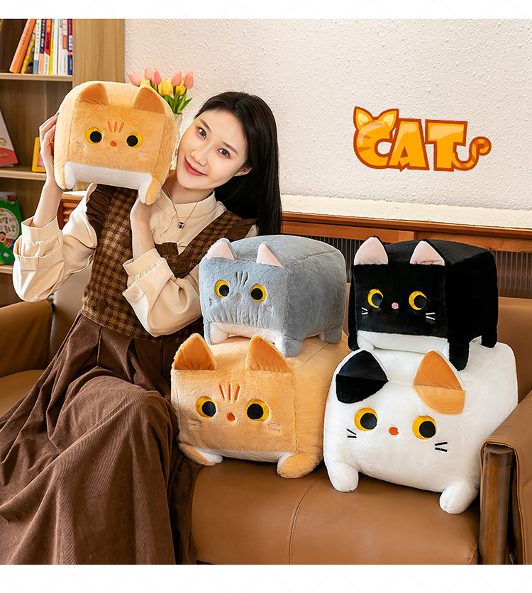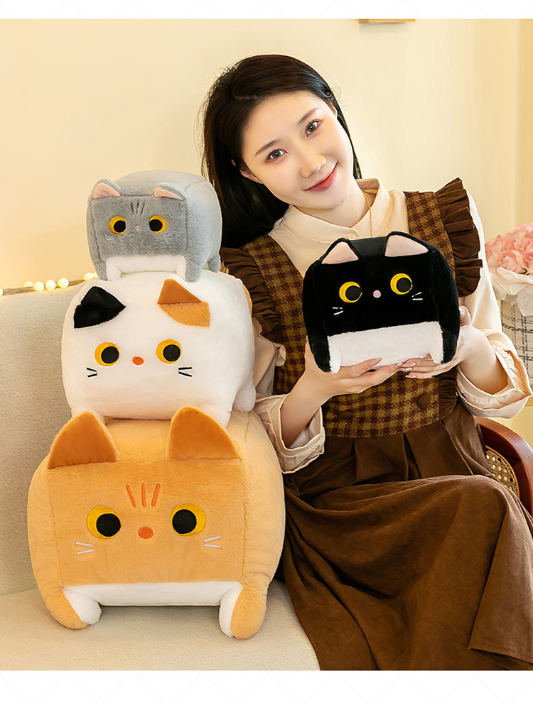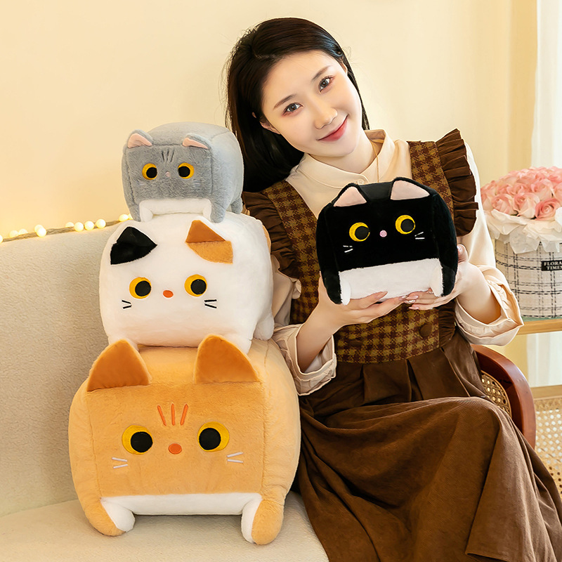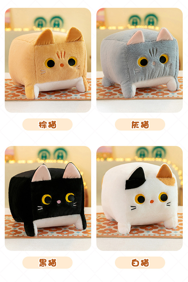 外贸新款毛绒玩具方块猫咪公仔长条猫玩偶抱枕跨境代发儿童礼品物