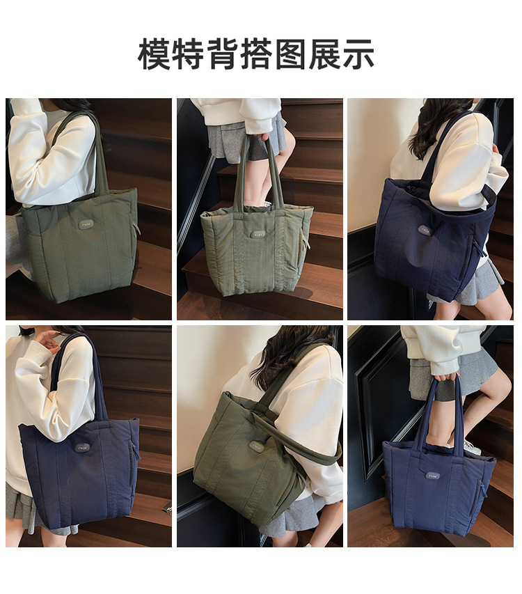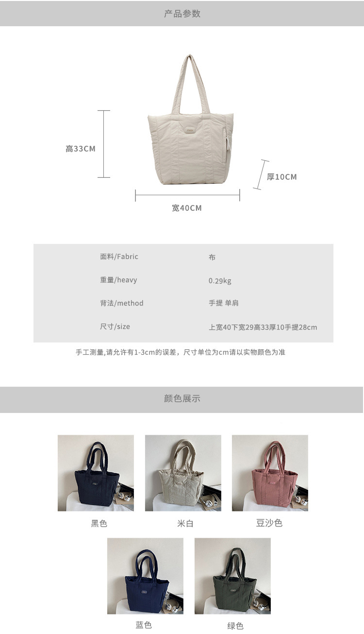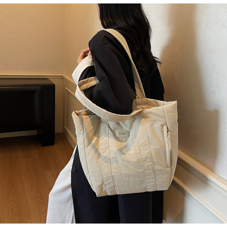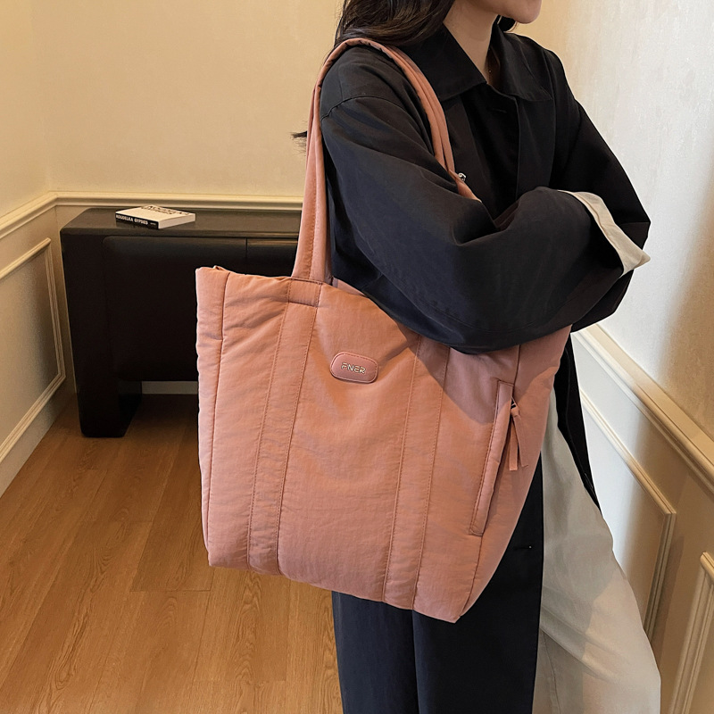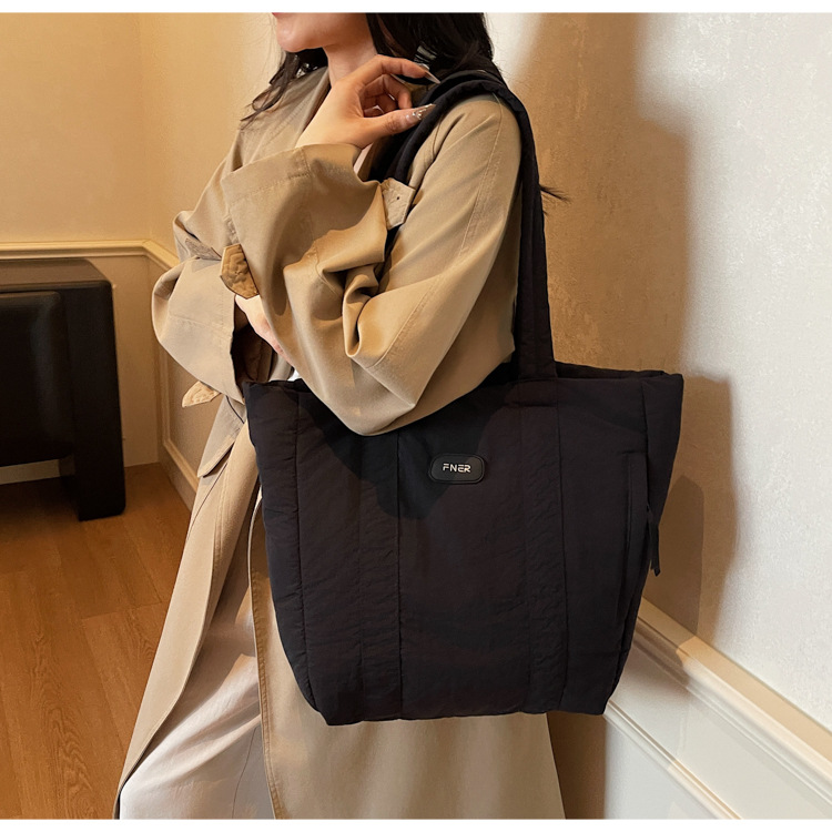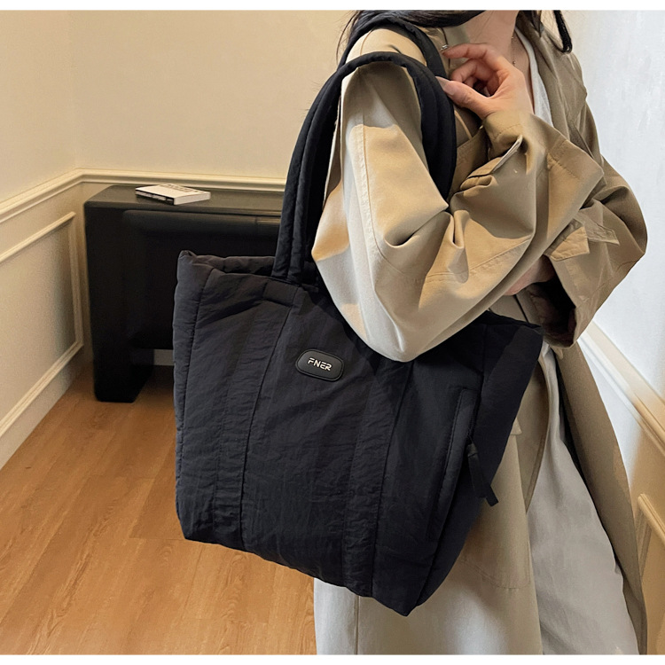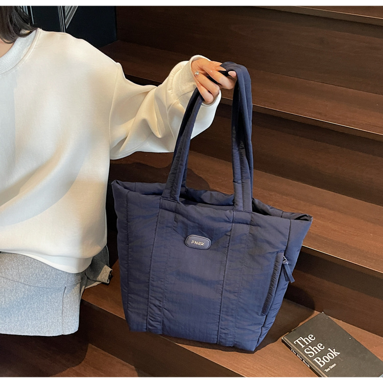 跨境简约托特包2025新款休闲手提棉服包包女通勤单肩包