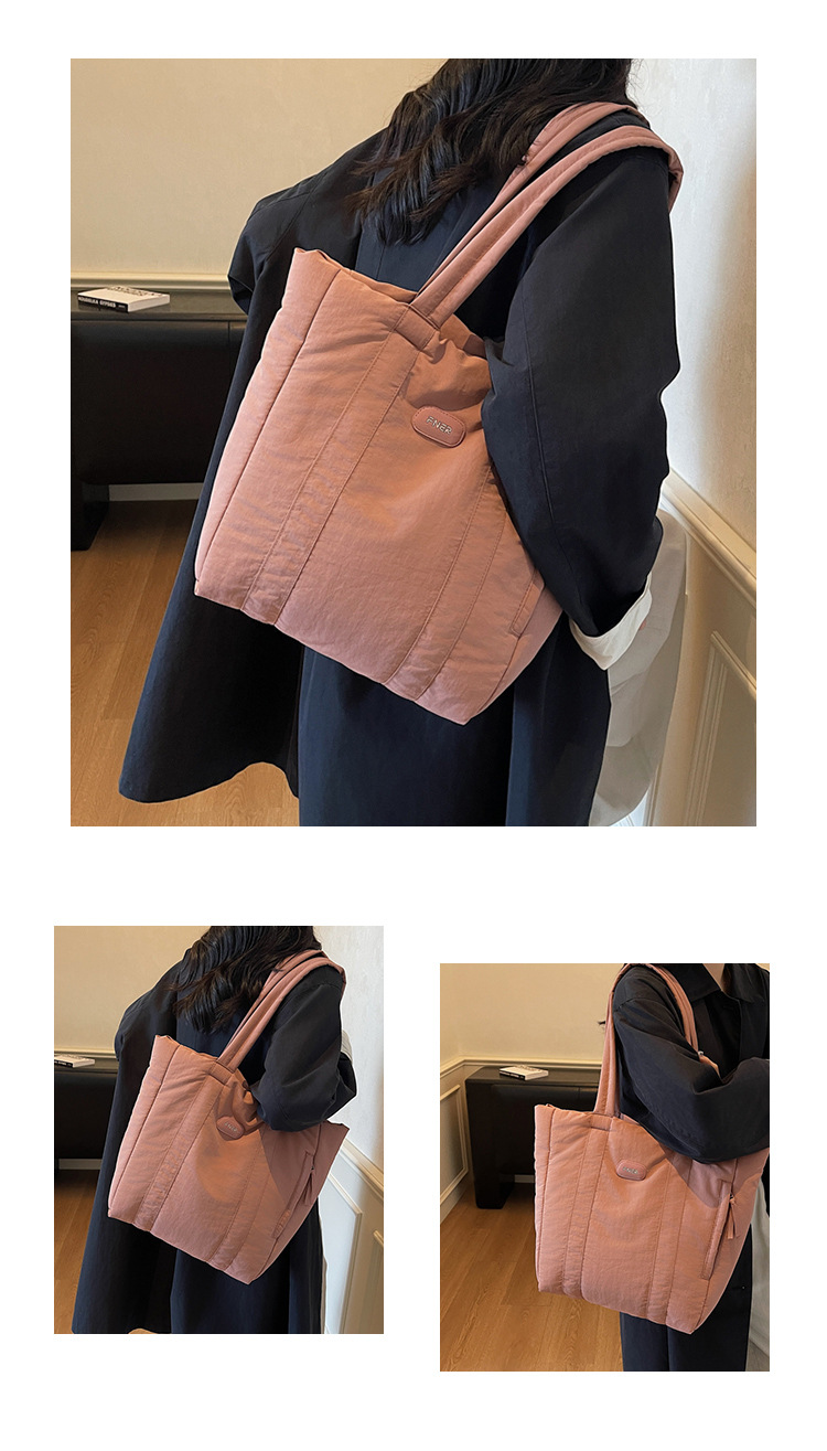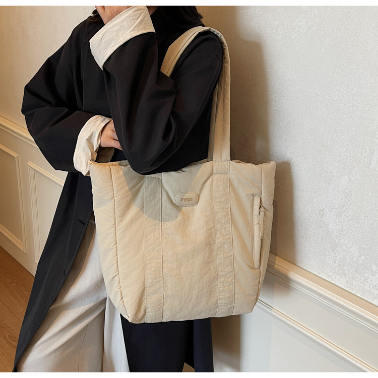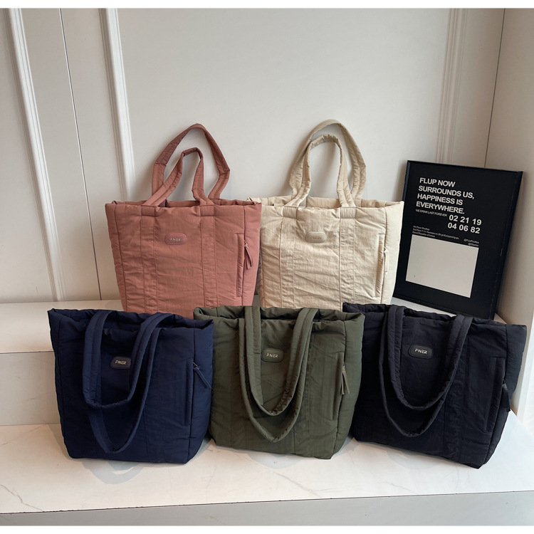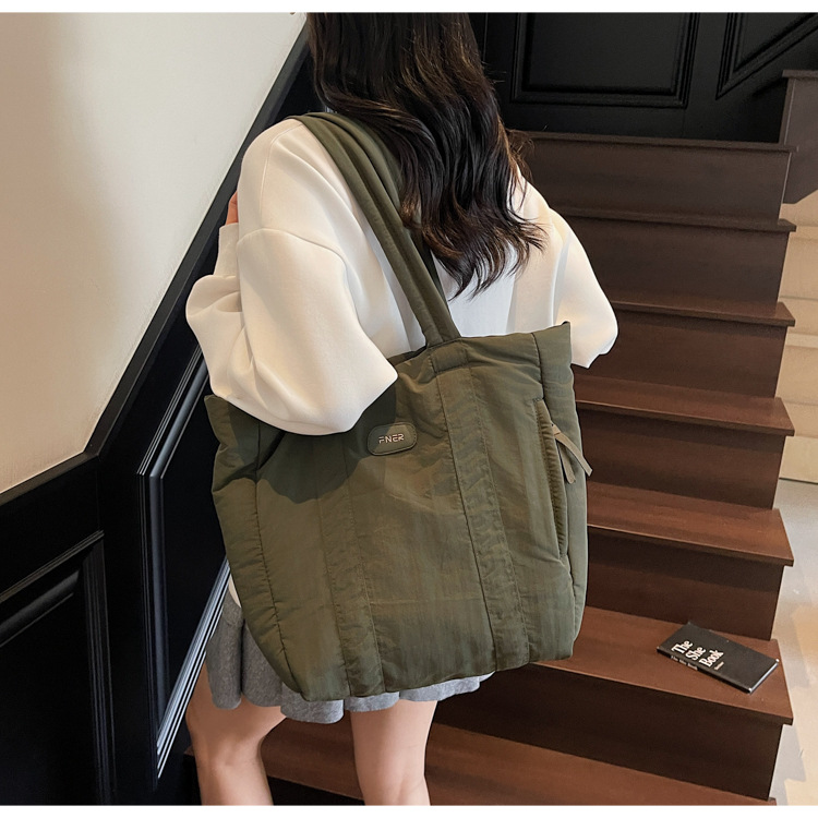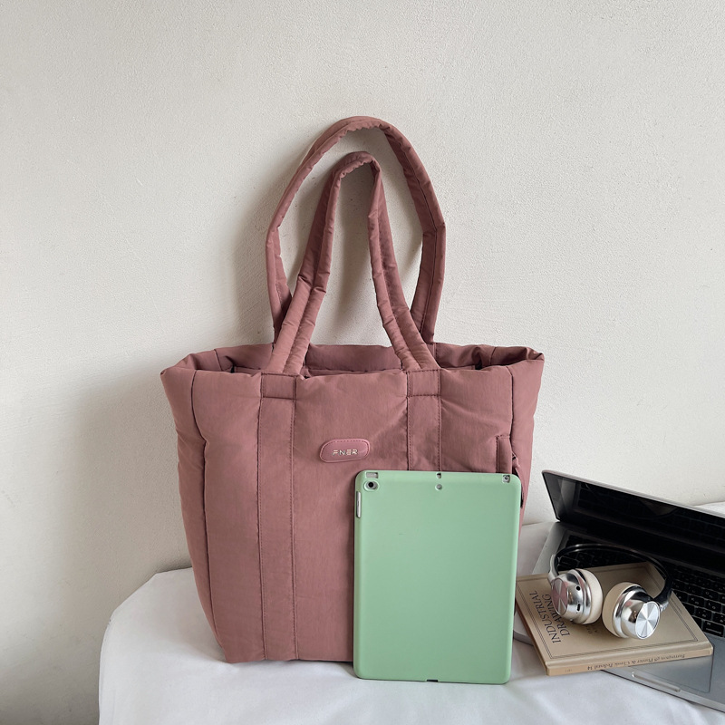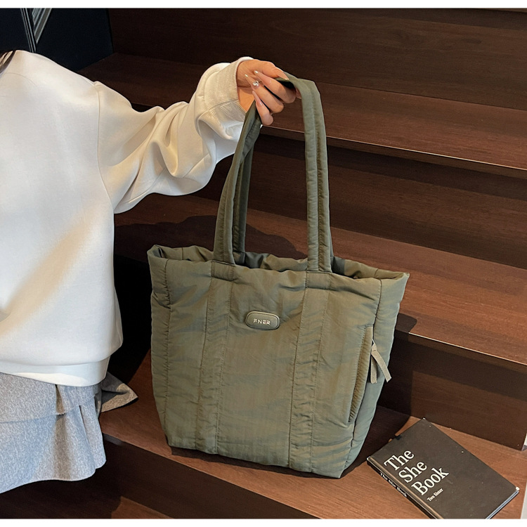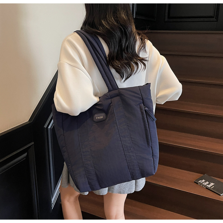 跨境简约托特包2025新款休闲手提棉服包包女通勤单肩包