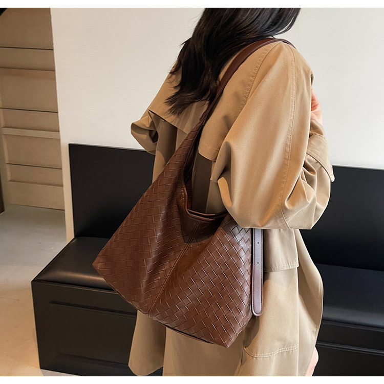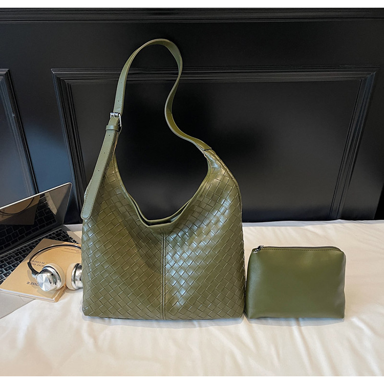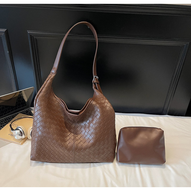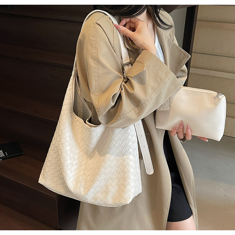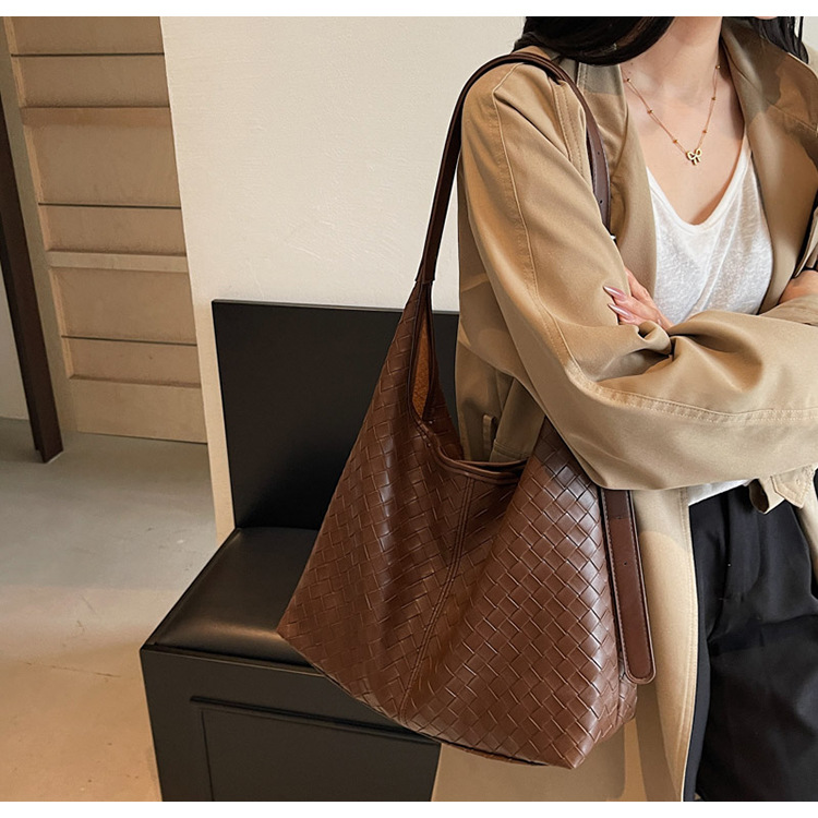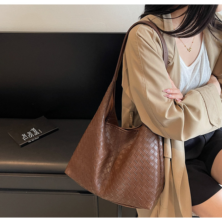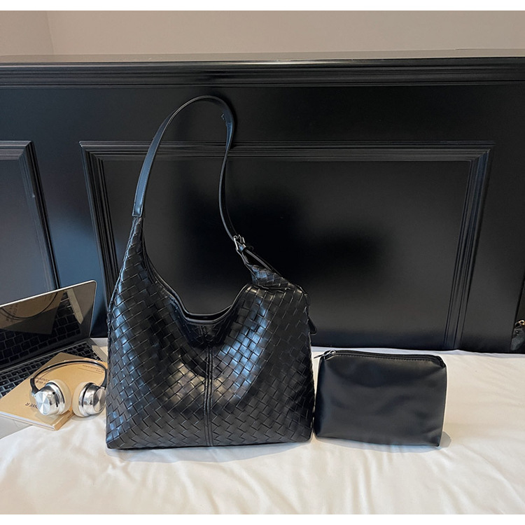 新款托特包PU子母包通勤时尚单肩包编织设计斜挎包女包包