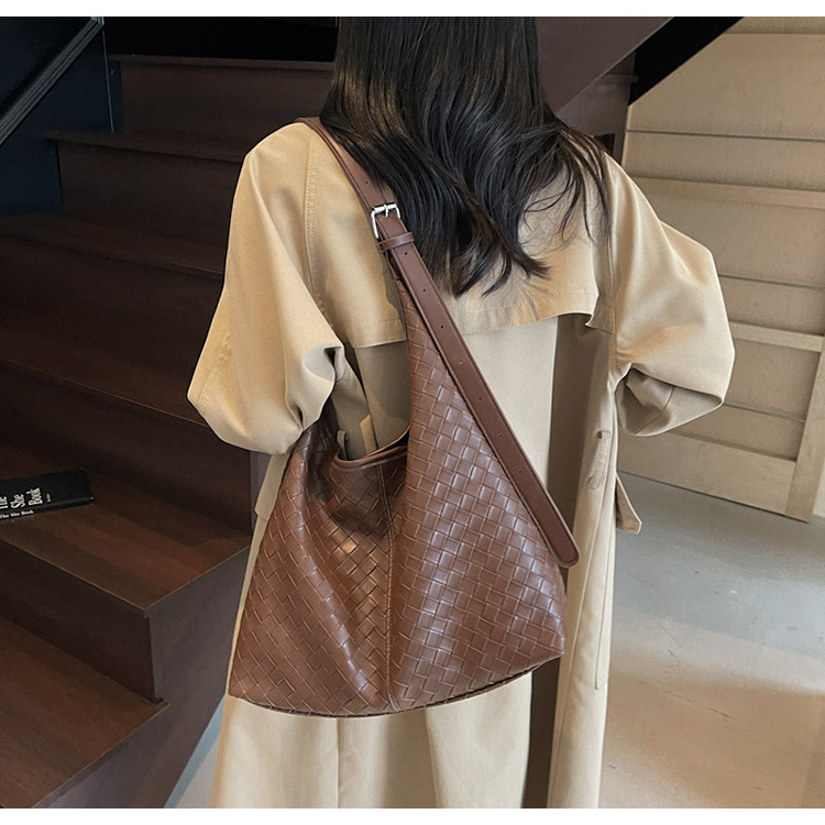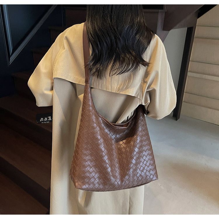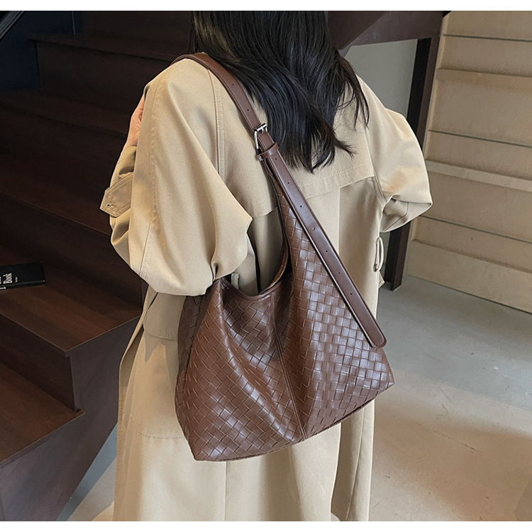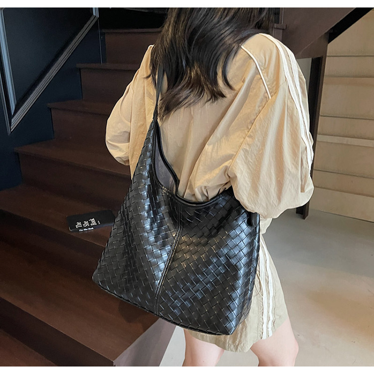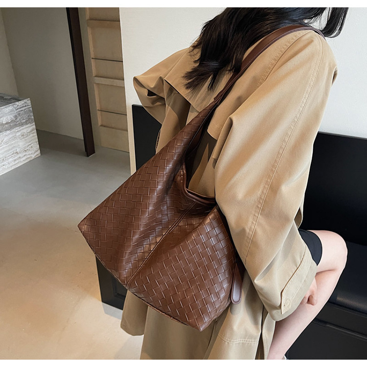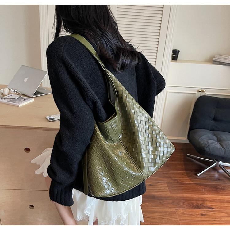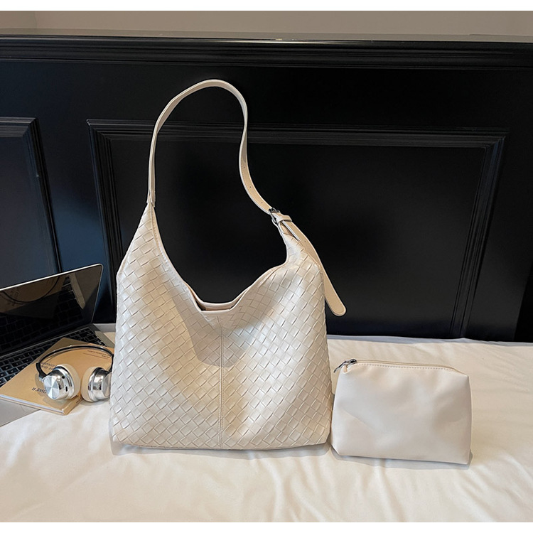 新款托特包PU子母包通勤时尚单肩包编织设计斜挎包女包包