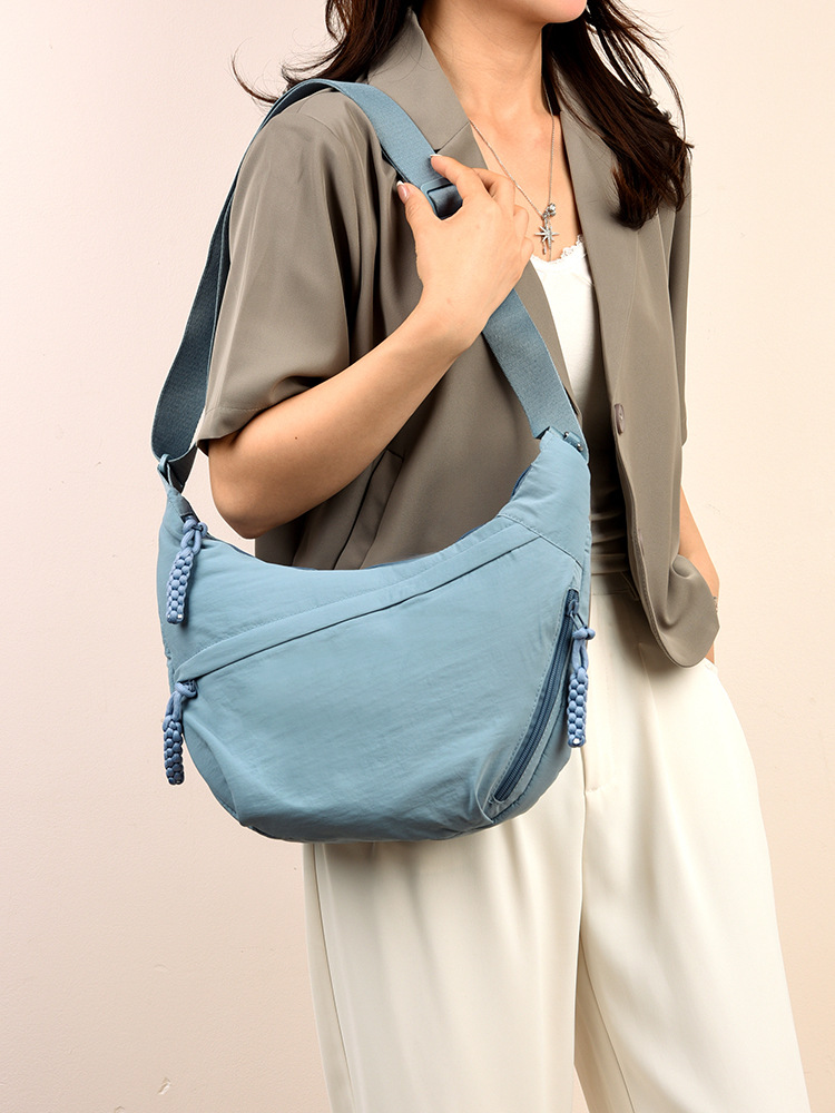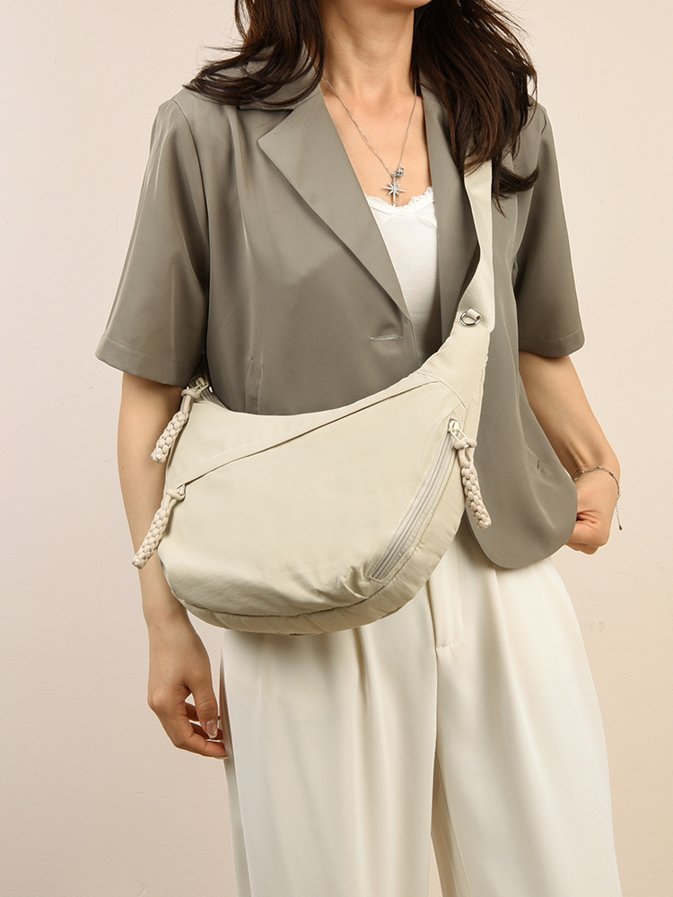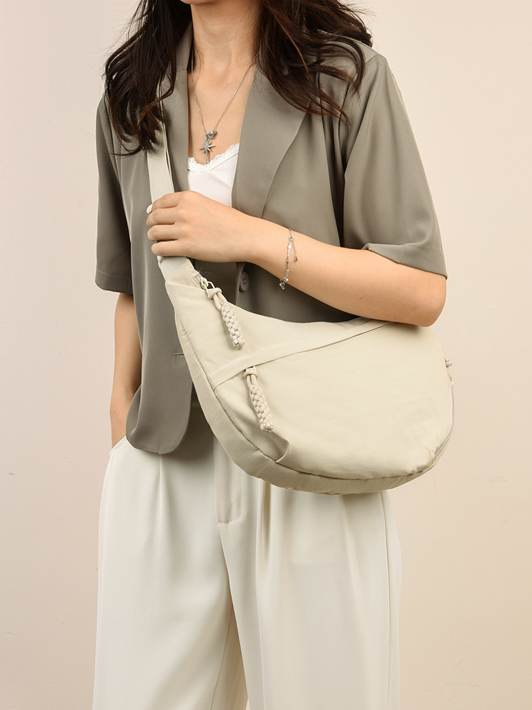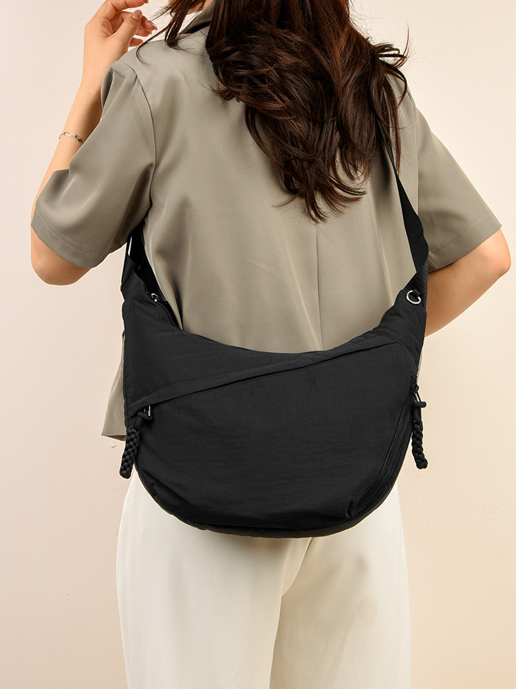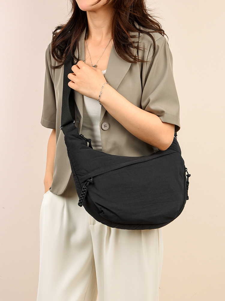 跨境日系简约斜挎包女新款小挎包纯色时尚单肩包饺子包
