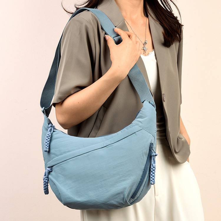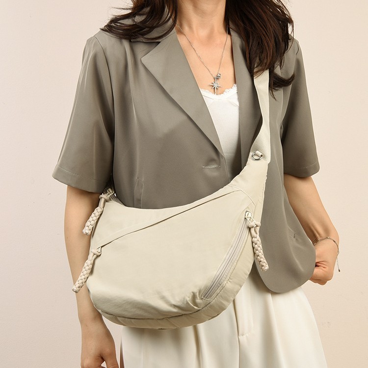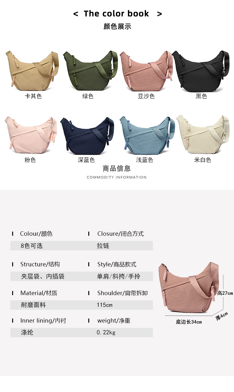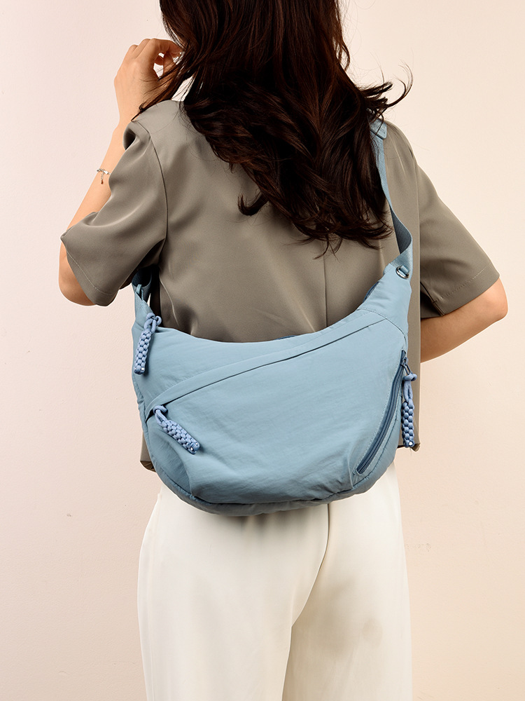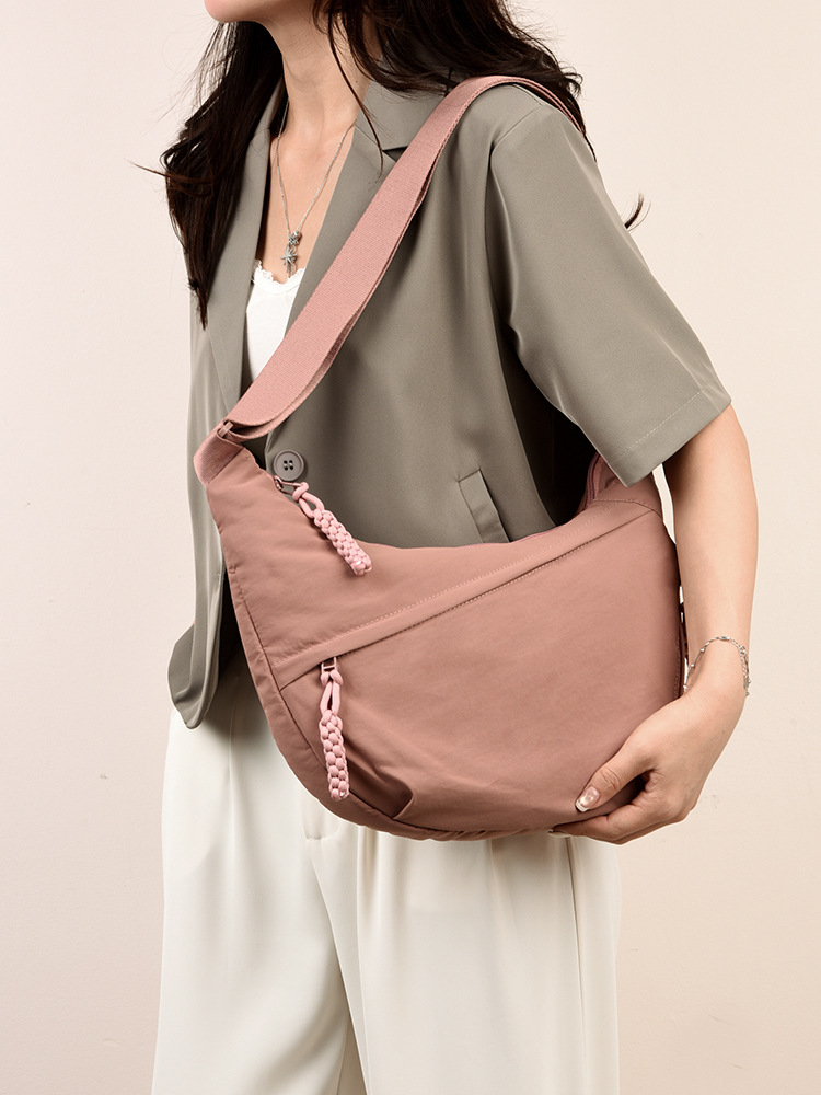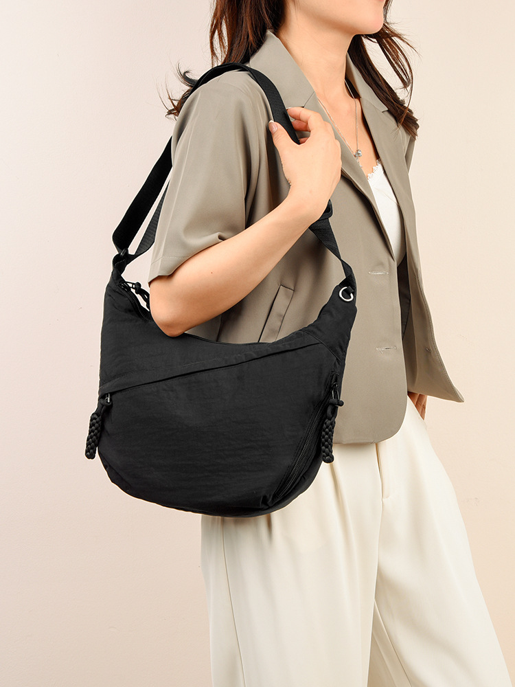 跨境日系简约斜挎包女新款小挎包纯色时尚单肩包饺子包