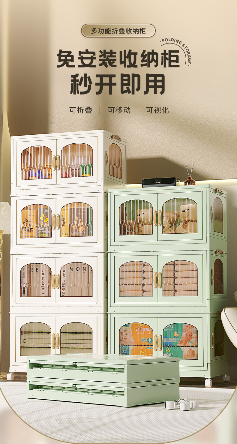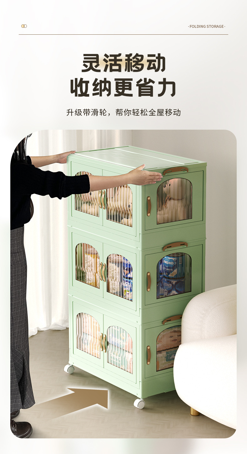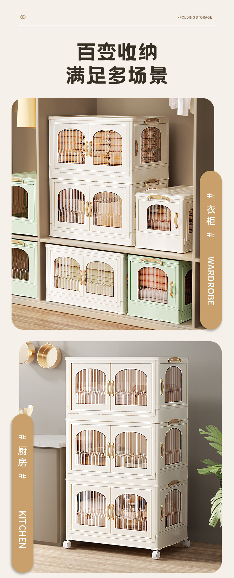 收纳柜家用大容量可折叠透明储物箱卧室防尘带轮子零食衣服收纳箱