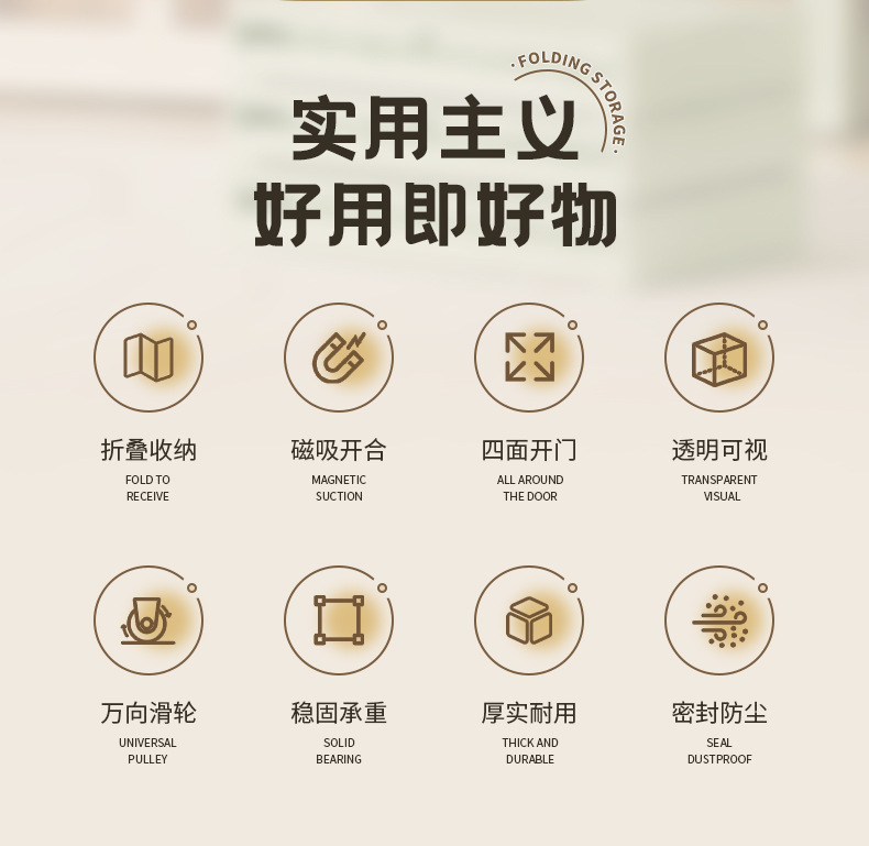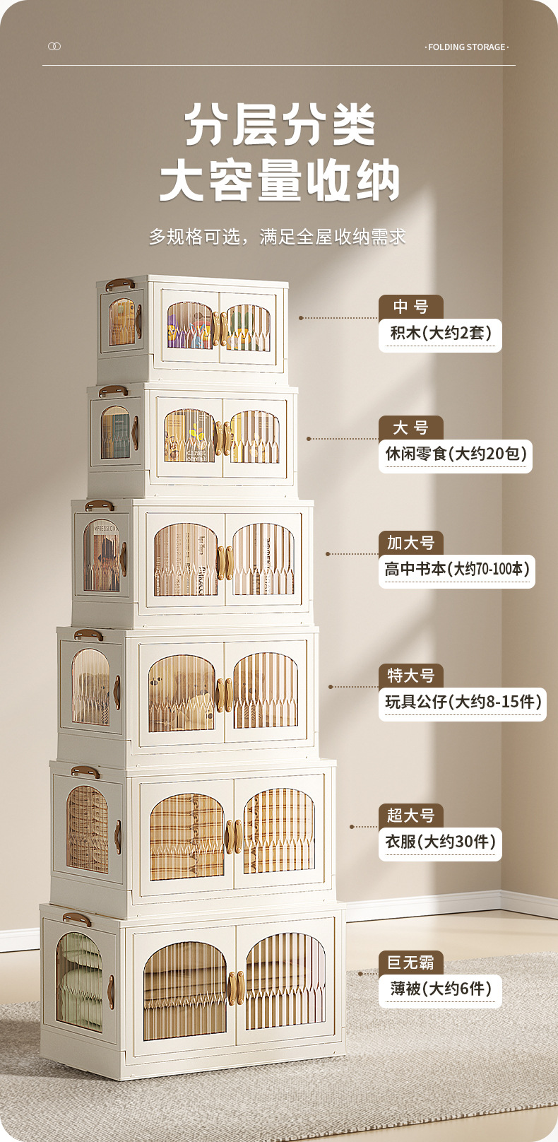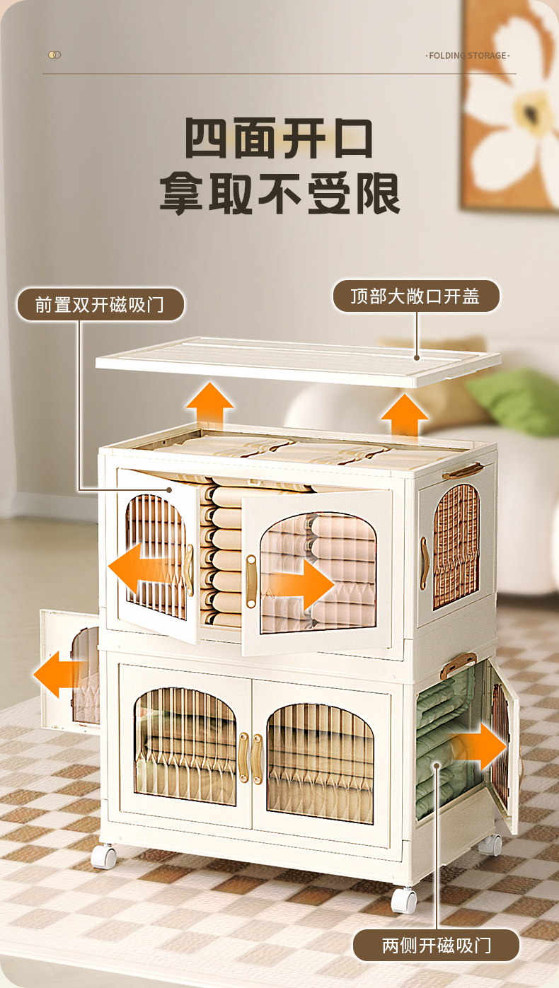 收纳柜家用大容量可折叠透明储物箱卧室防尘带轮子零食衣服收纳箱