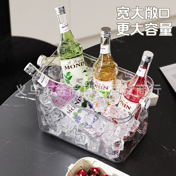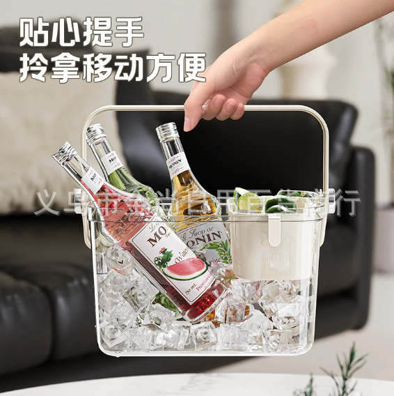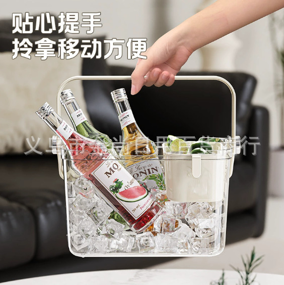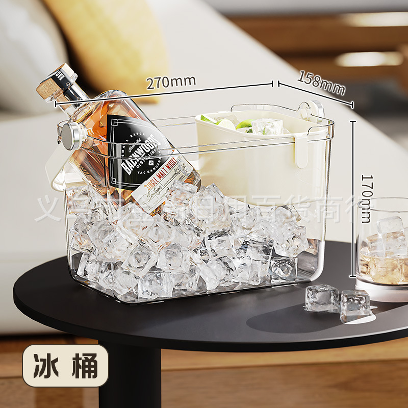 透明冰桶装冰块高颜值家用香槟啤酒桶冰块存放水桶杂物收纳篮