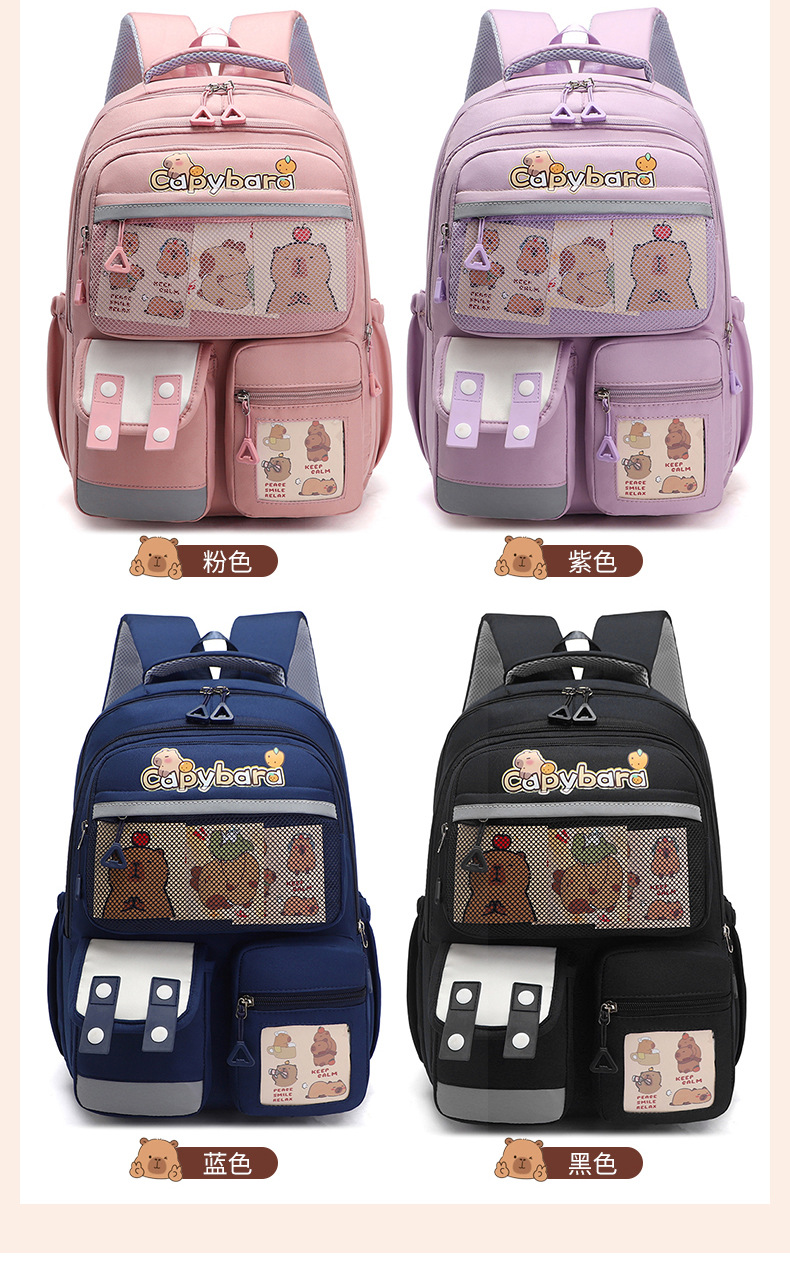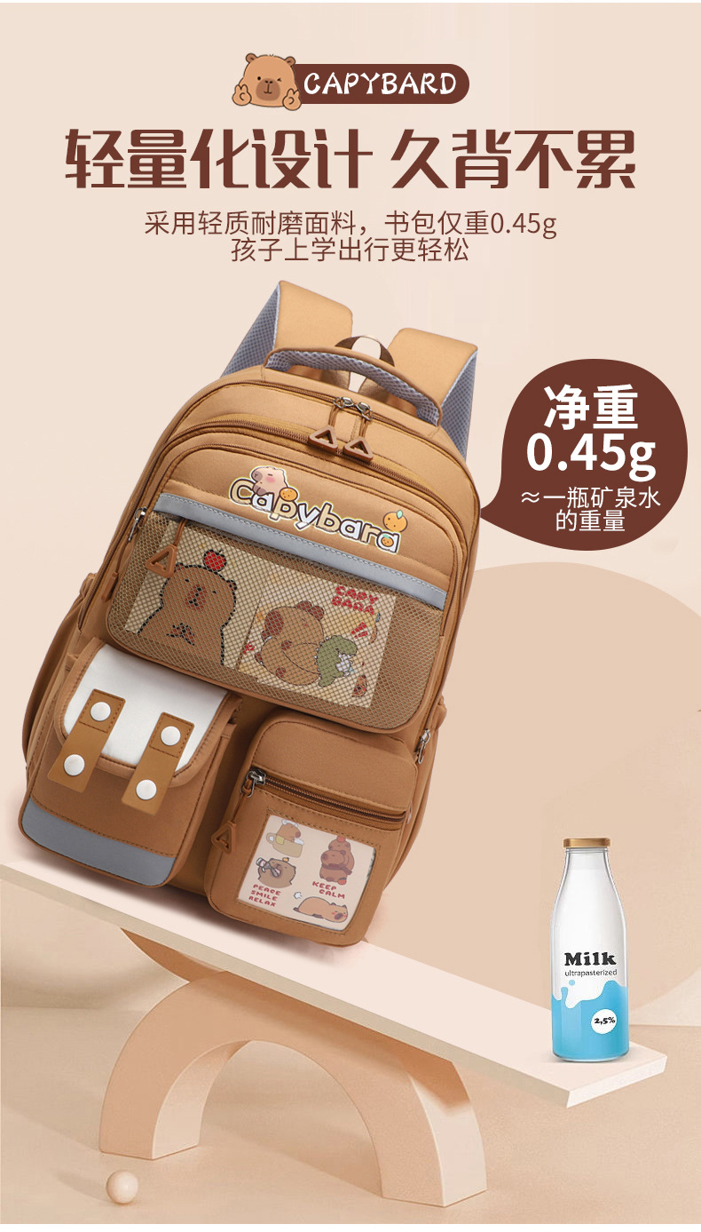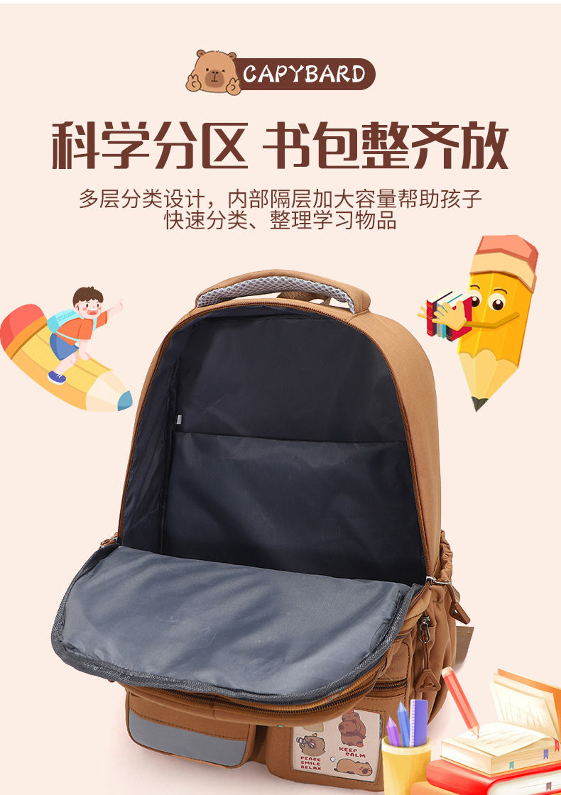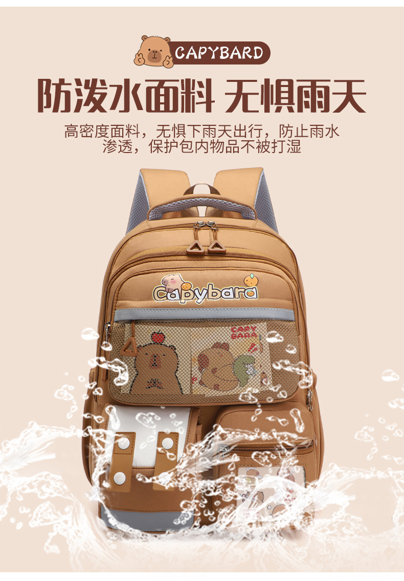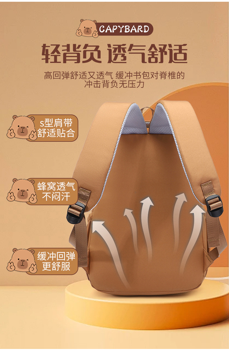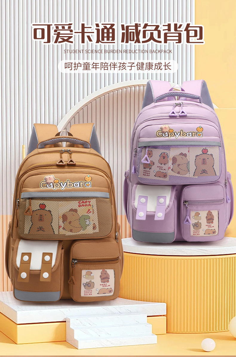 跨境外贸卡皮巴拉小学生书包1-3-6年级男女可爱水豚印花耐脏双肩