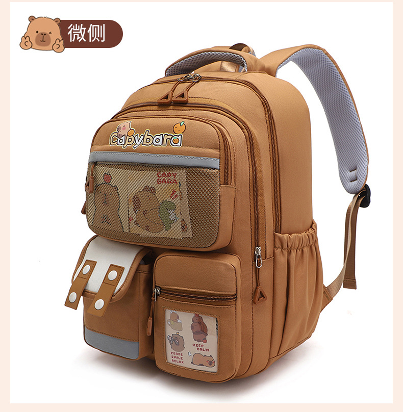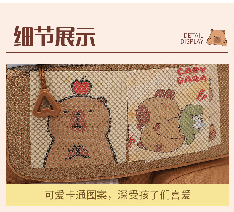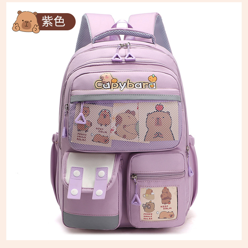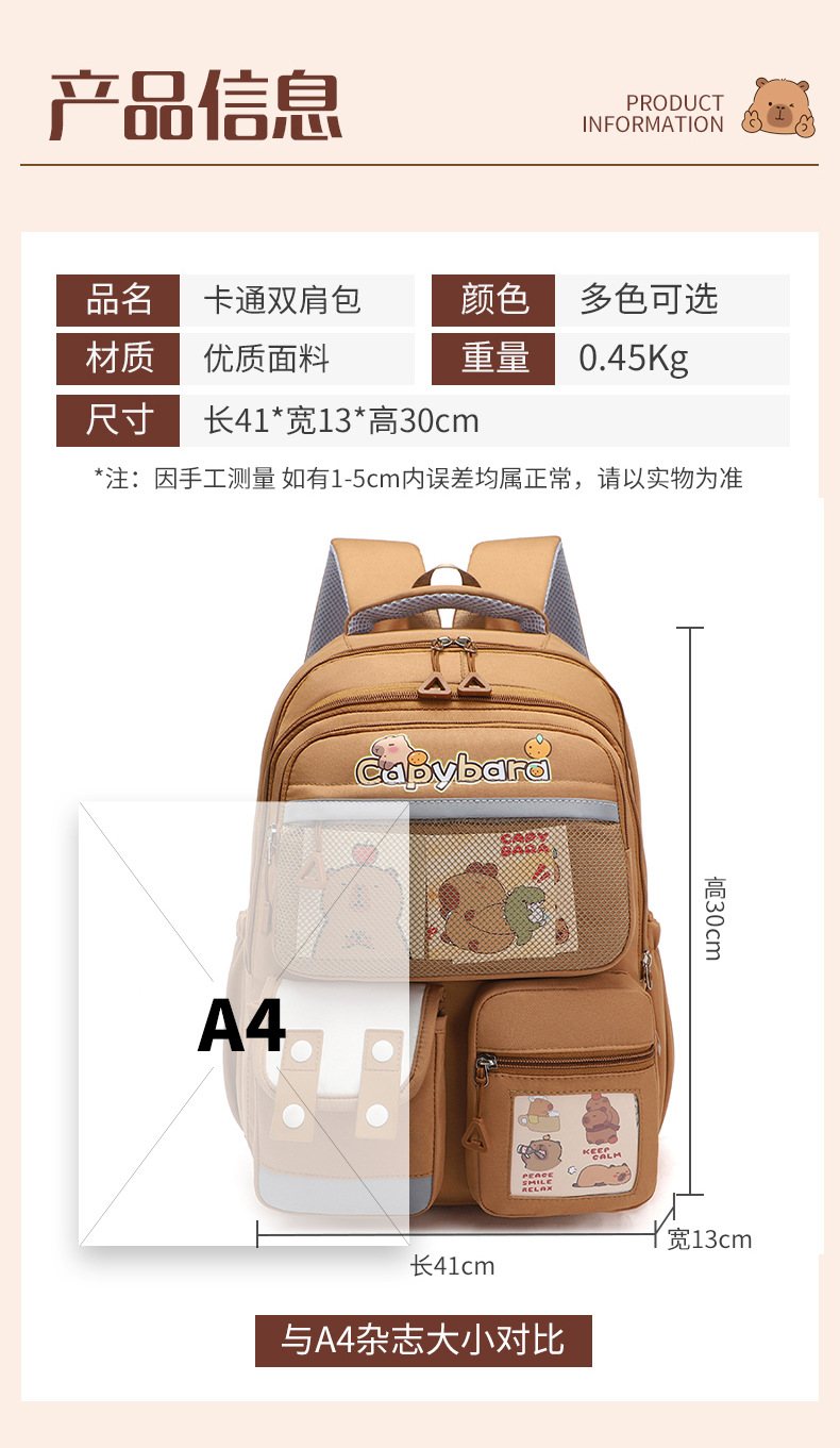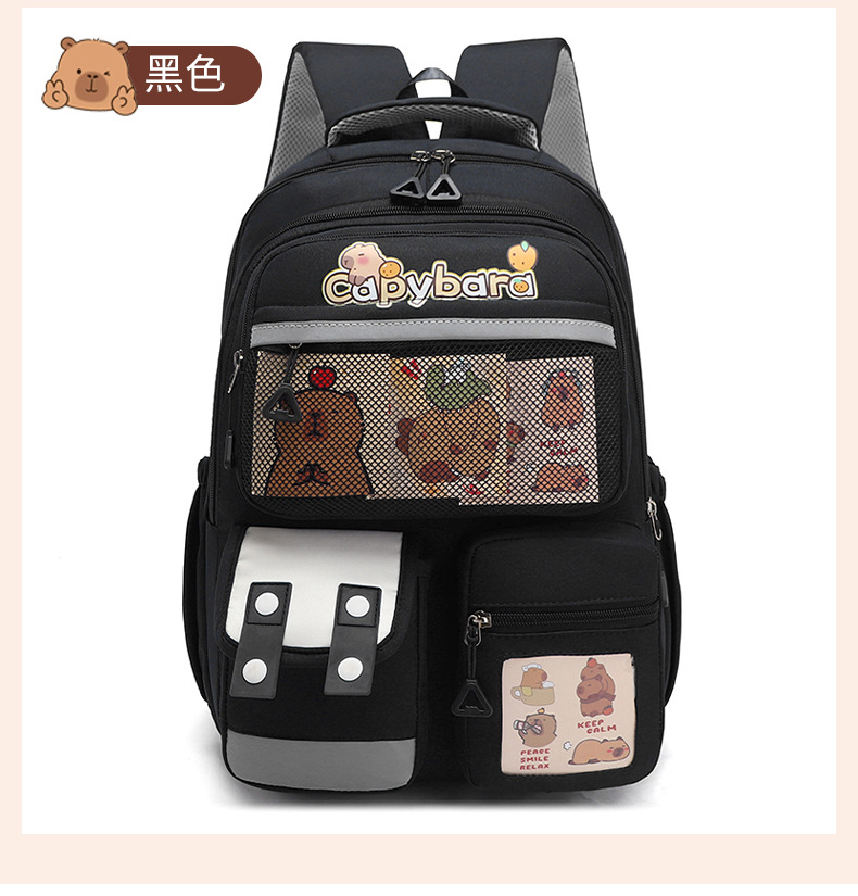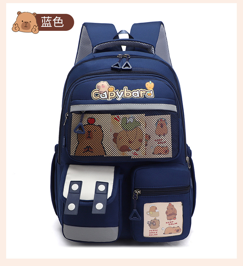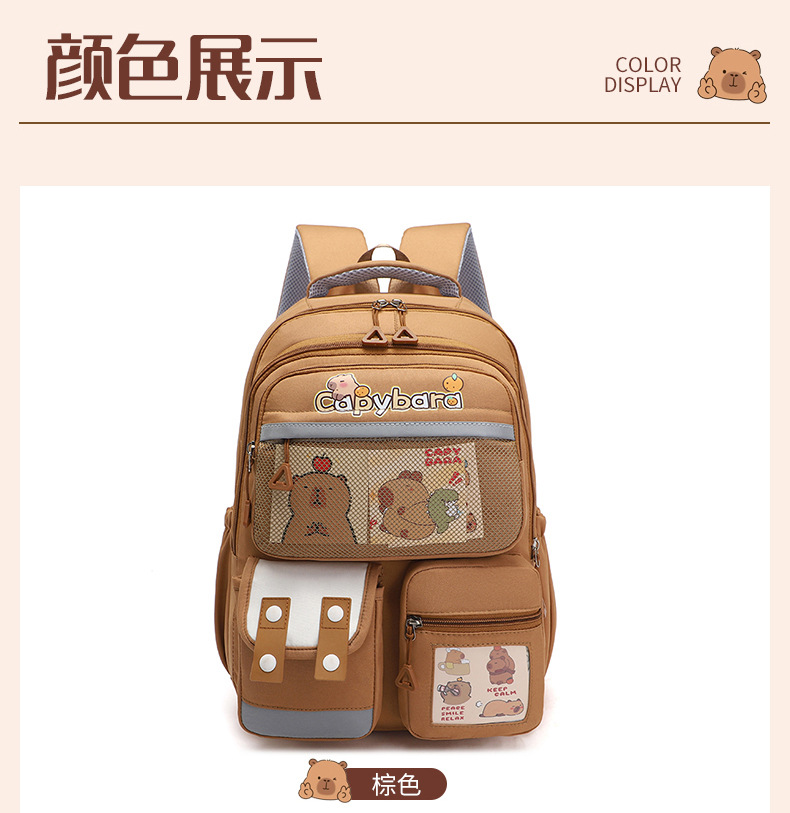 跨境外贸卡皮巴拉小学生书包1-3-6年级男女可爱水豚印花耐脏双肩