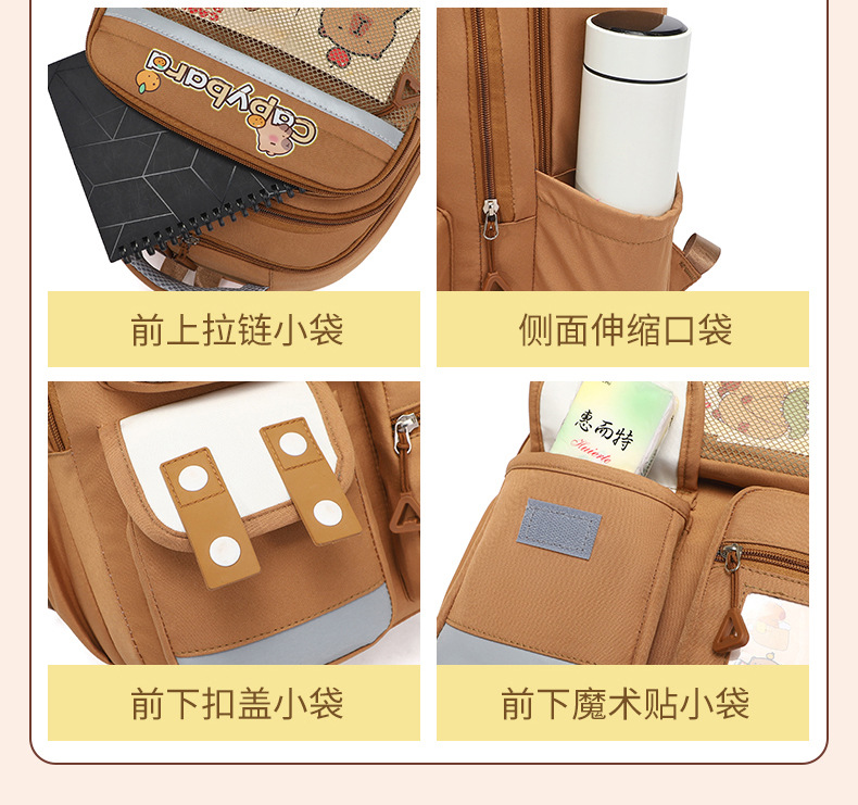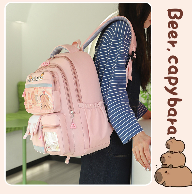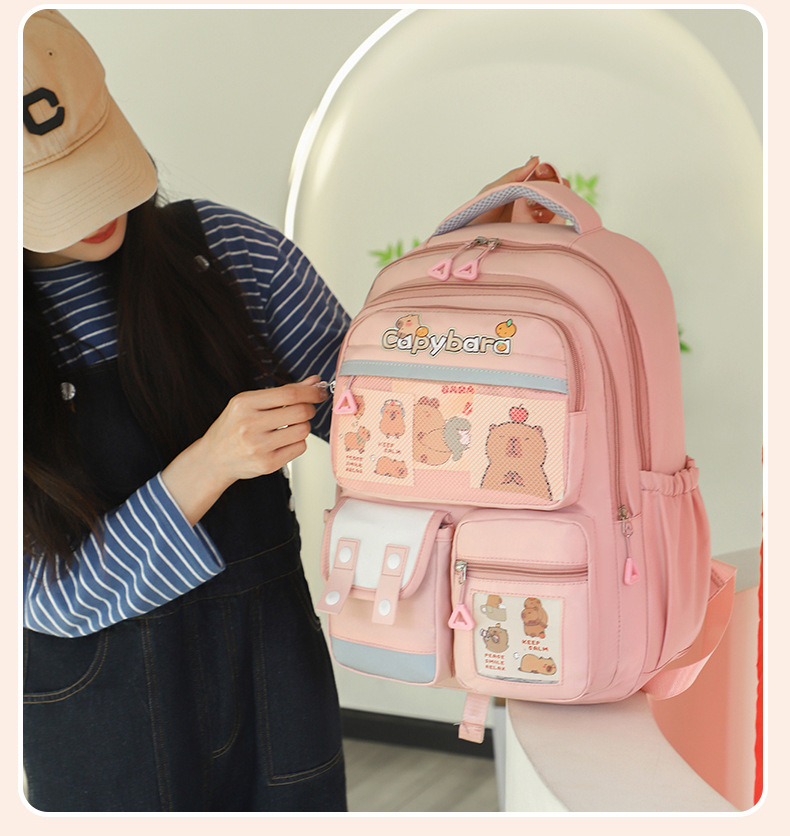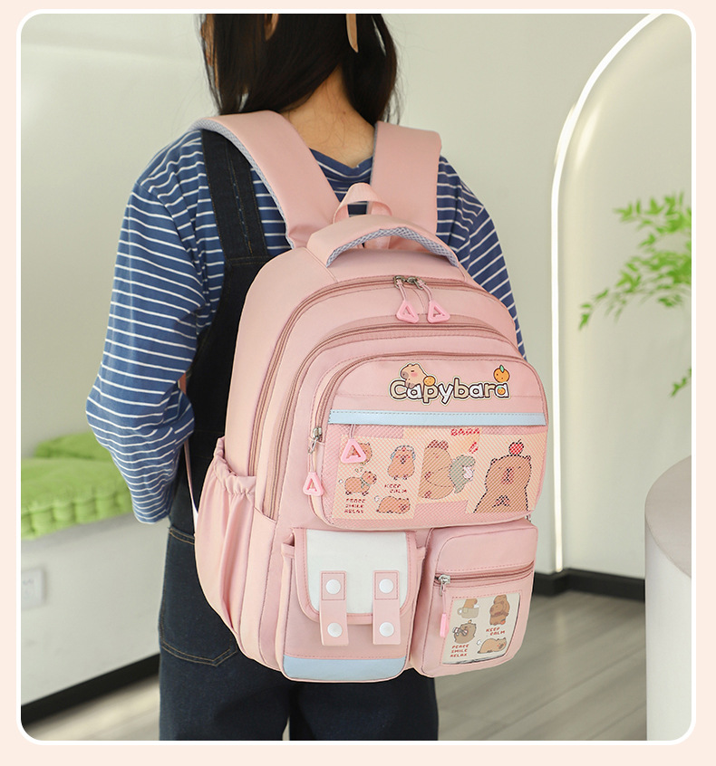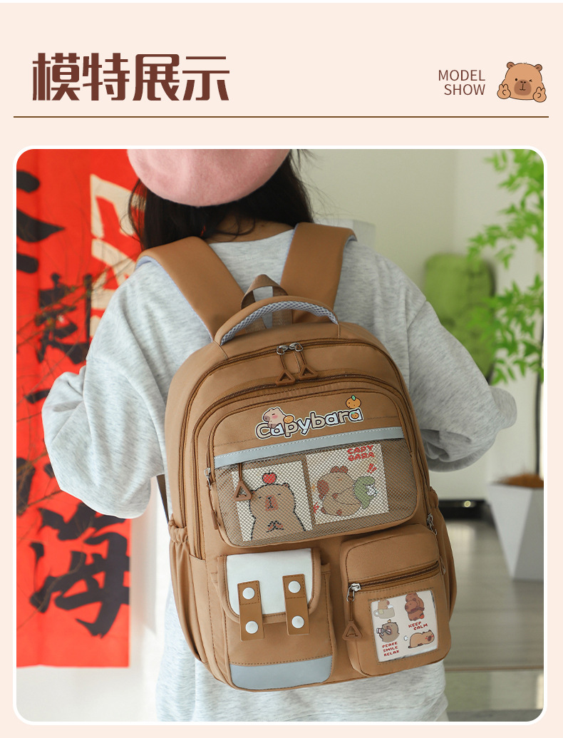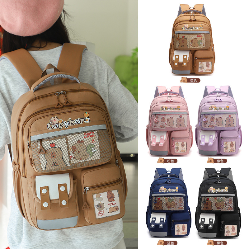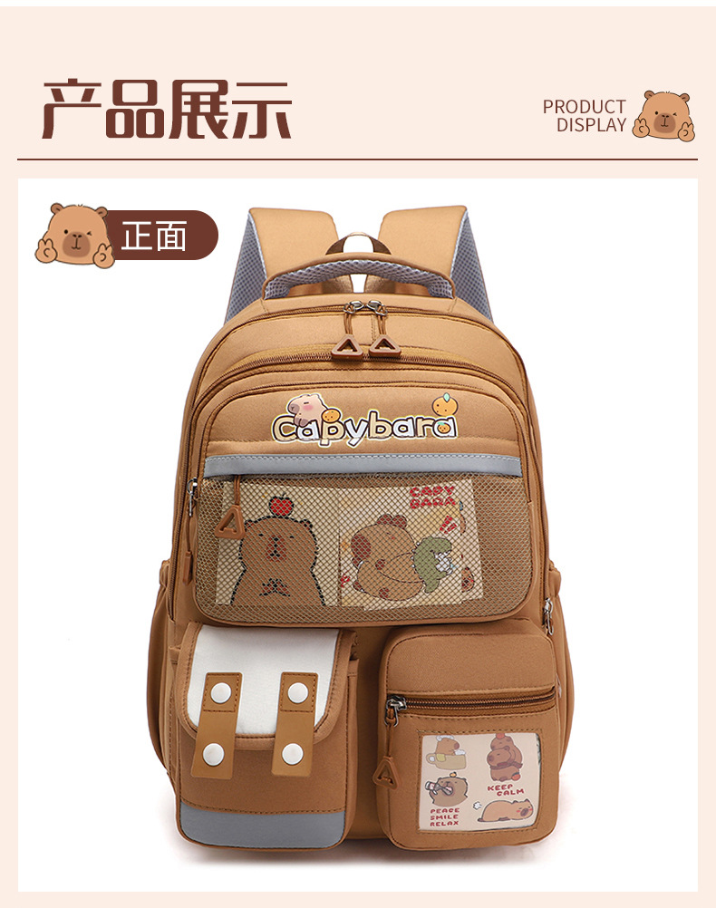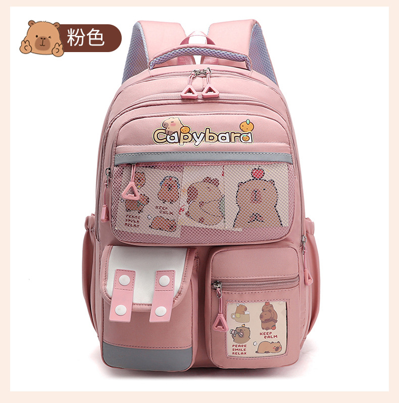 跨境外贸卡皮巴拉小学生书包1-3-6年级男女可爱水豚印花耐脏双肩