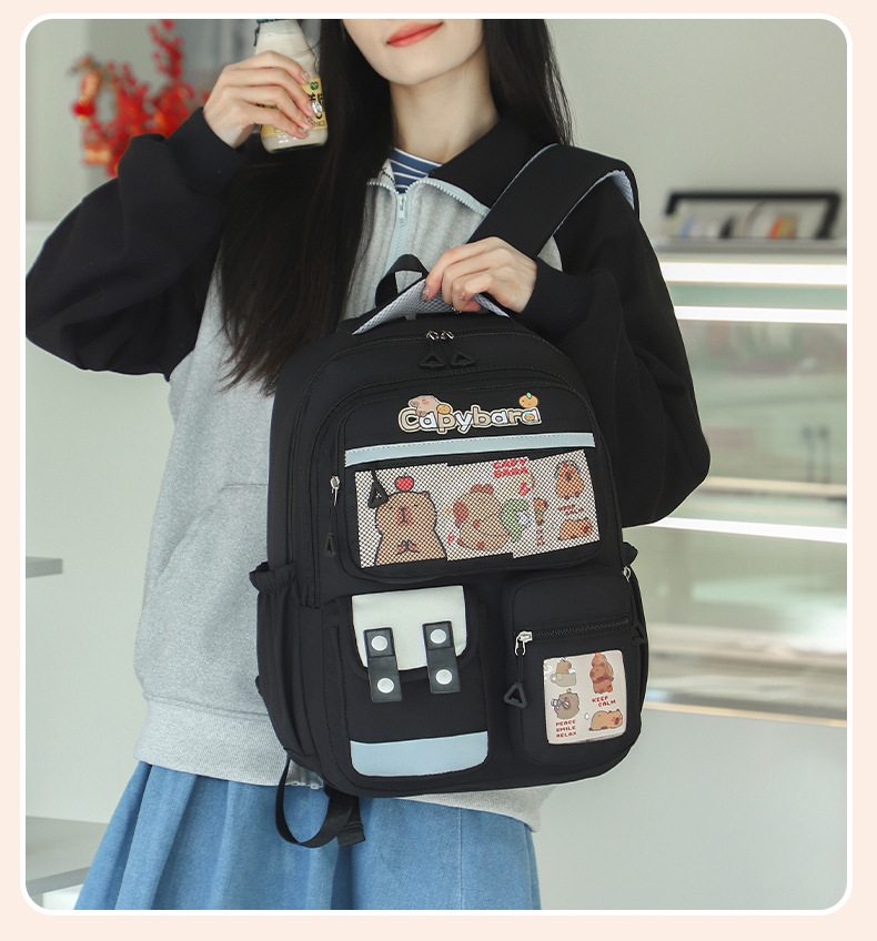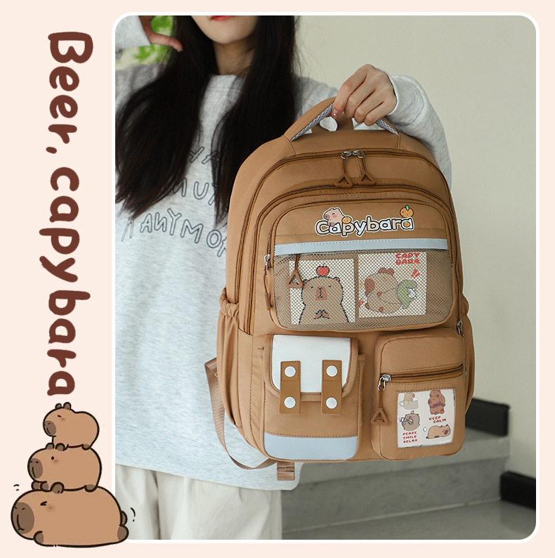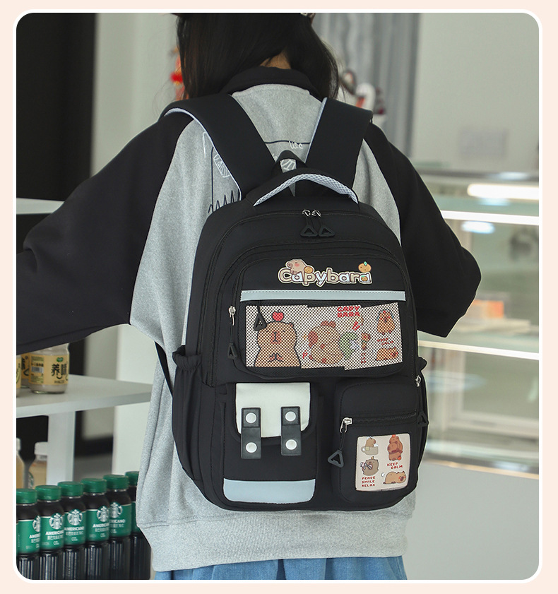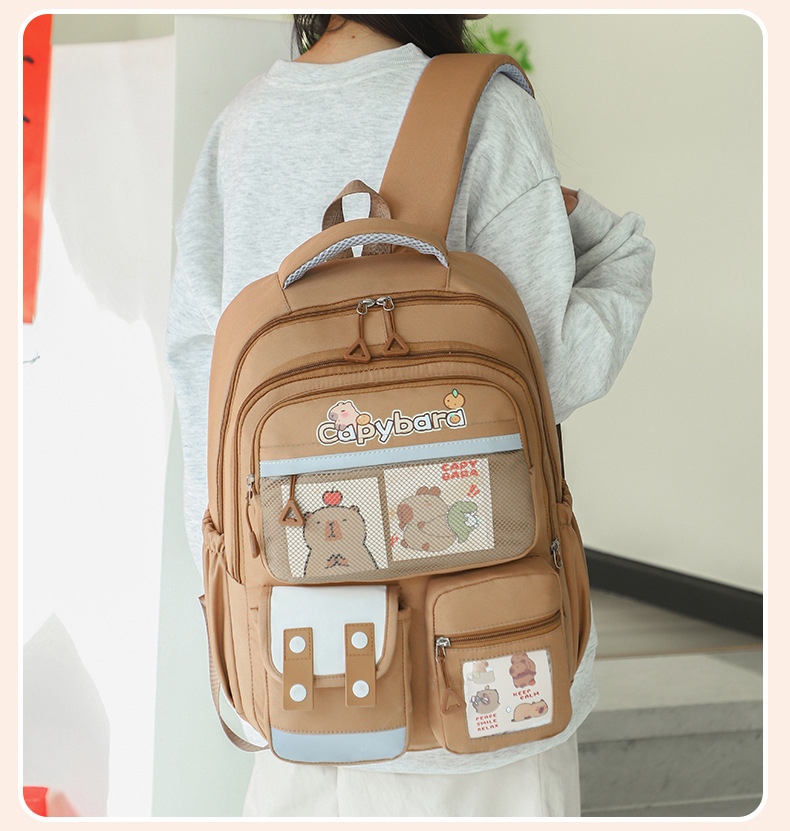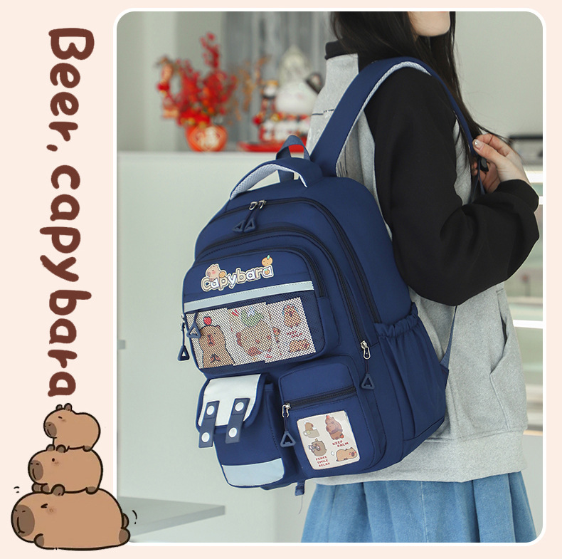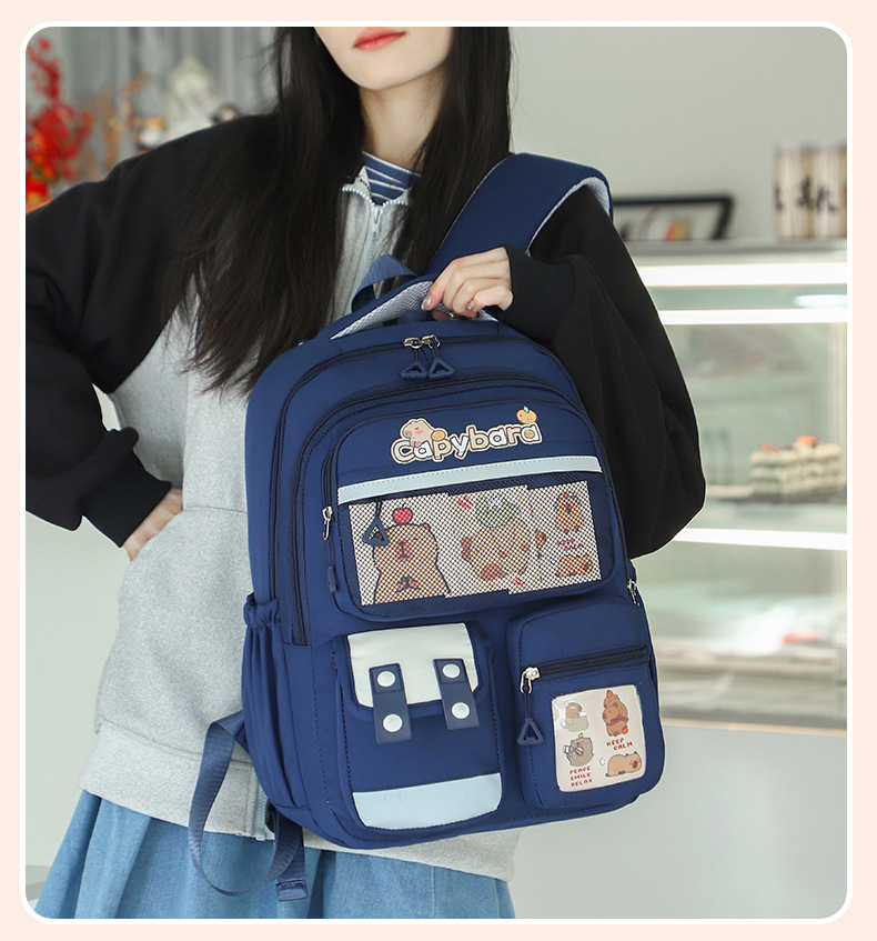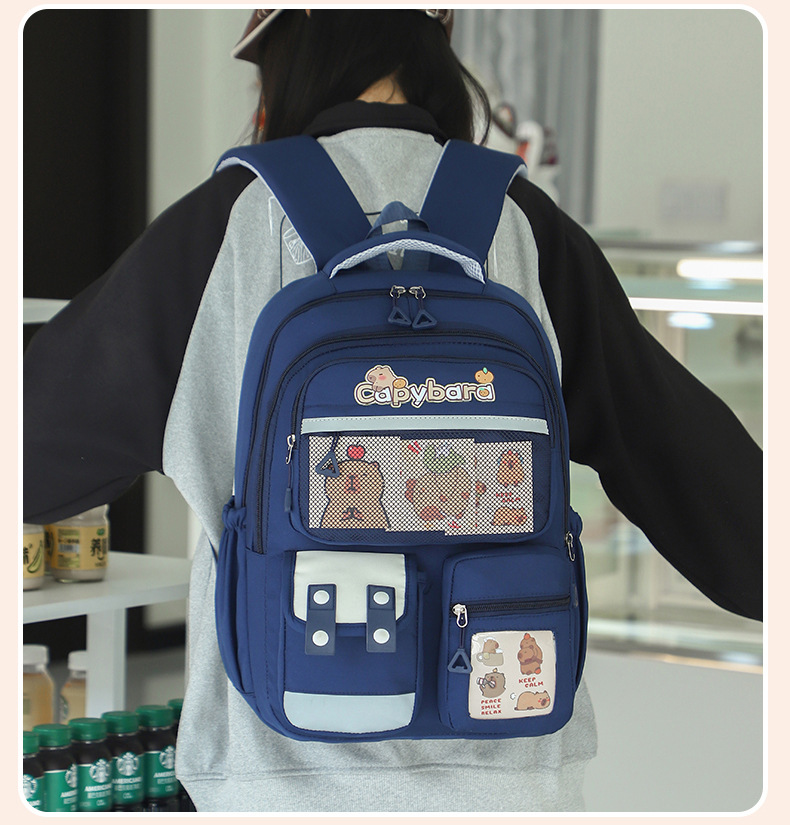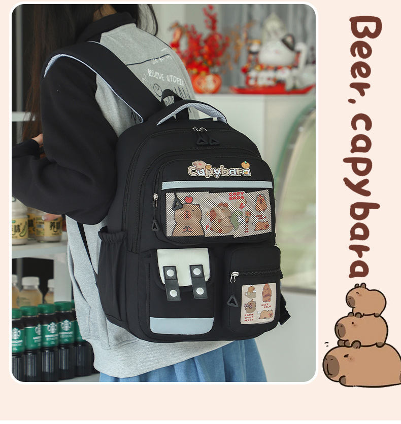 跨境外贸卡皮巴拉小学生书包1-3-6年级男女可爱水豚印花耐脏双肩