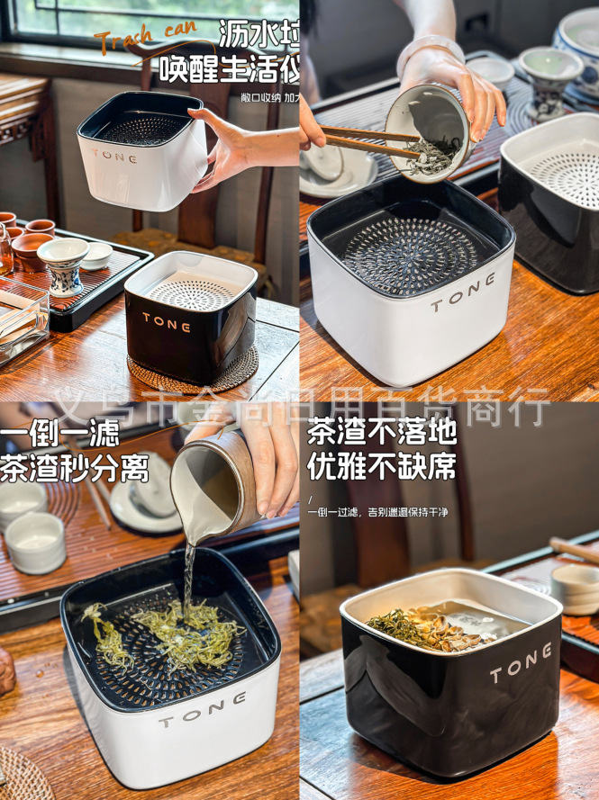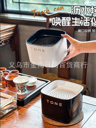 高颜值桌面茶水桶办公室无盖分类垃圾盒迷你客厅废纸篓茶叶沥水桶
