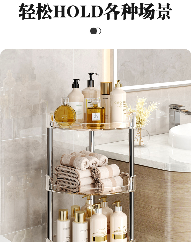 卫生间置物架浴室洗漱台架子三角架厕所推车收纳架亚克力拐角森生