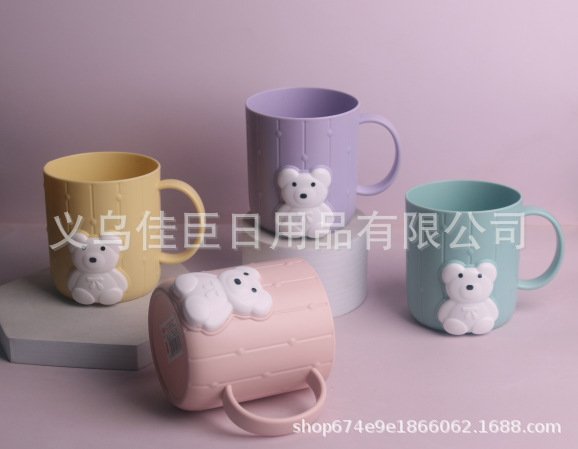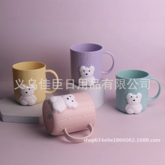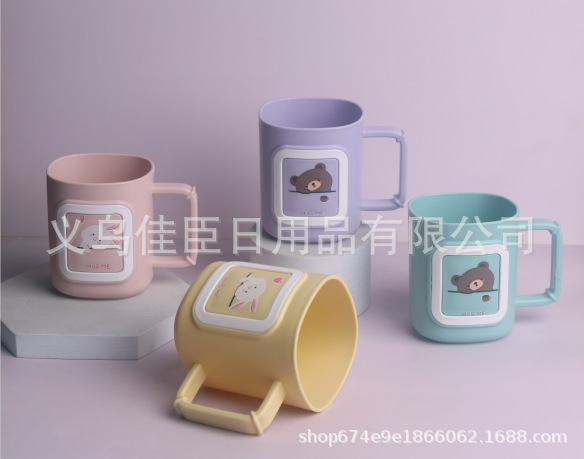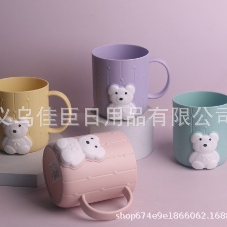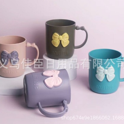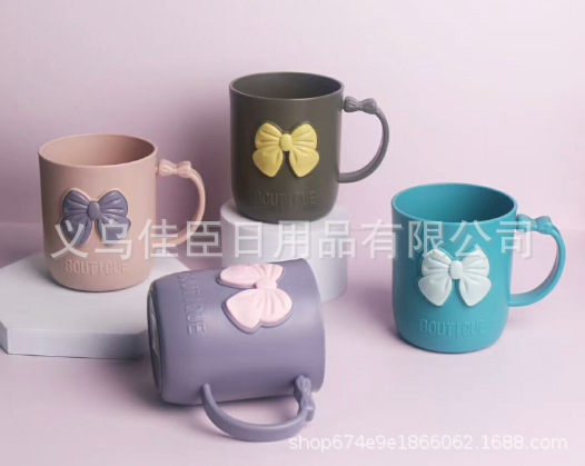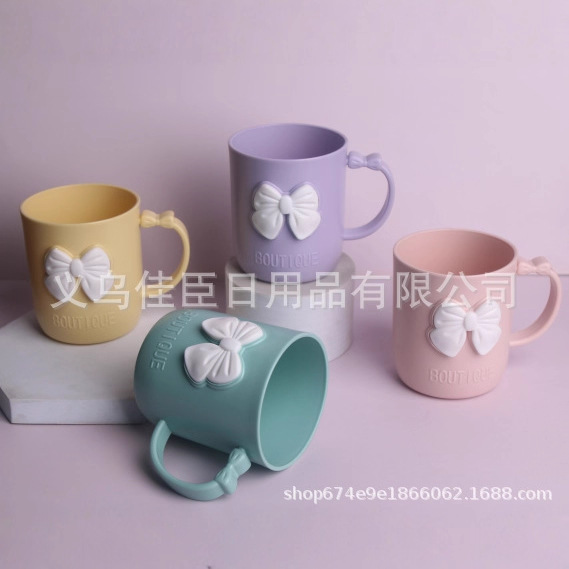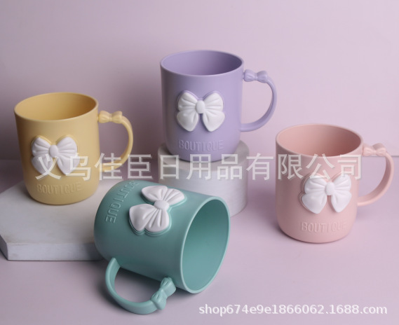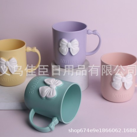 现货外贸批发儿 童水杯子蝴蝶结漱口牙杯 婴幼儿童塑料水杯刷牙杯