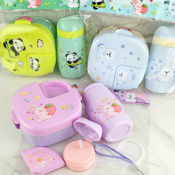 学生保温饭盒可进微波炉 午餐盒便当盒 塑料食品级带盖带餐具饭盒