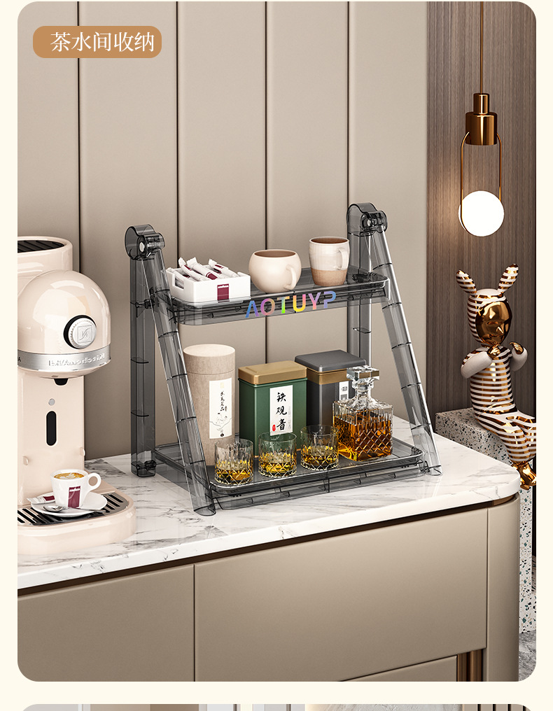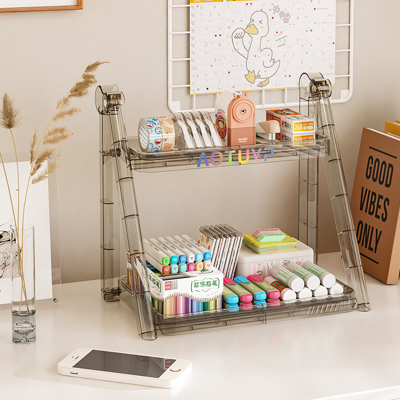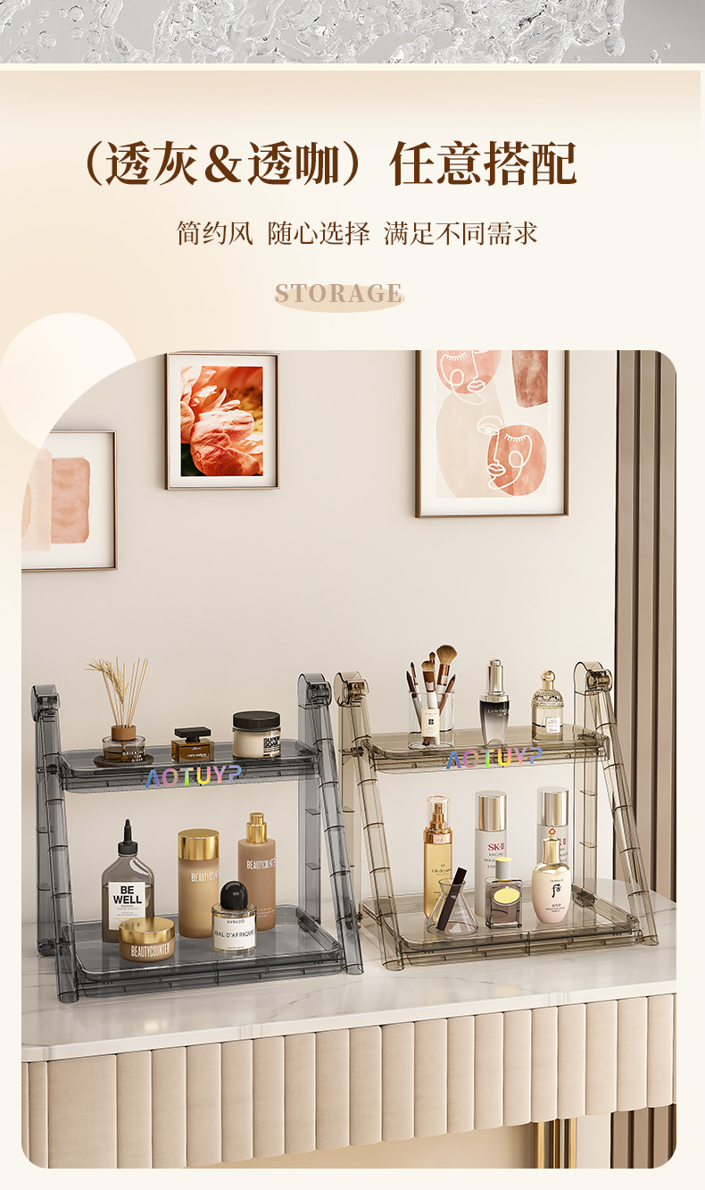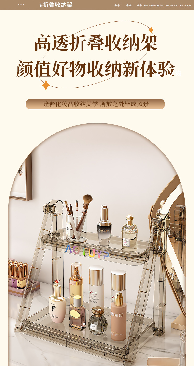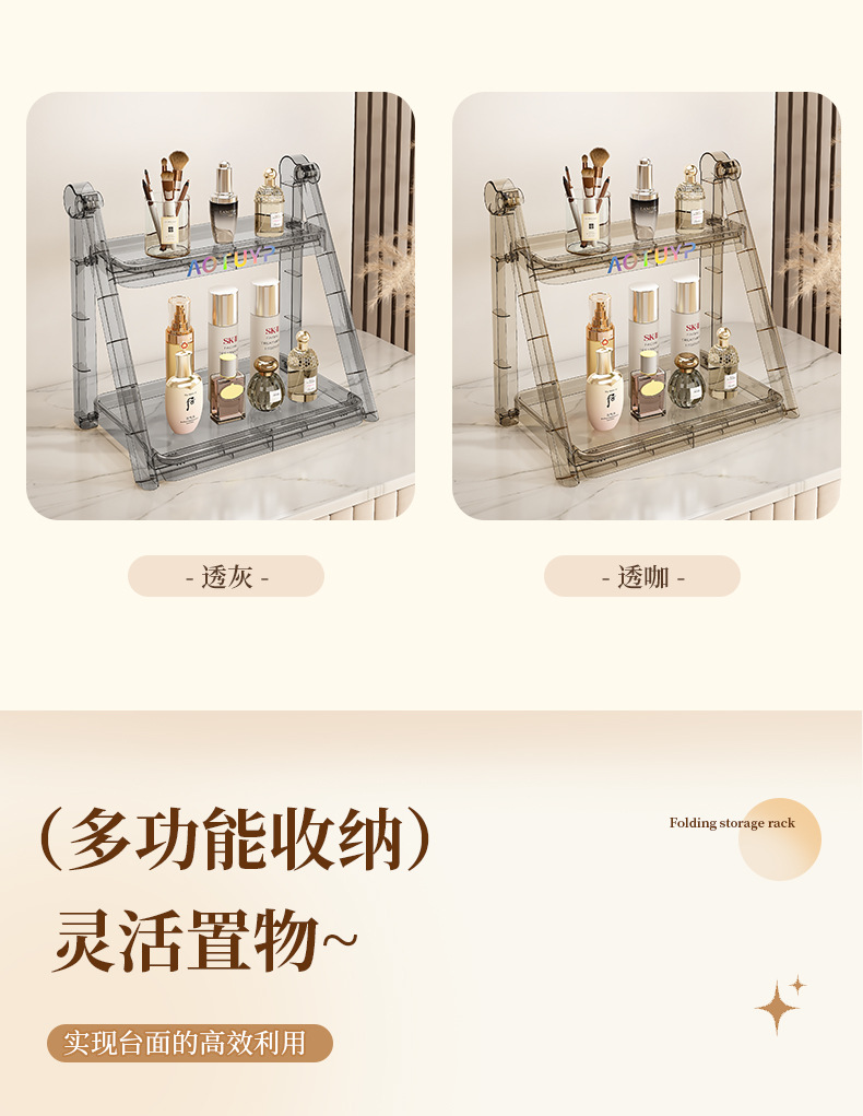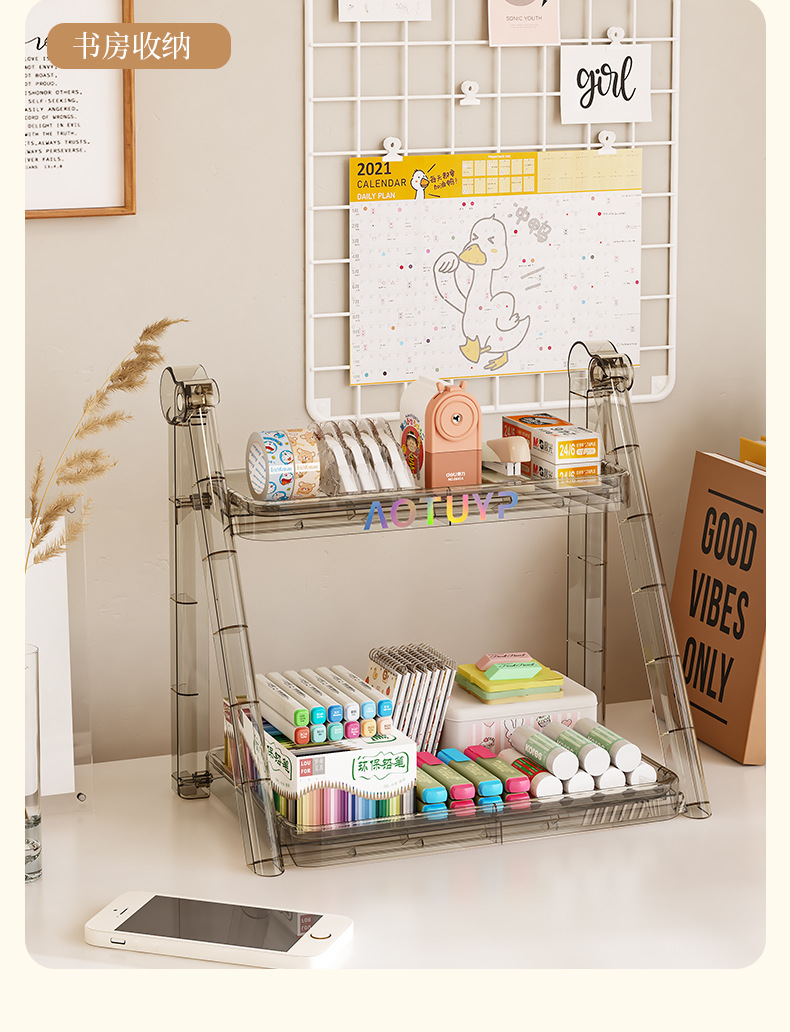 办公桌置物架高颜值折叠工位整理神器桌面双层手办展示架化妆收纳
