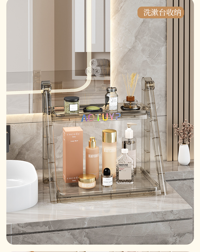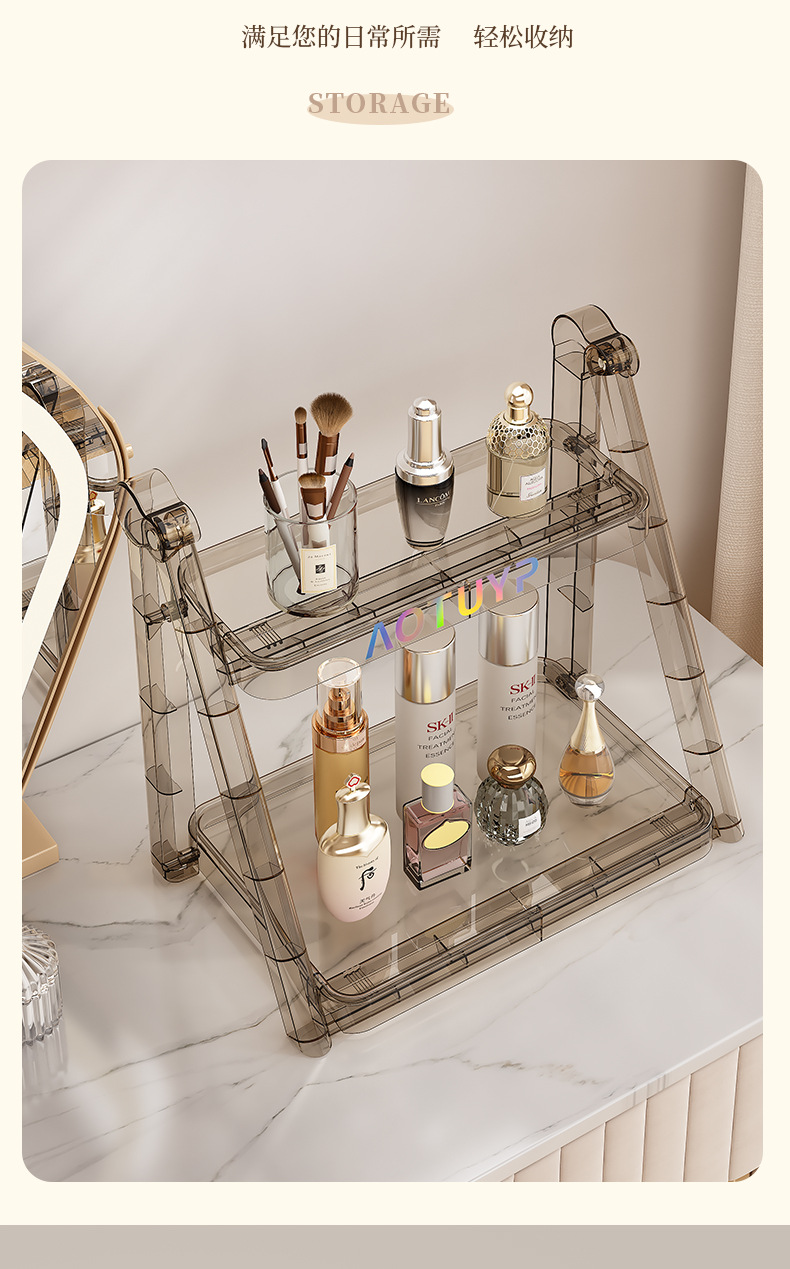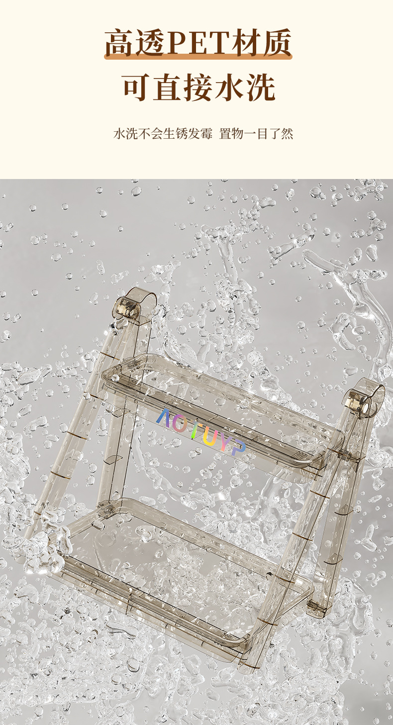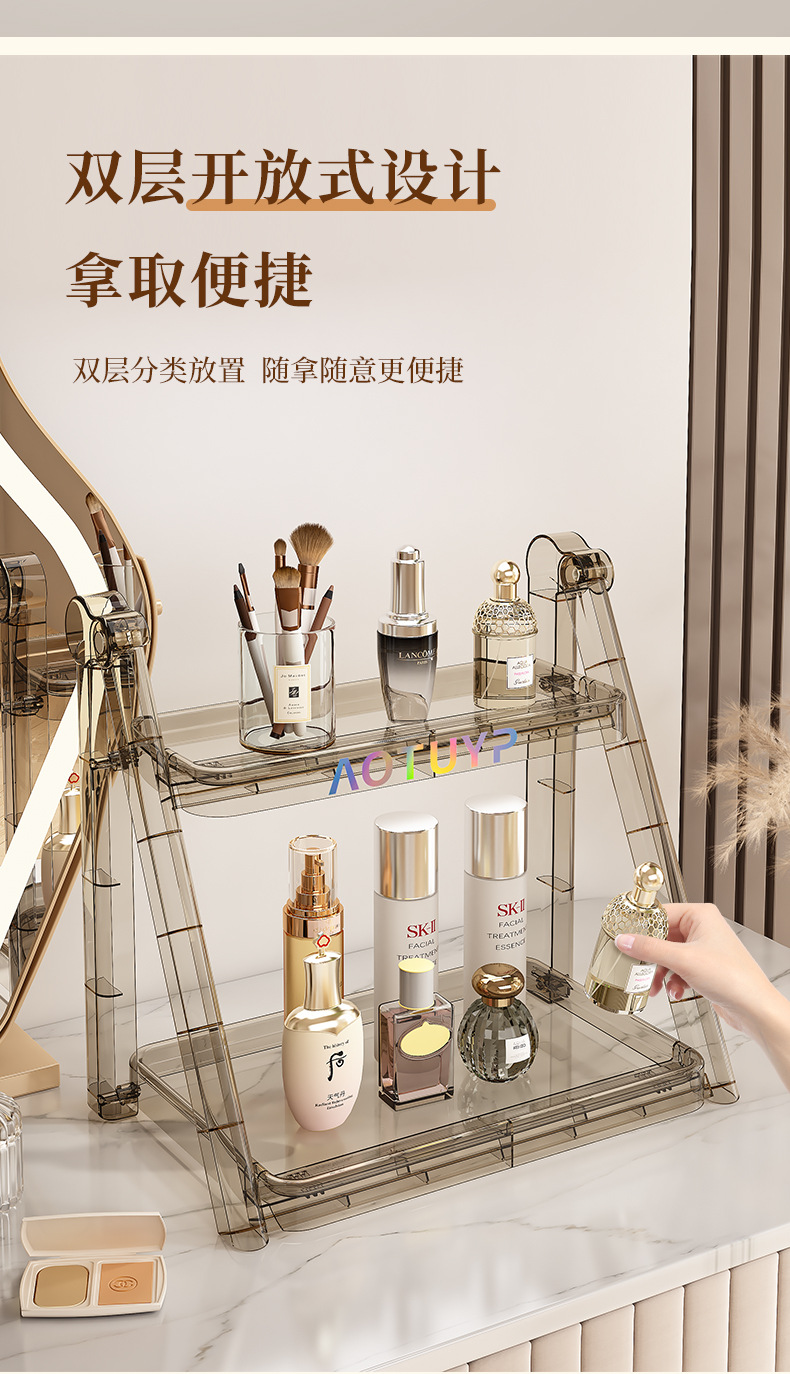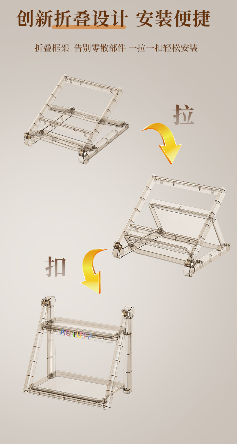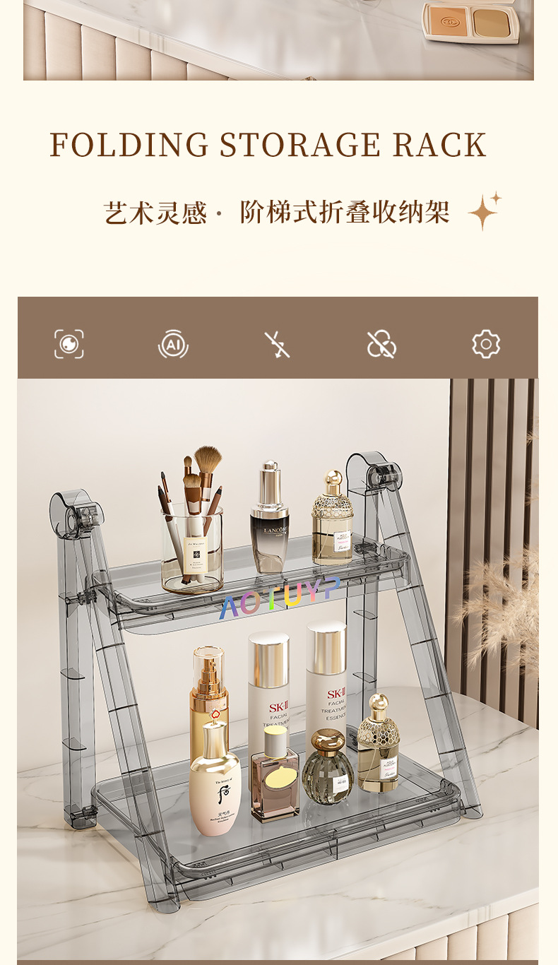 办公桌置物架高颜值折叠工位整理神器桌面双层手办展示架化妆收纳