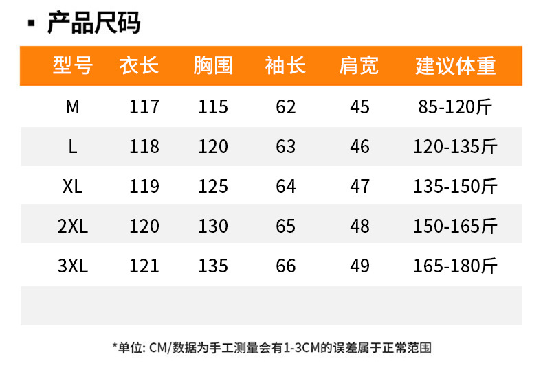 | 3xl recommended 82.50 kg-90.00 kg(3XL建议165-180斤) | USD $0.0 | 2496 piece available |
