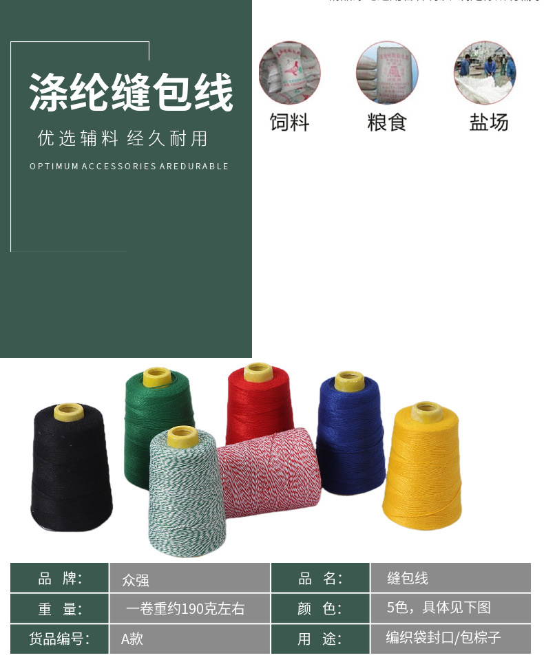 缝包机线打包线编织袋封包线米袋封口线涤纶缝包线彩色粽子线厂家