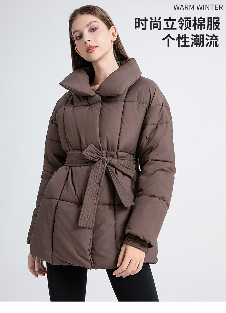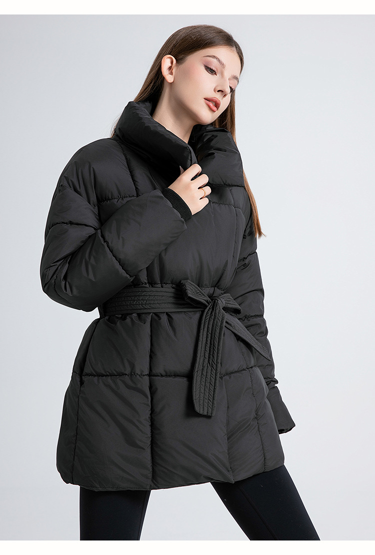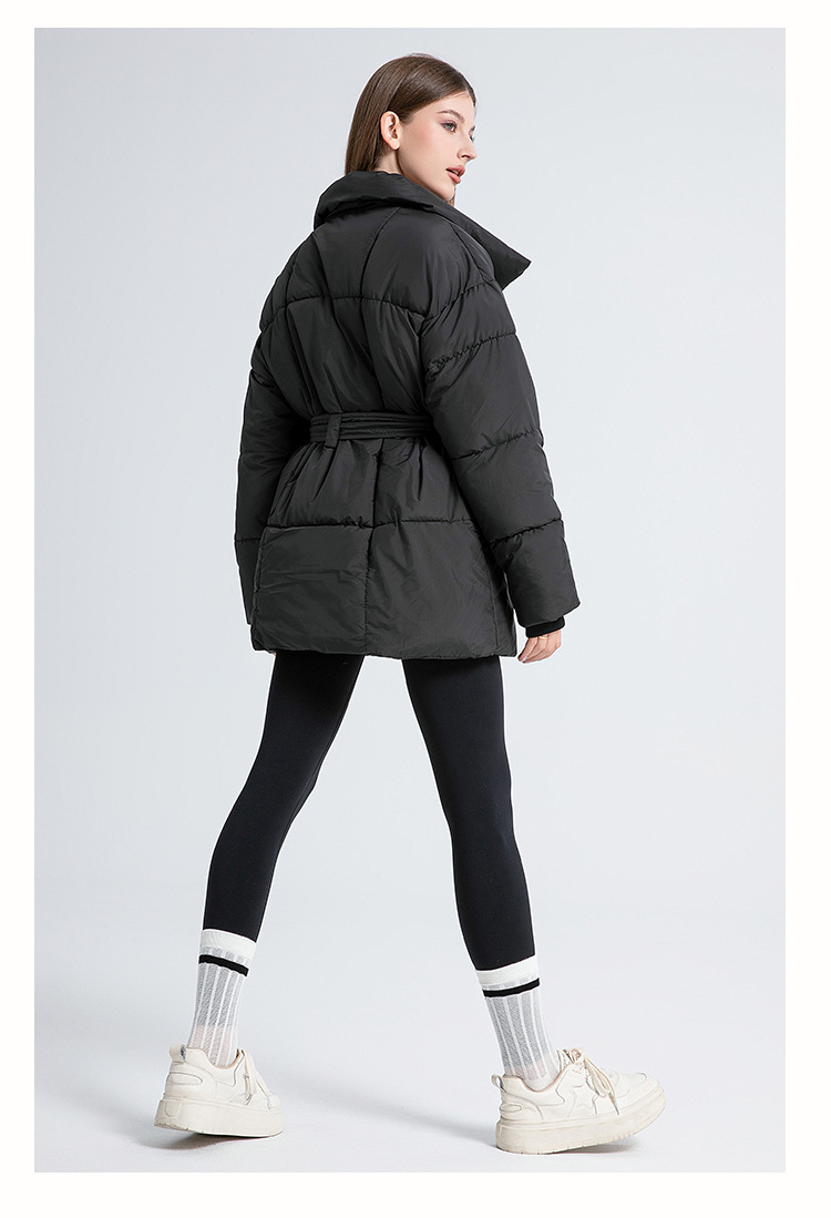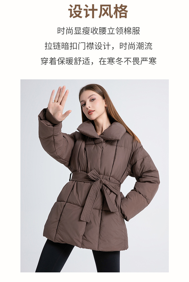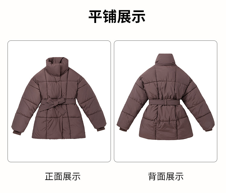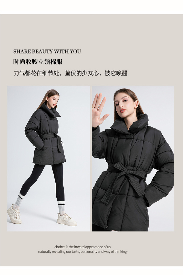 中长款欧美风棉衣女带腰带2025冬季新款羽绒棉服设计感棉袄外贸