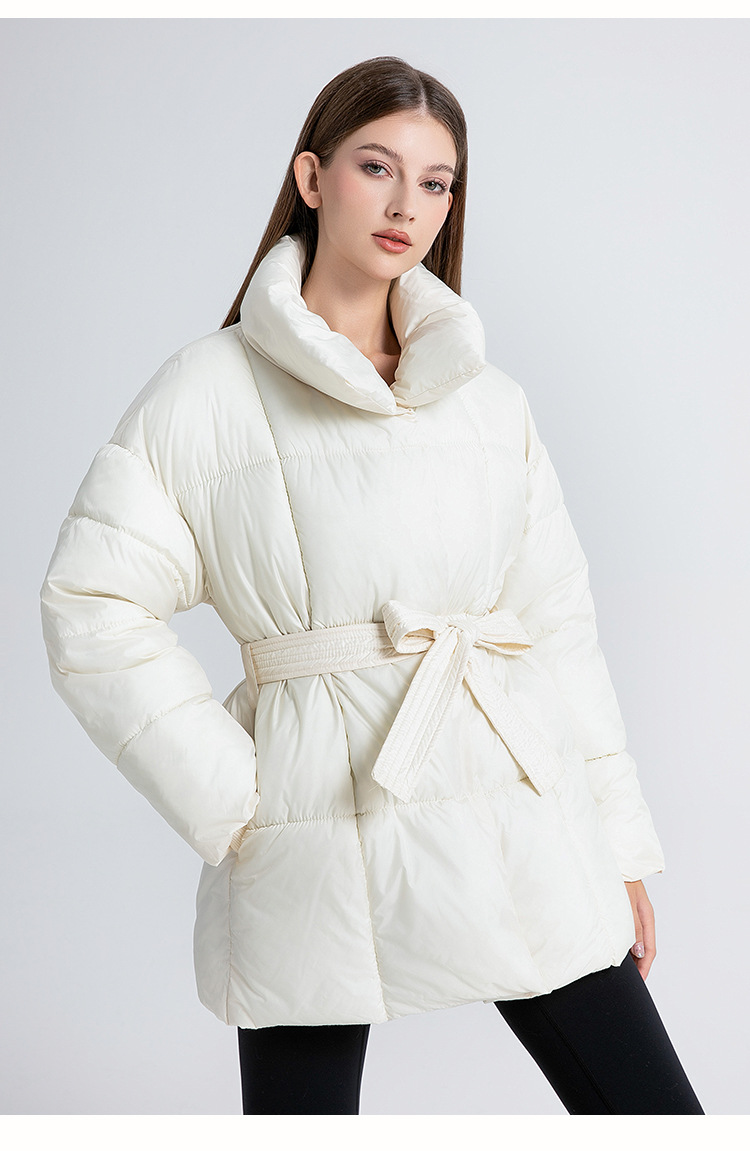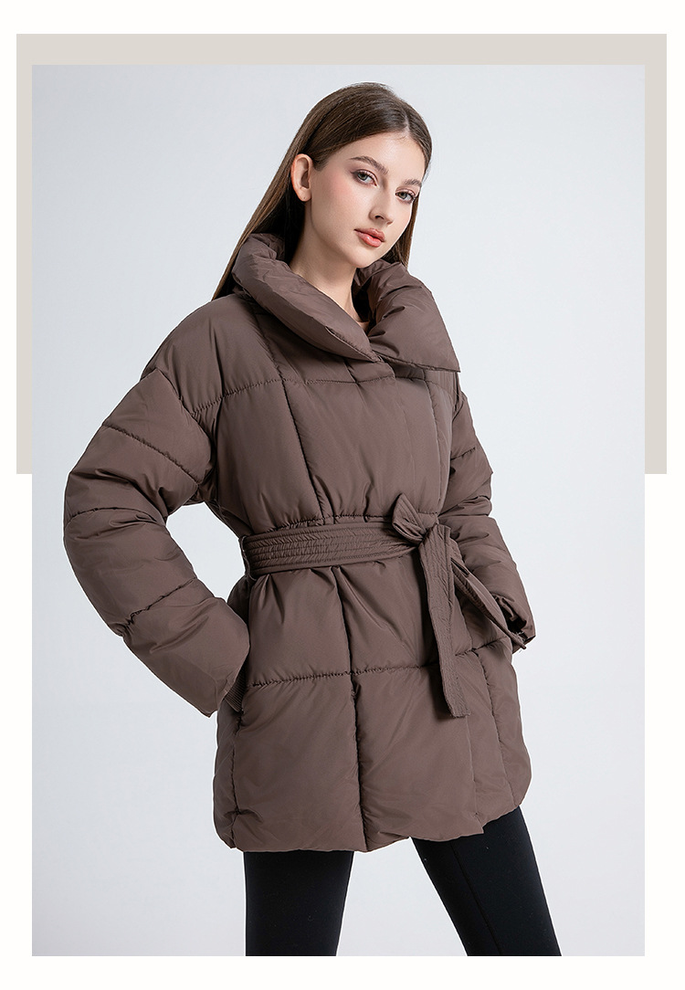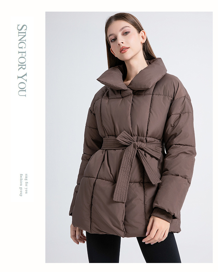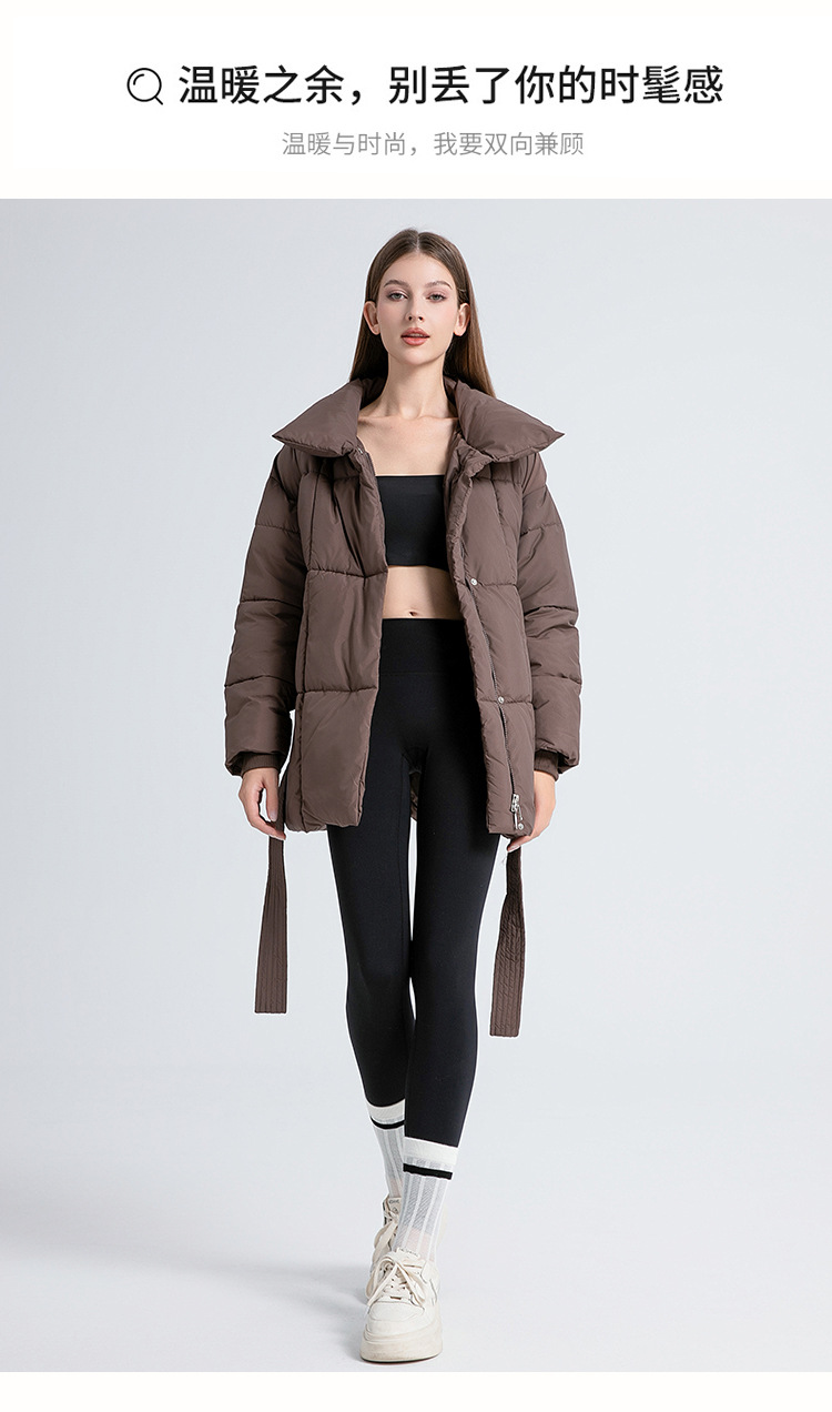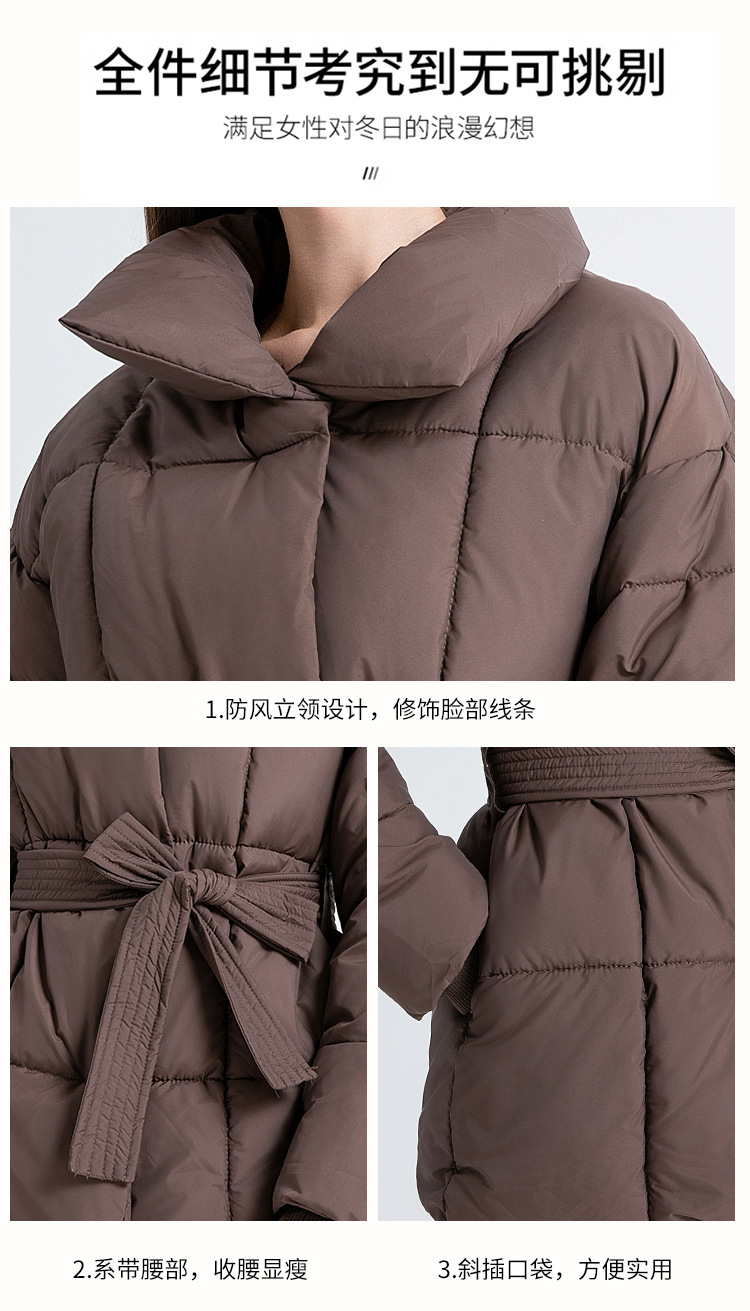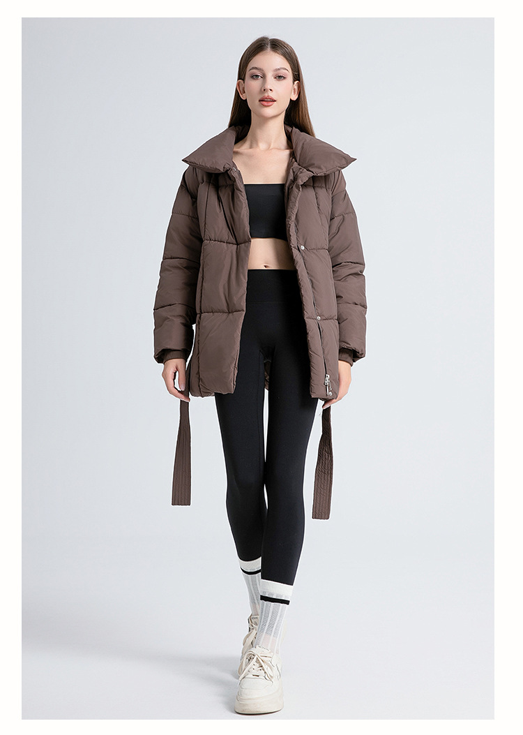 中长款欧美风棉衣女带腰带2025冬季新款羽绒棉服设计感棉袄外贸