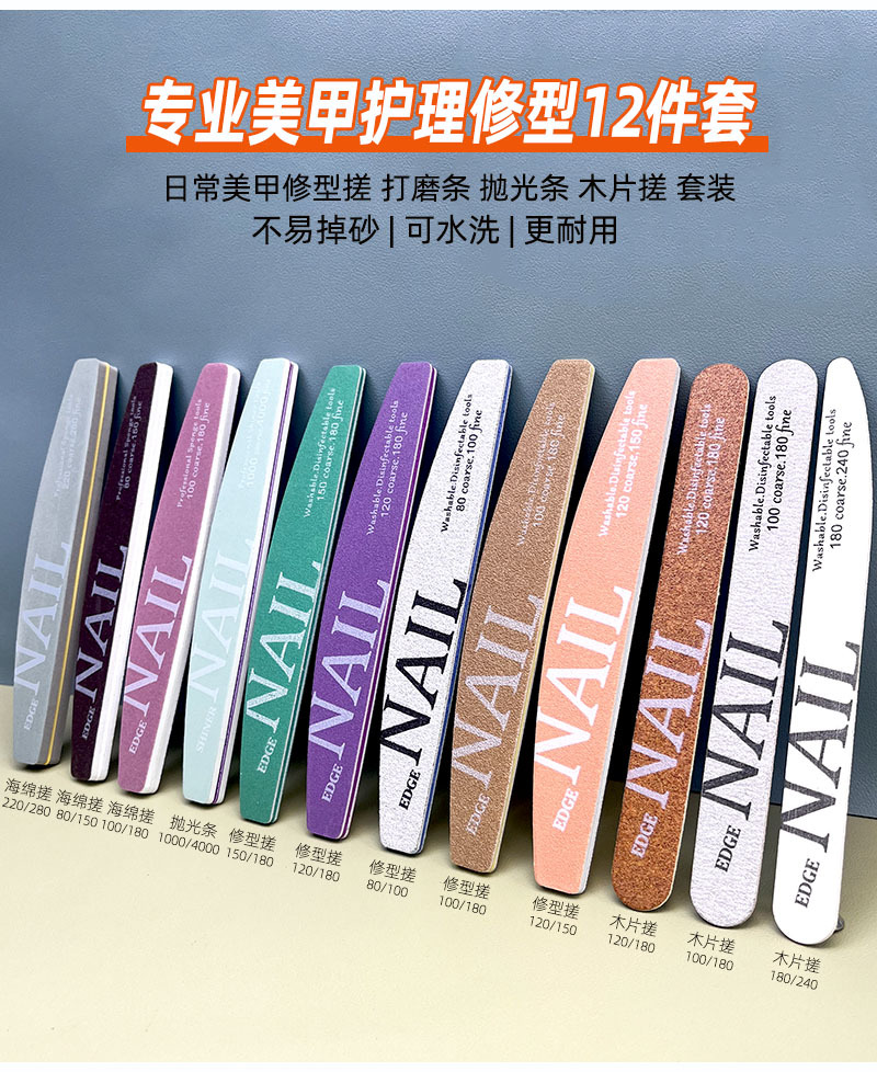 美甲工具套装磨指甲搓条不掉砂可水洗打磨抛光条海绵挫薄修型砂条