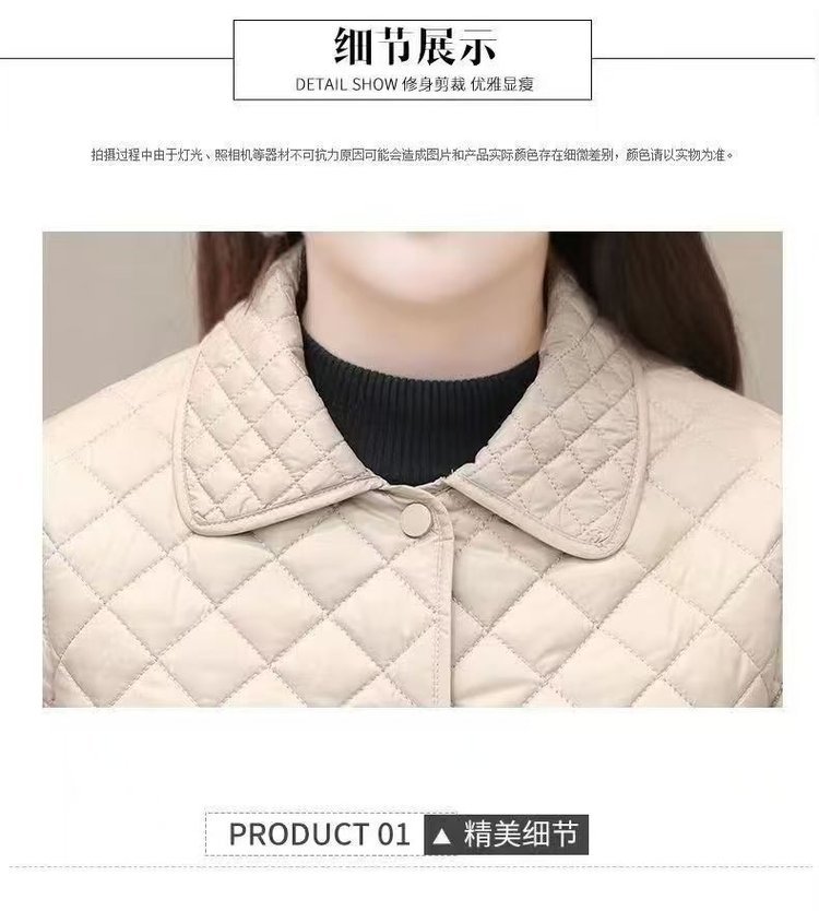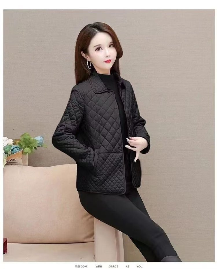 2024秋冬季新款妈妈轻薄菱形格短款棉衣外套中年冬季休闲棉袄棉服