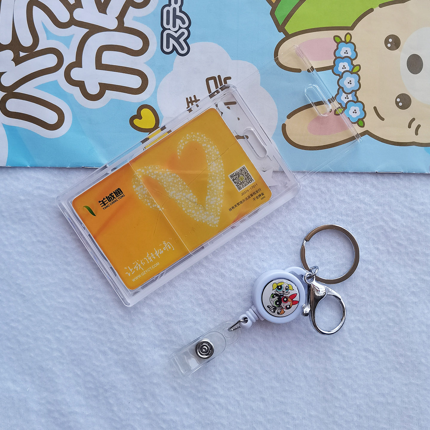 卡通飞天女警透明伸缩钥匙扣学生卡地铁公交卡套工作证套背包挂件