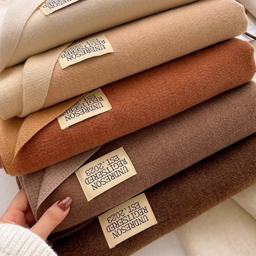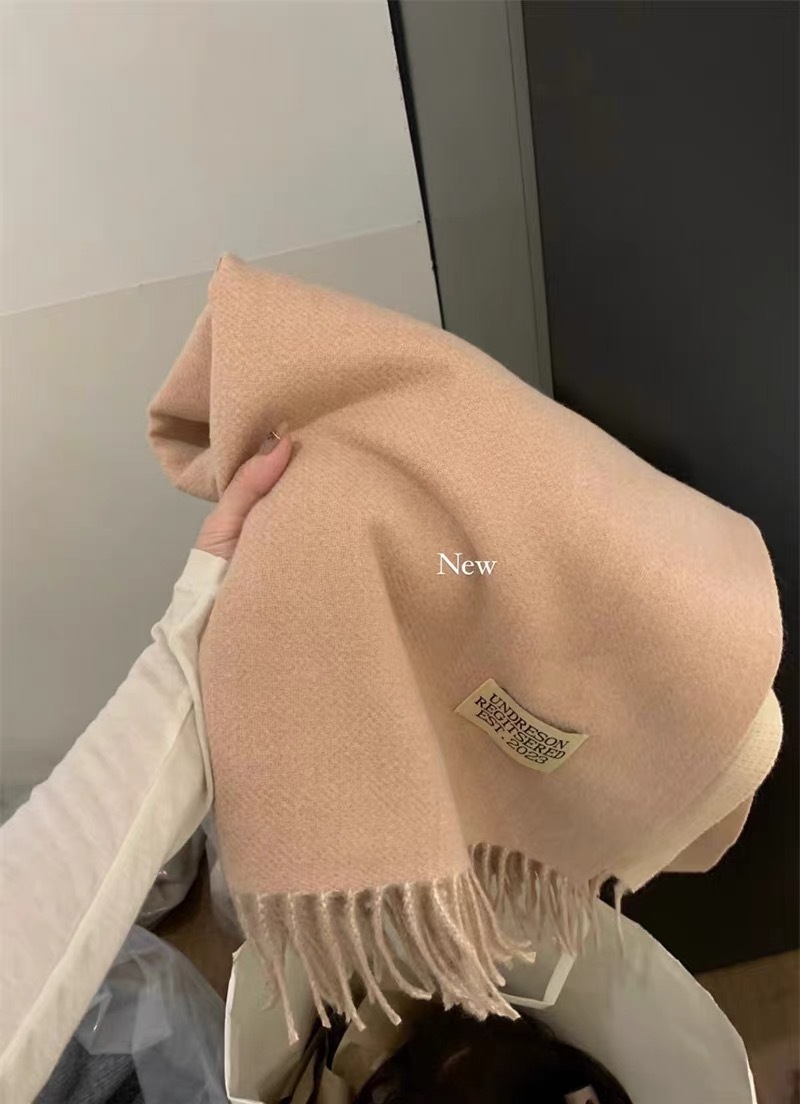 2025新款双面纯色仿羊绒围巾女秋冬加厚保暖百搭围脖披肩批发现货
