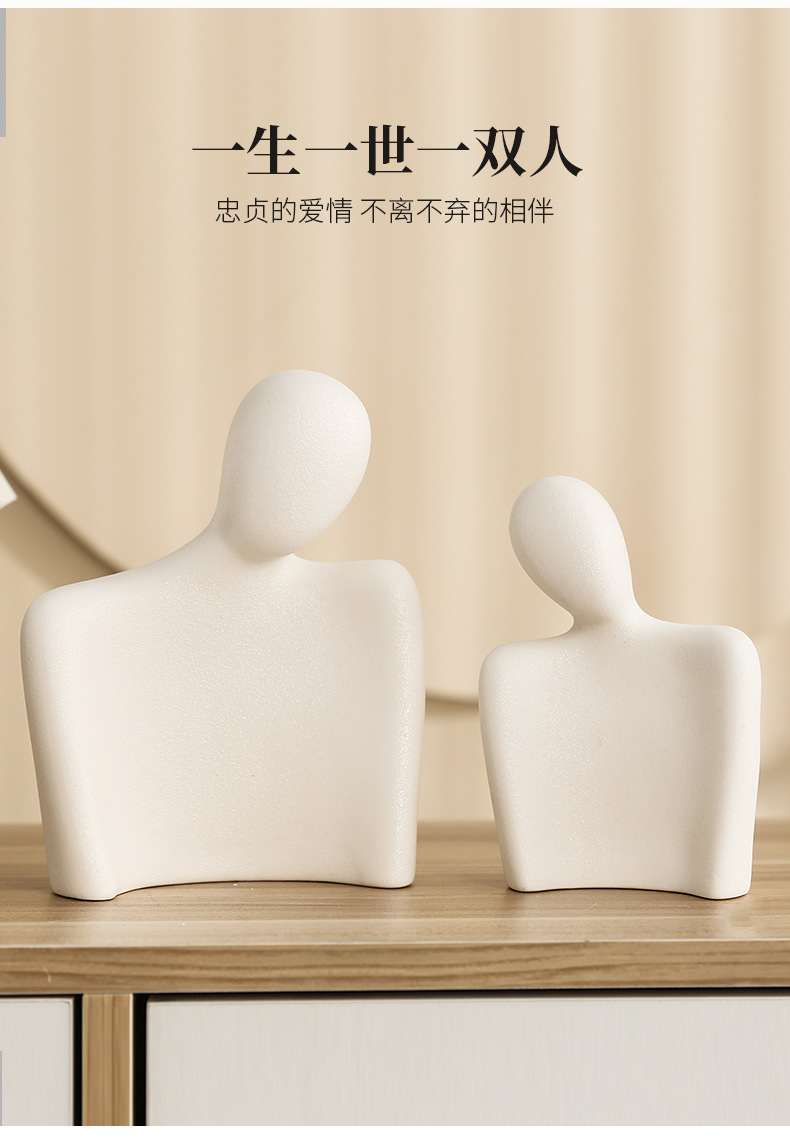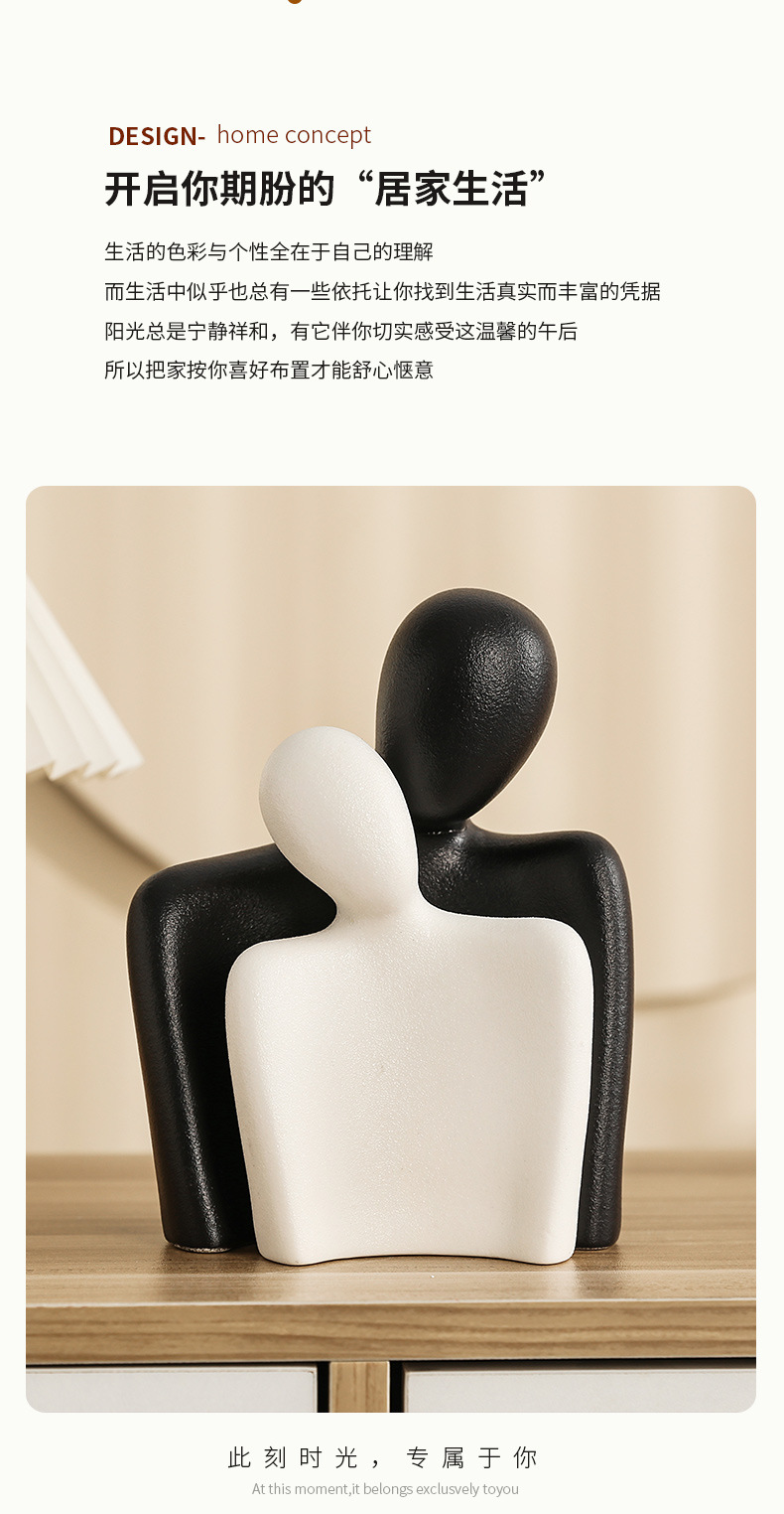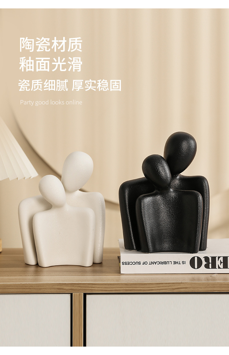 简尔美创意抽象陶瓷人物情侣摆件感家居客厅电视柜酒柜装饰品乔迁