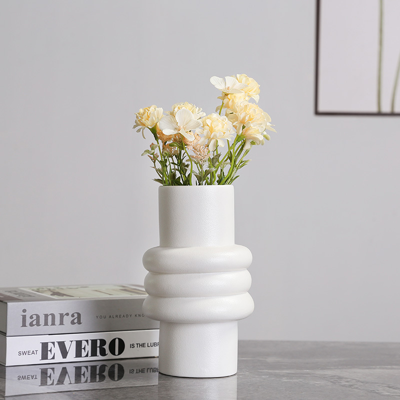 跨境陶瓷花瓶批发家居摆件客厅干花酒店别墅样板间陈列手工白瓷