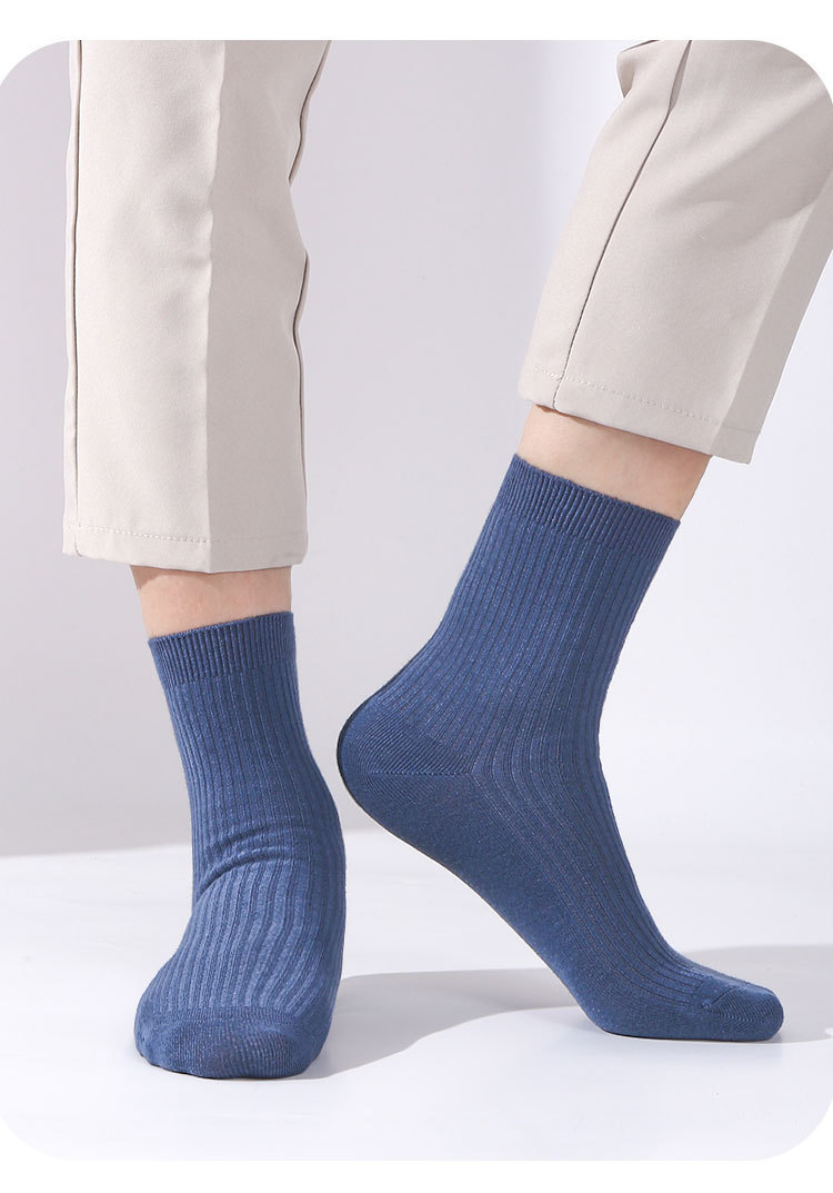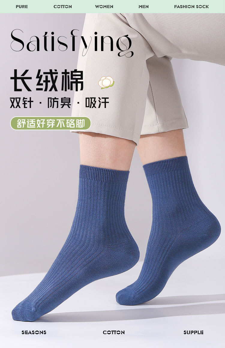 高品质双针纯棉袜子男春秋冬中筒加厚防臭男士全棉长筒袜商务男袜